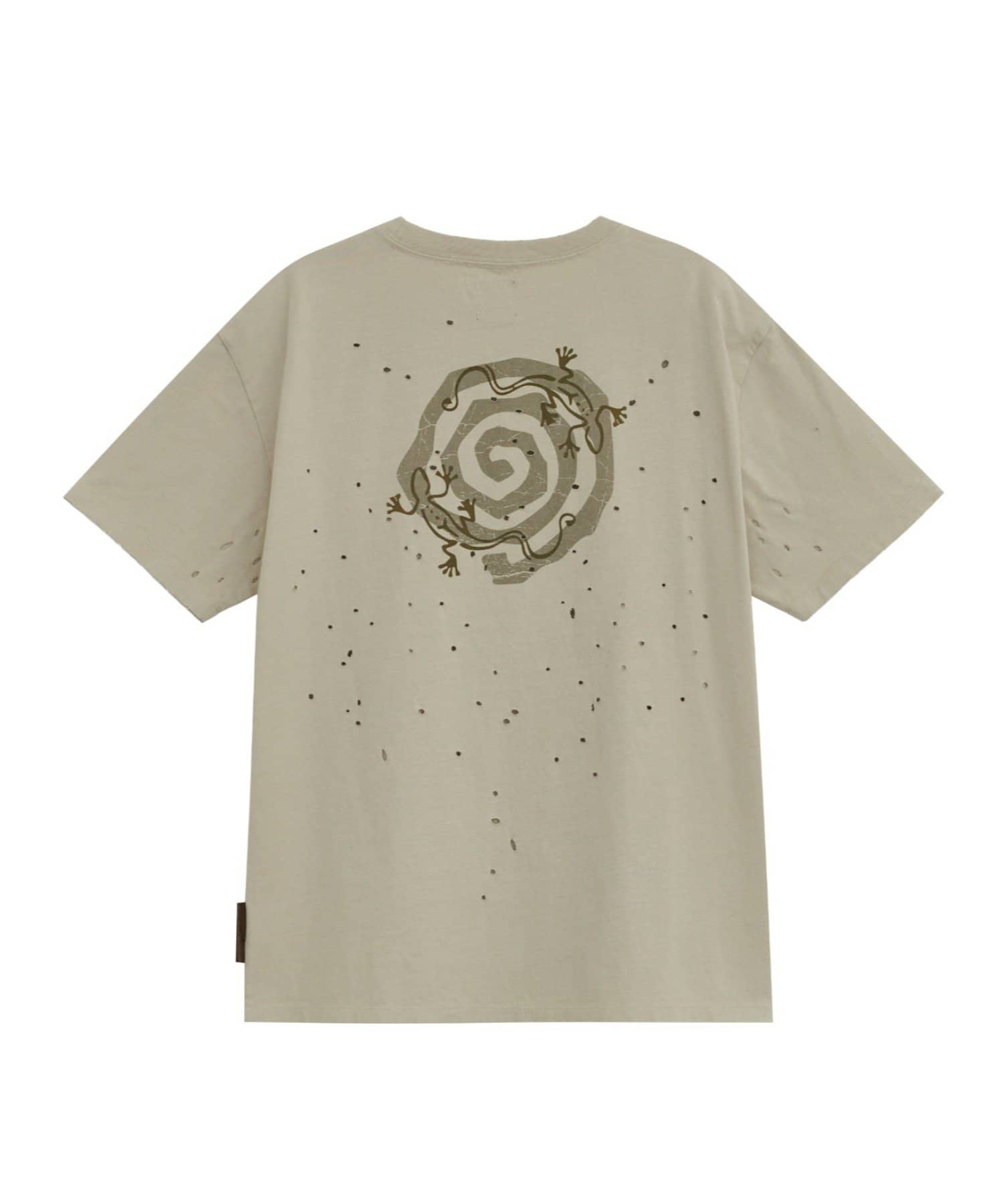 【DEFGARMENTS/デフガーメンツ】SPIRAL LIZARD DEMAGED T-SHIRTS