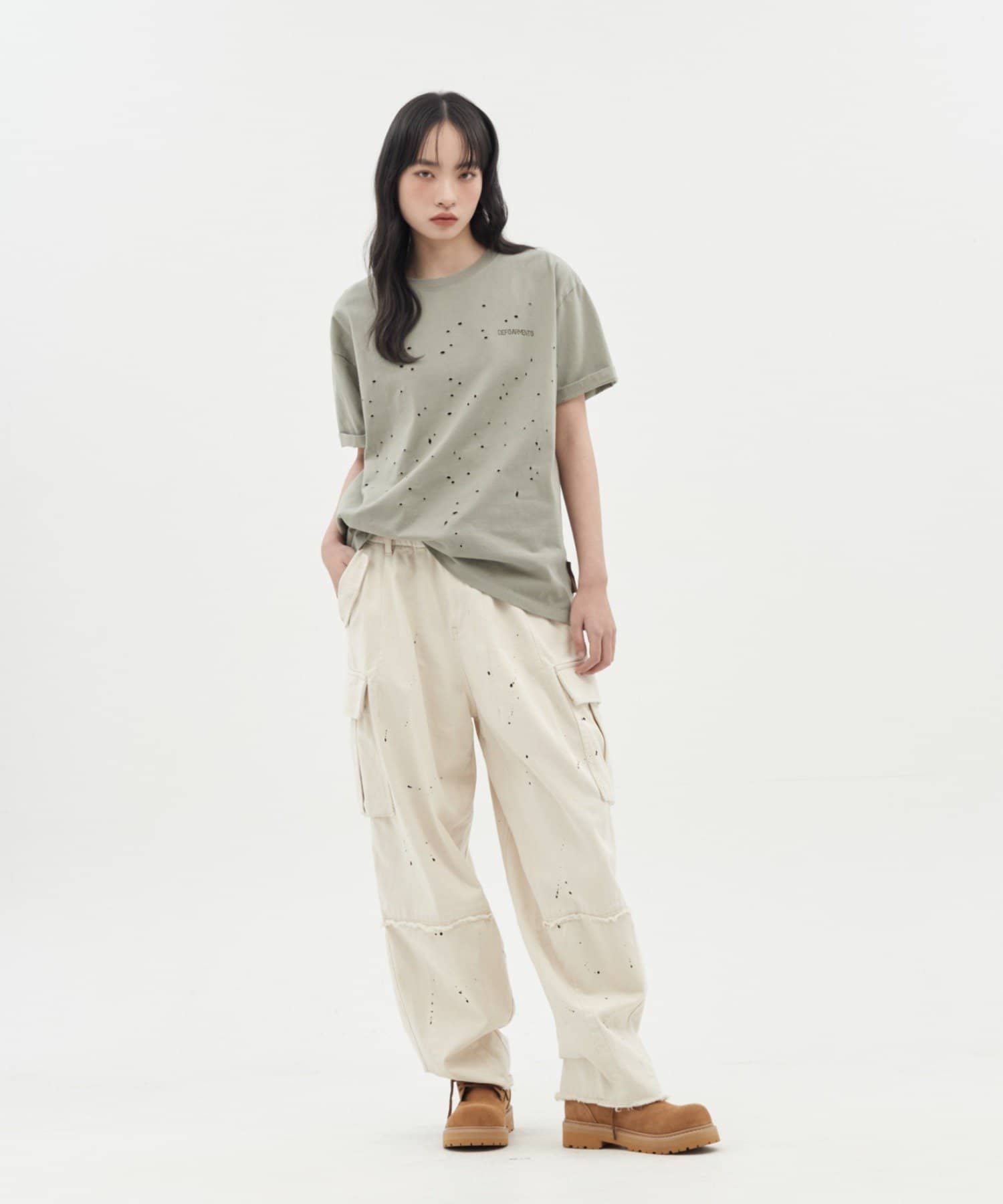 クラック感のあるグラフィックとダメージ加工により、ラフさとヴィンテージ感が絶妙に融合した佇まいに。