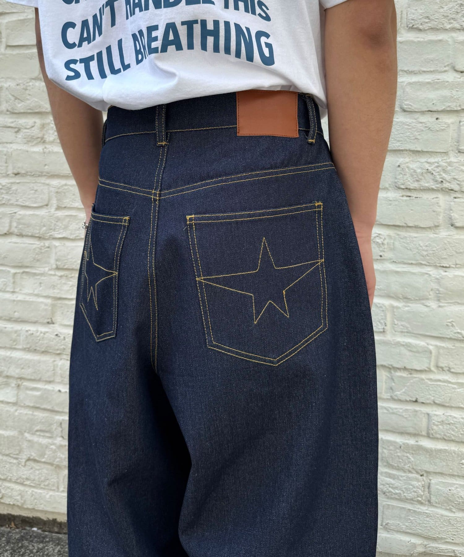 ヒップポケットには遊び心のある星型のステッチを施し、後ろ姿まで抜かりなくキャッチーに仕上げました。