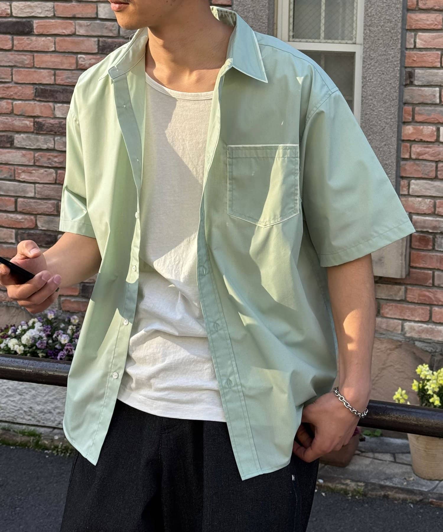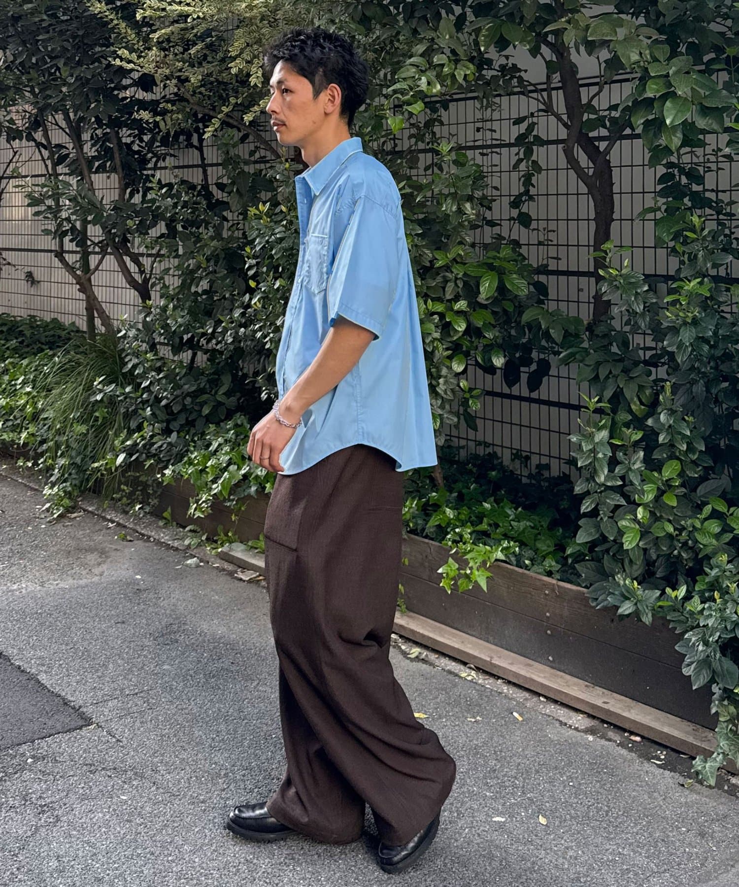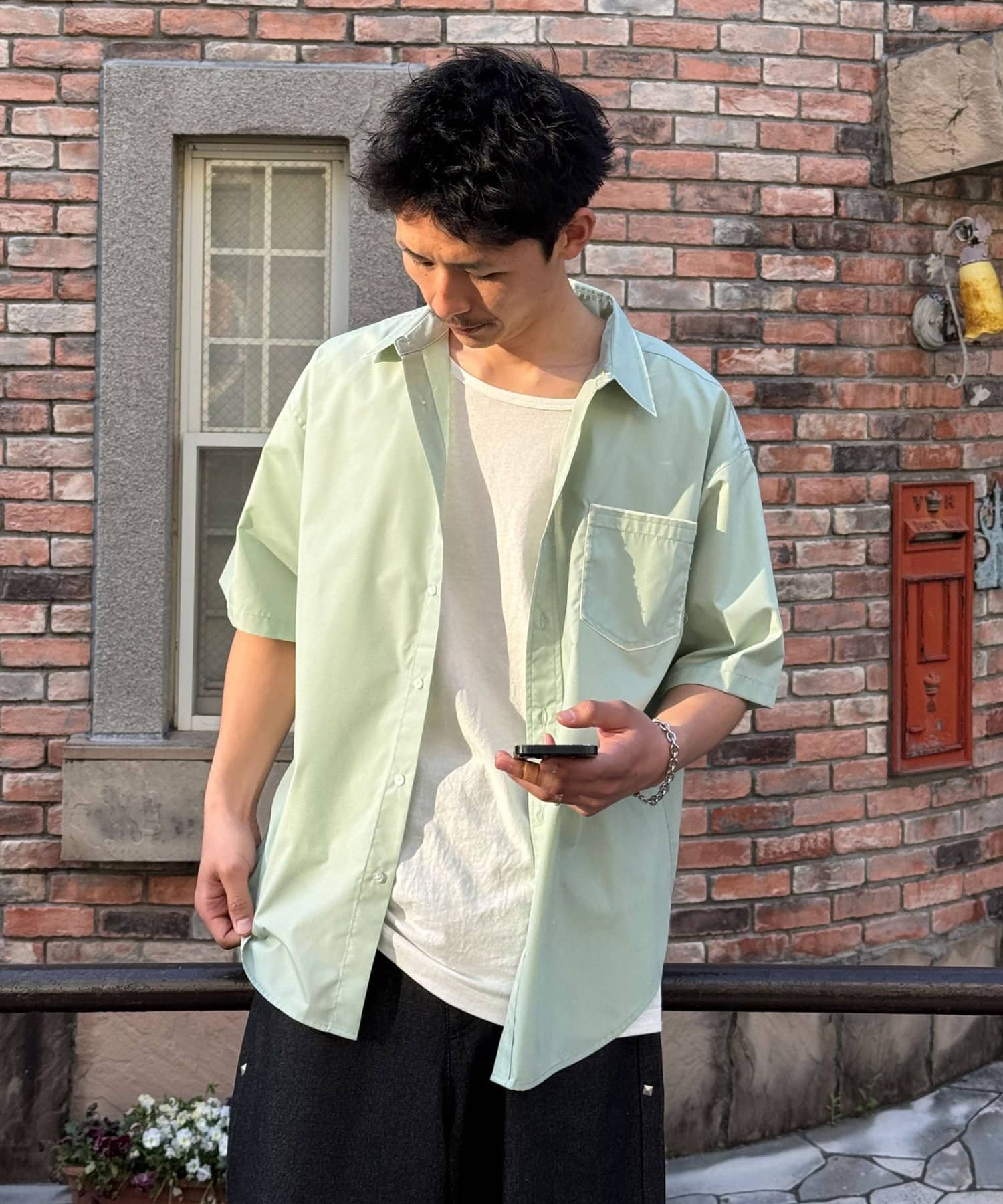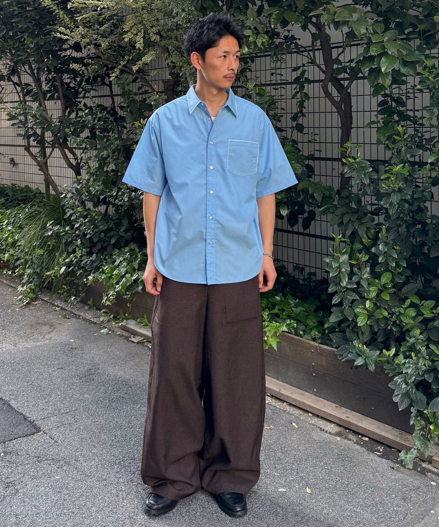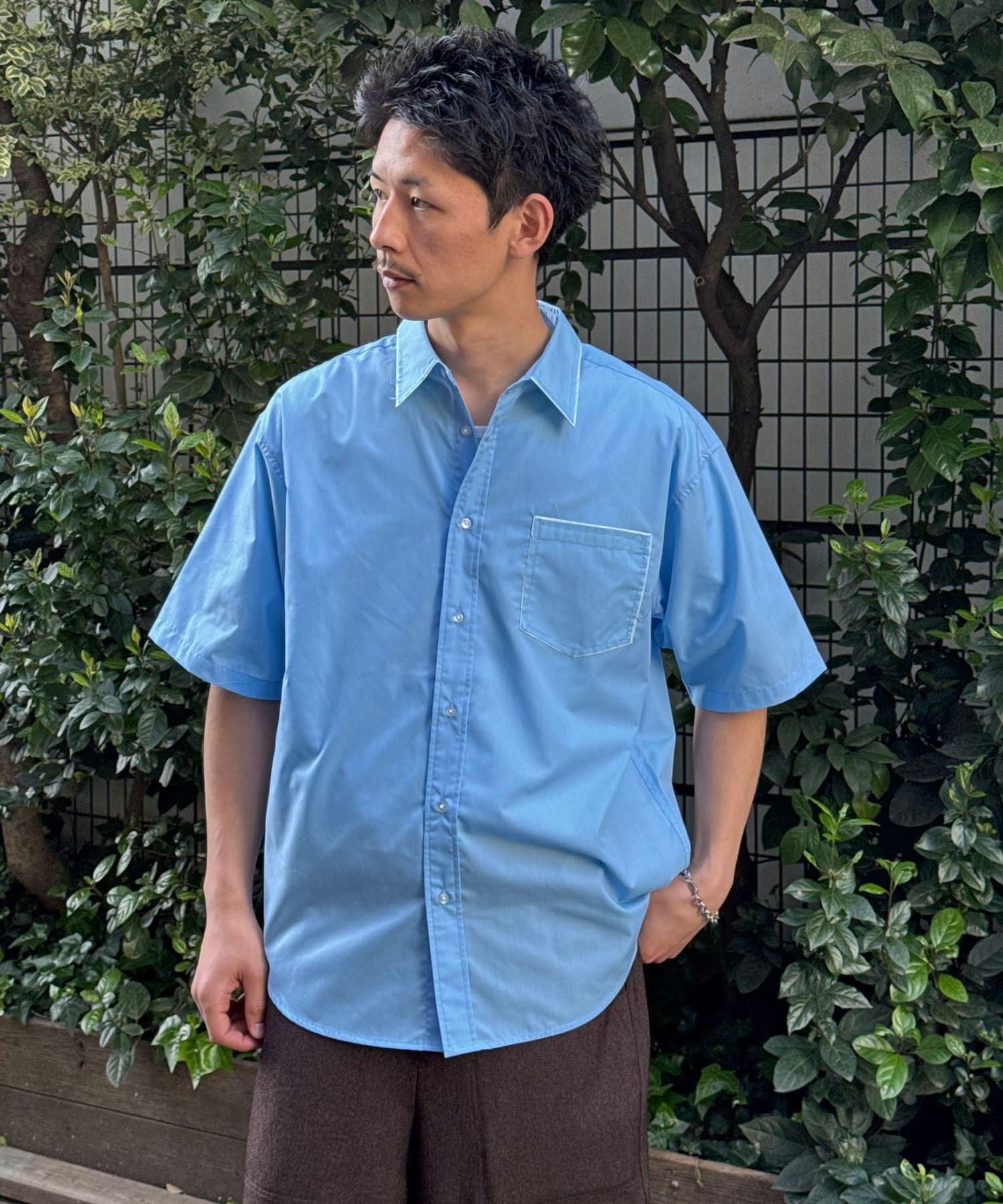 襟とポケットのほつれデザインがこなれる半袖シャツ