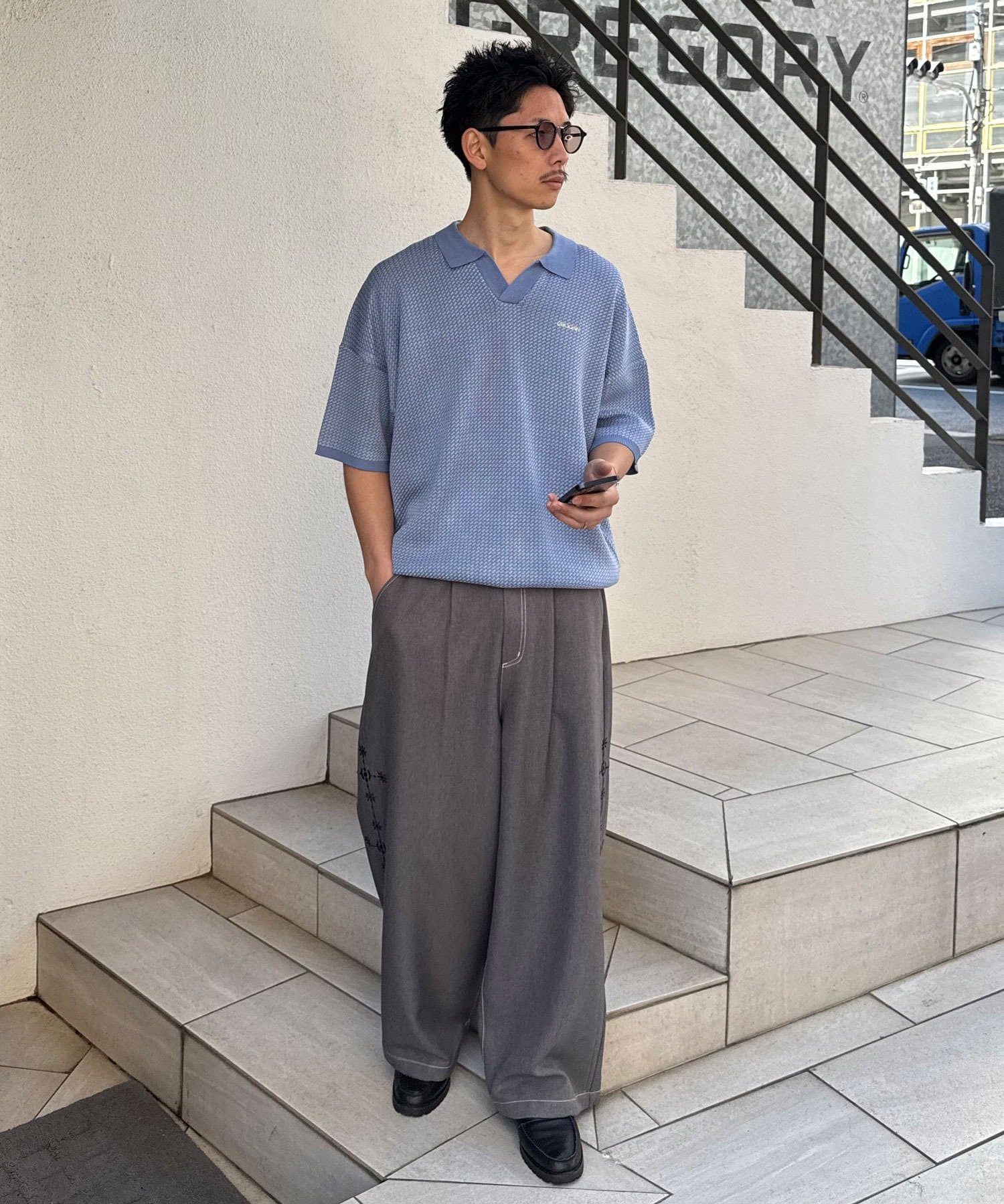 スラックスにタックインしてレザーサンダルで外せば、品の良さとリラックス感が溶け合う都会的な着こなしも楽しめます。