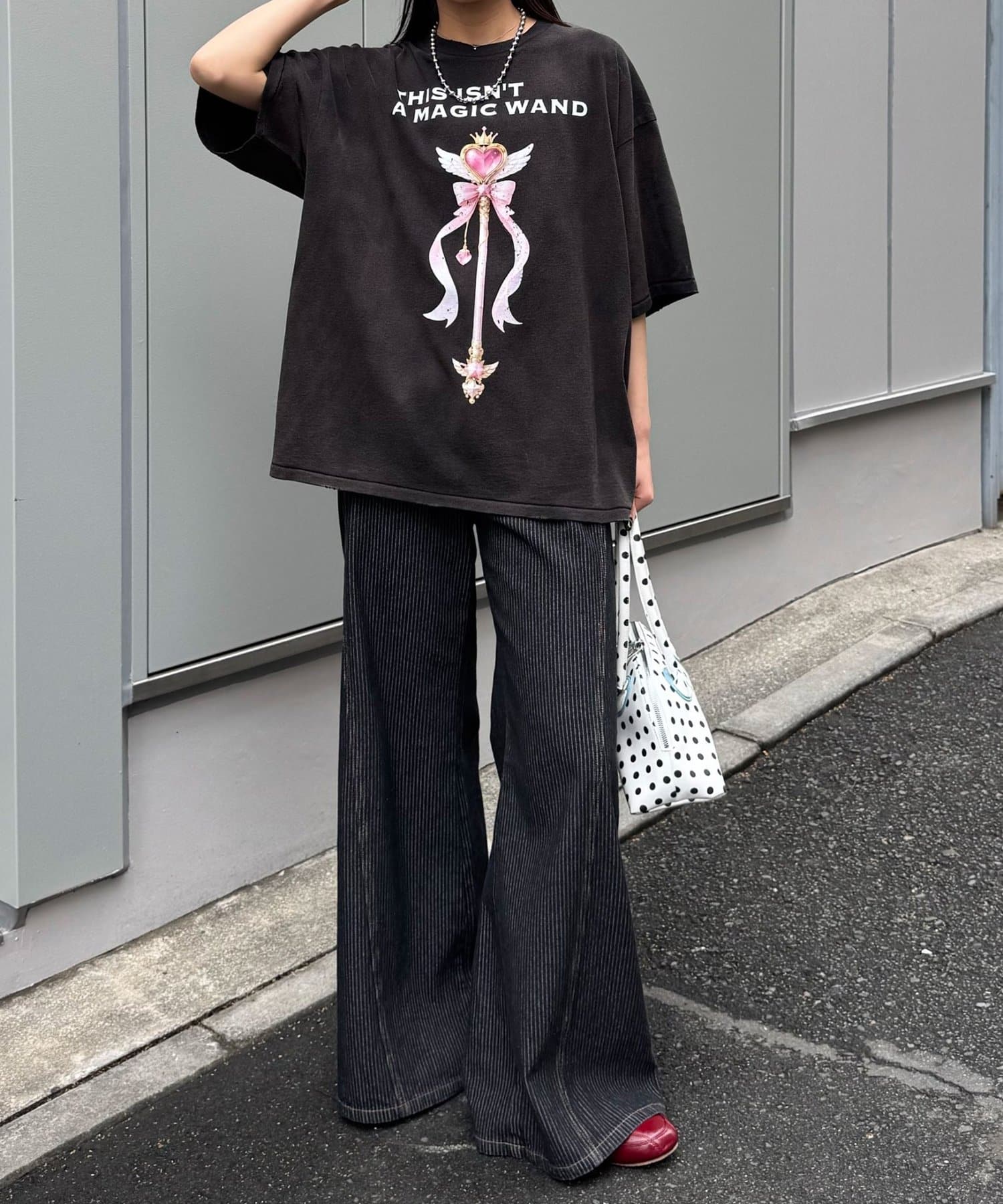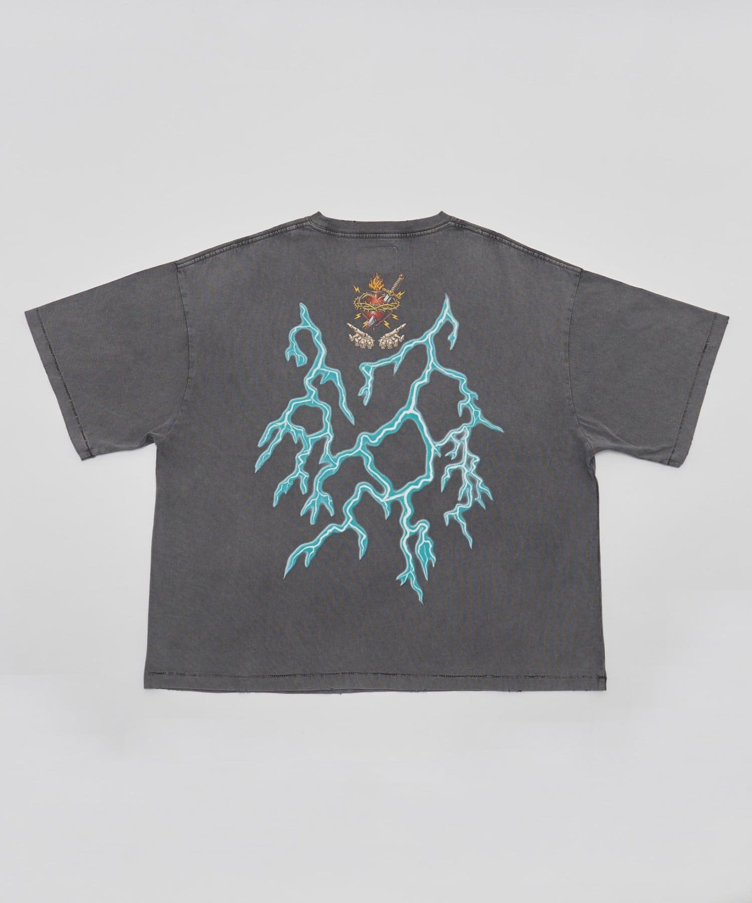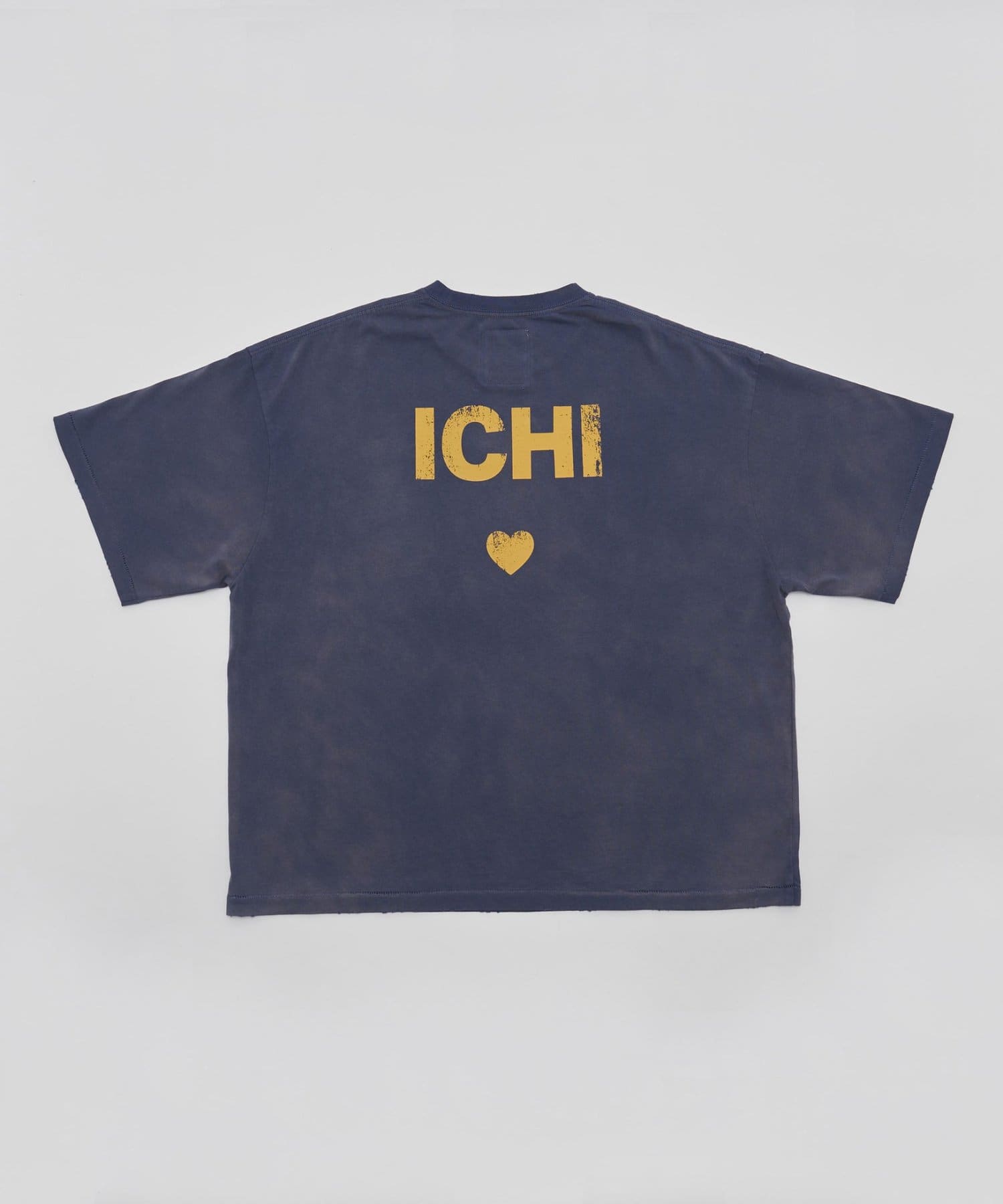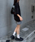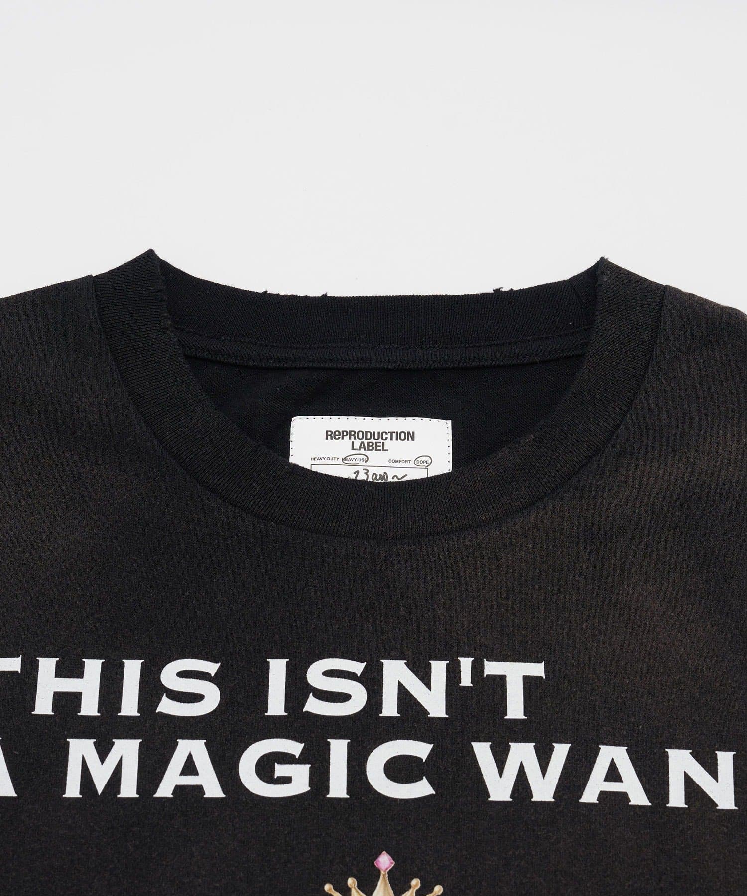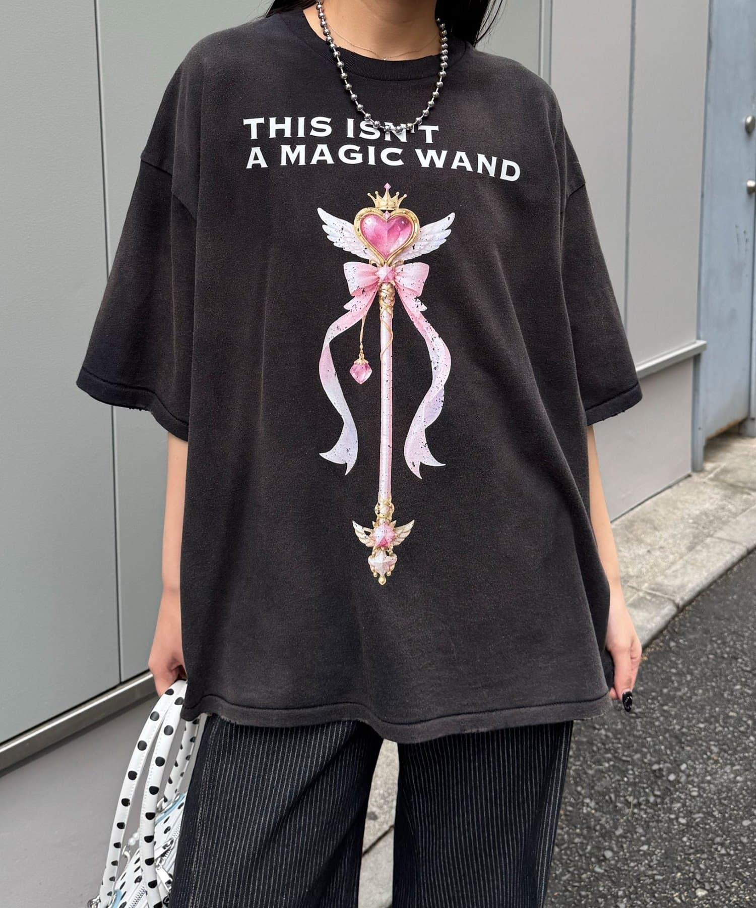 絶妙な色落ち感と、あえてラフに仕上げたグラインダーダメージ、味のあるひび割れプリントが古着のような奥行きを感じさせます。
