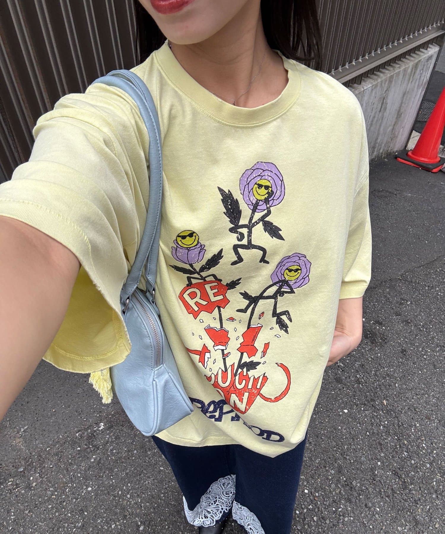 ジャケットやシャツのインナーとしてプリントを覗かせれば、奥行きのあるレイヤードが楽しめます。