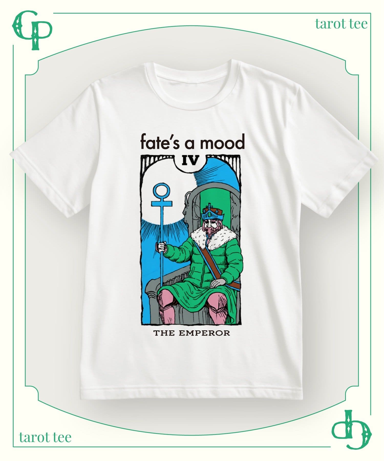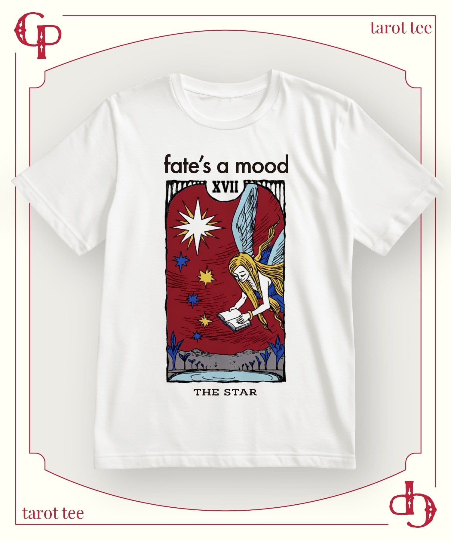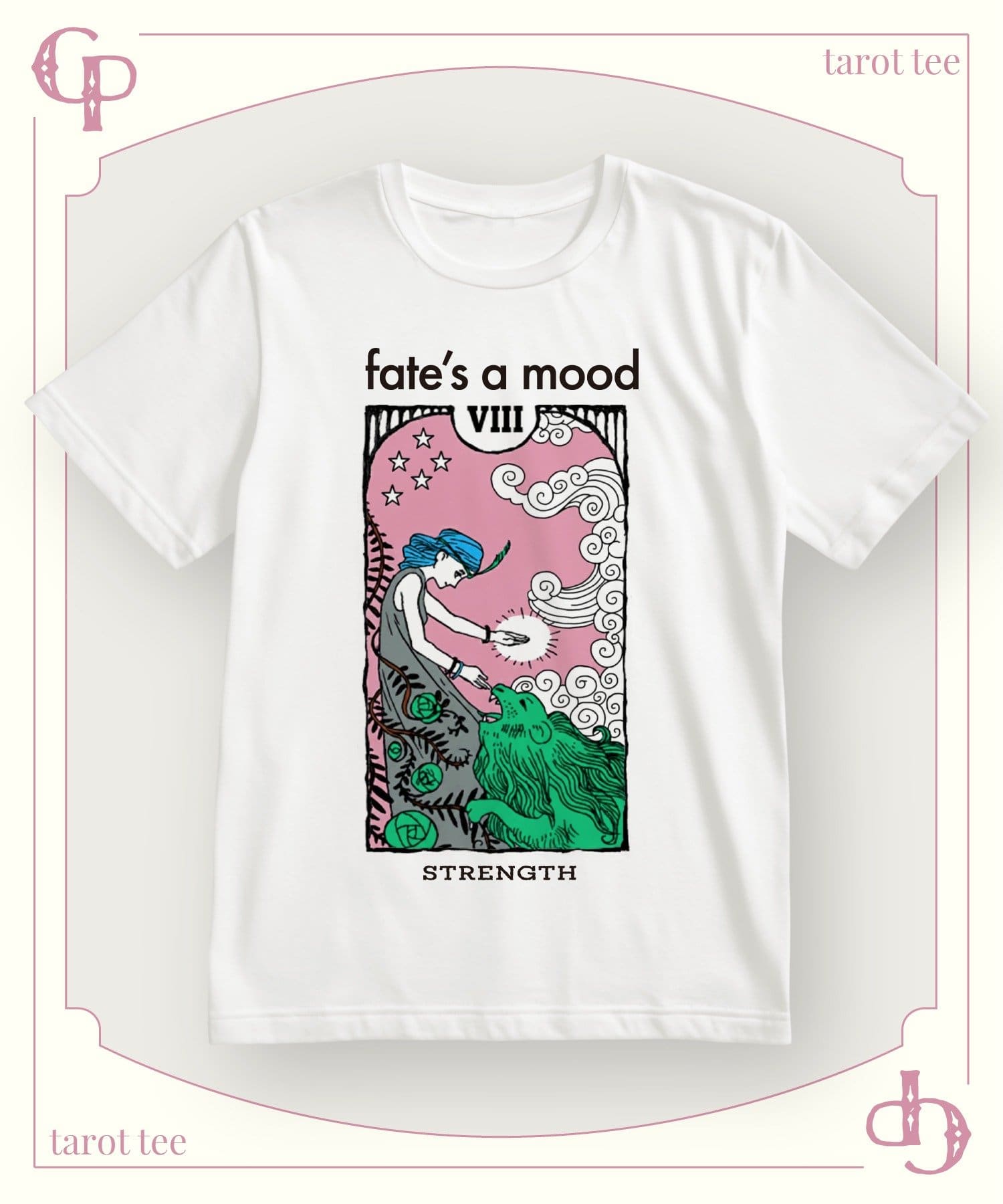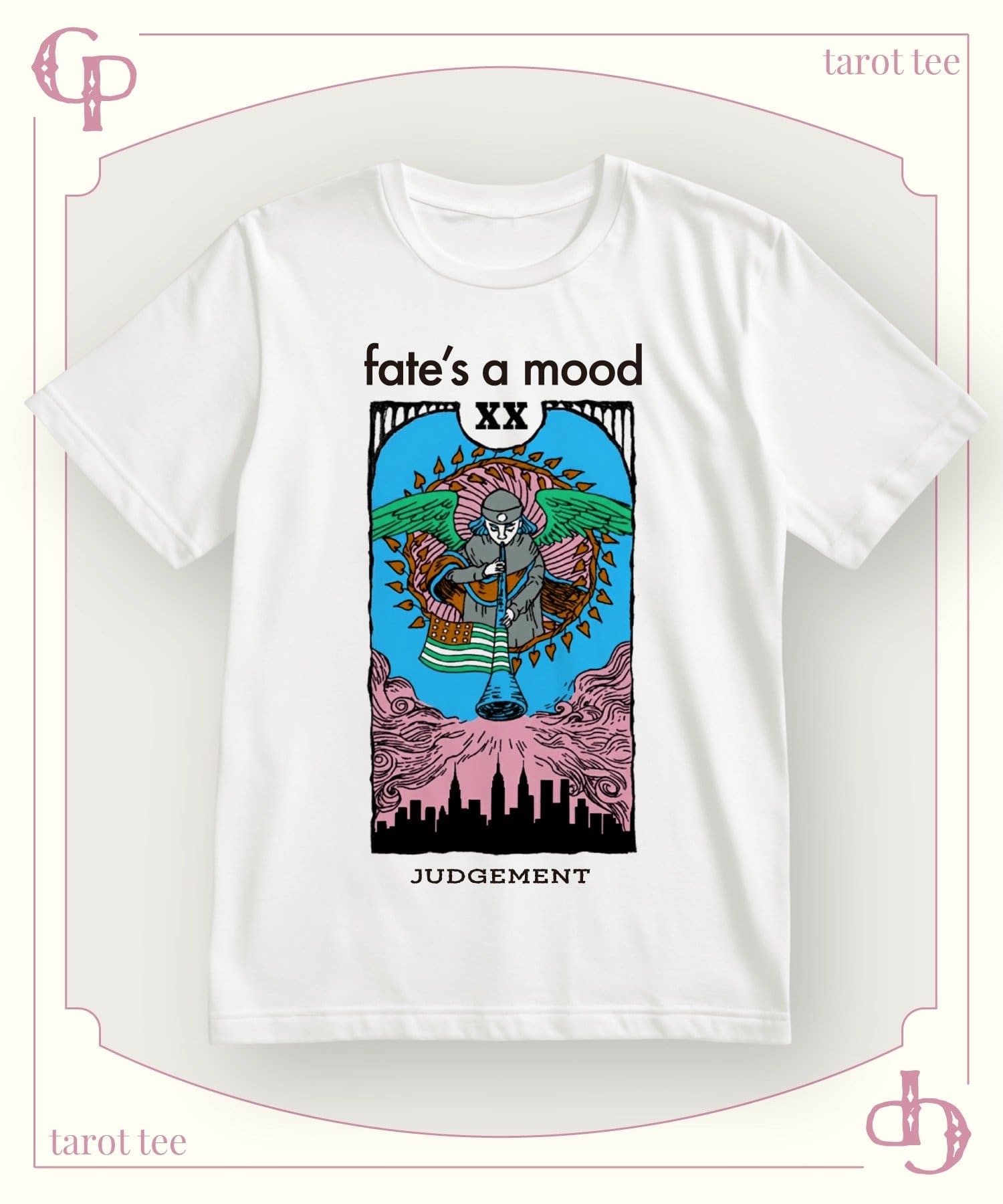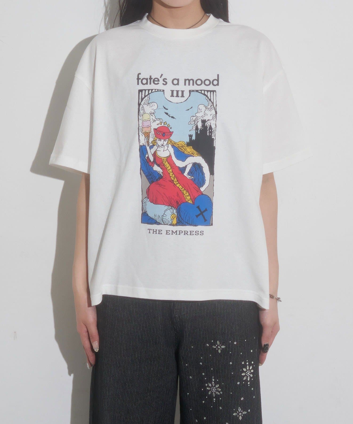タロットカードの神秘的な世界観を、トレンド感のあるグラフィックで表現したオリジナルTシャツ。
