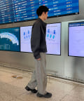 ショート丈のジャケットやタイトなトップスを合わせれば、パンツのボリュームが際立ちメリハリのあるスタイルに。