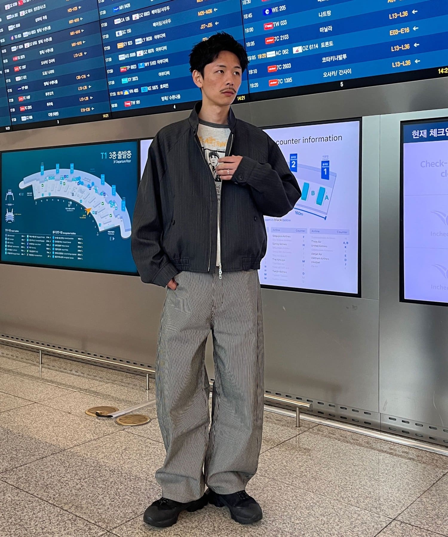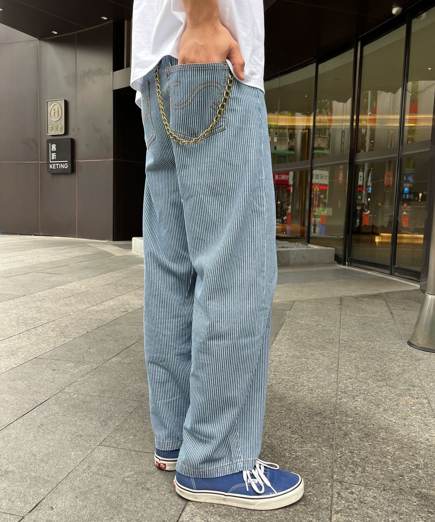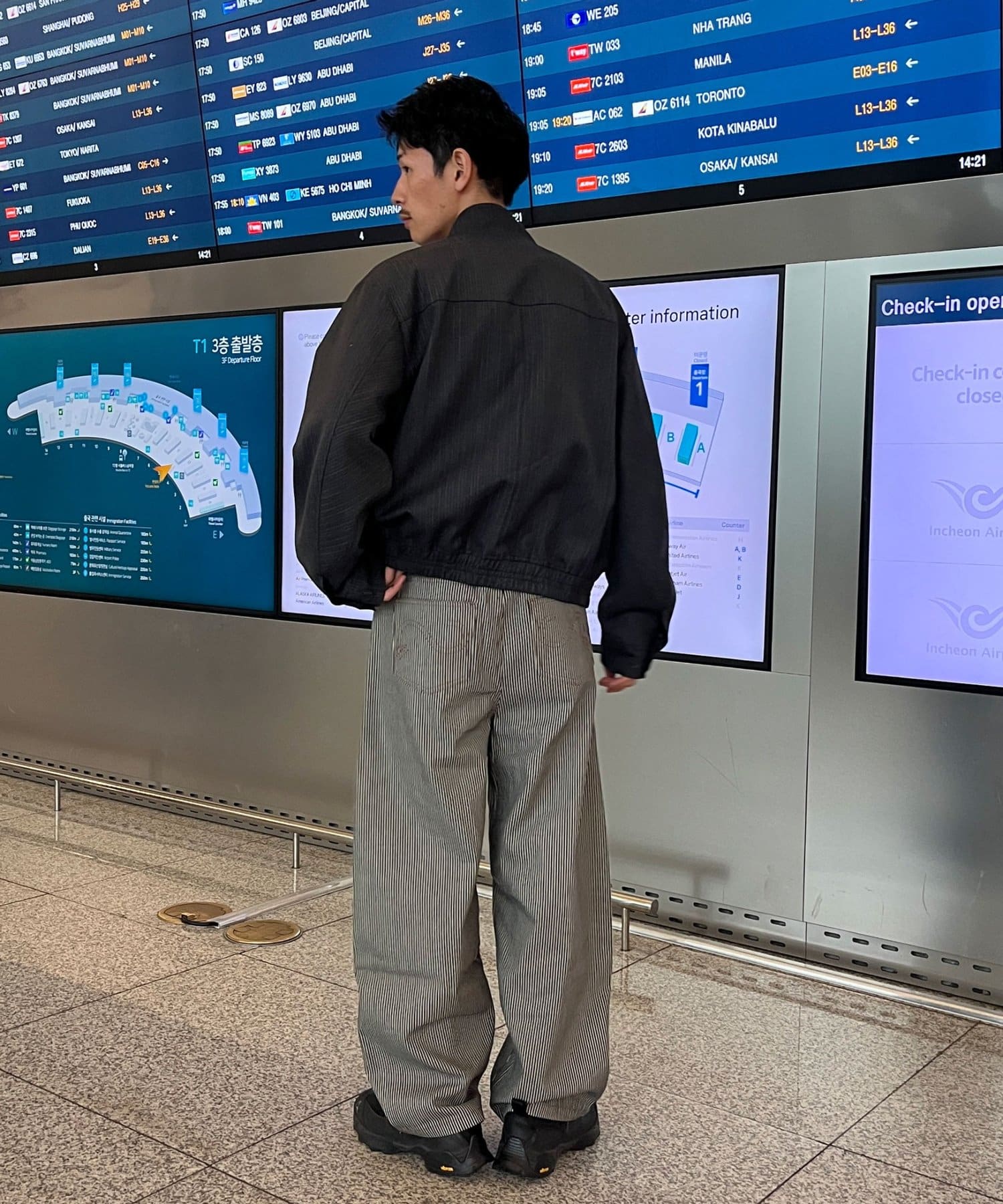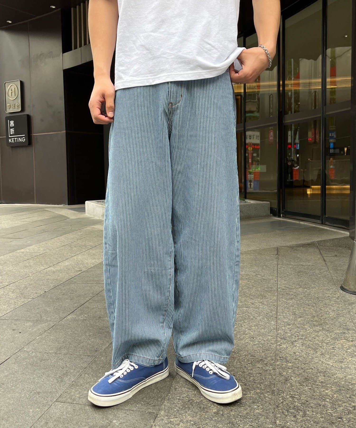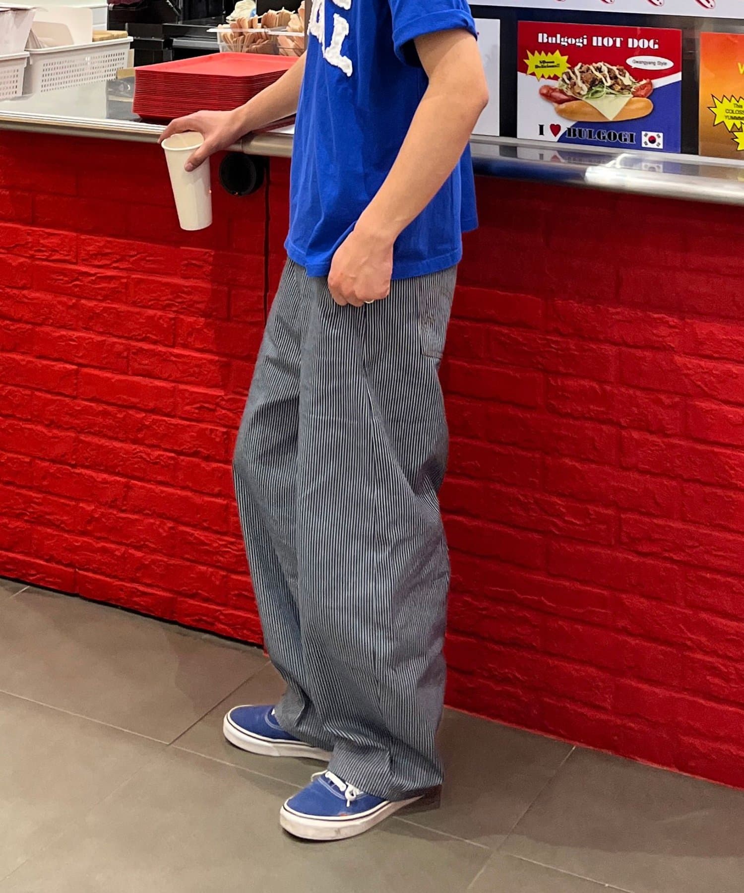 ワークウエアの定番であるヒッコリーストライプを、現代的なルーズシルエットに落とし込んだ一着。