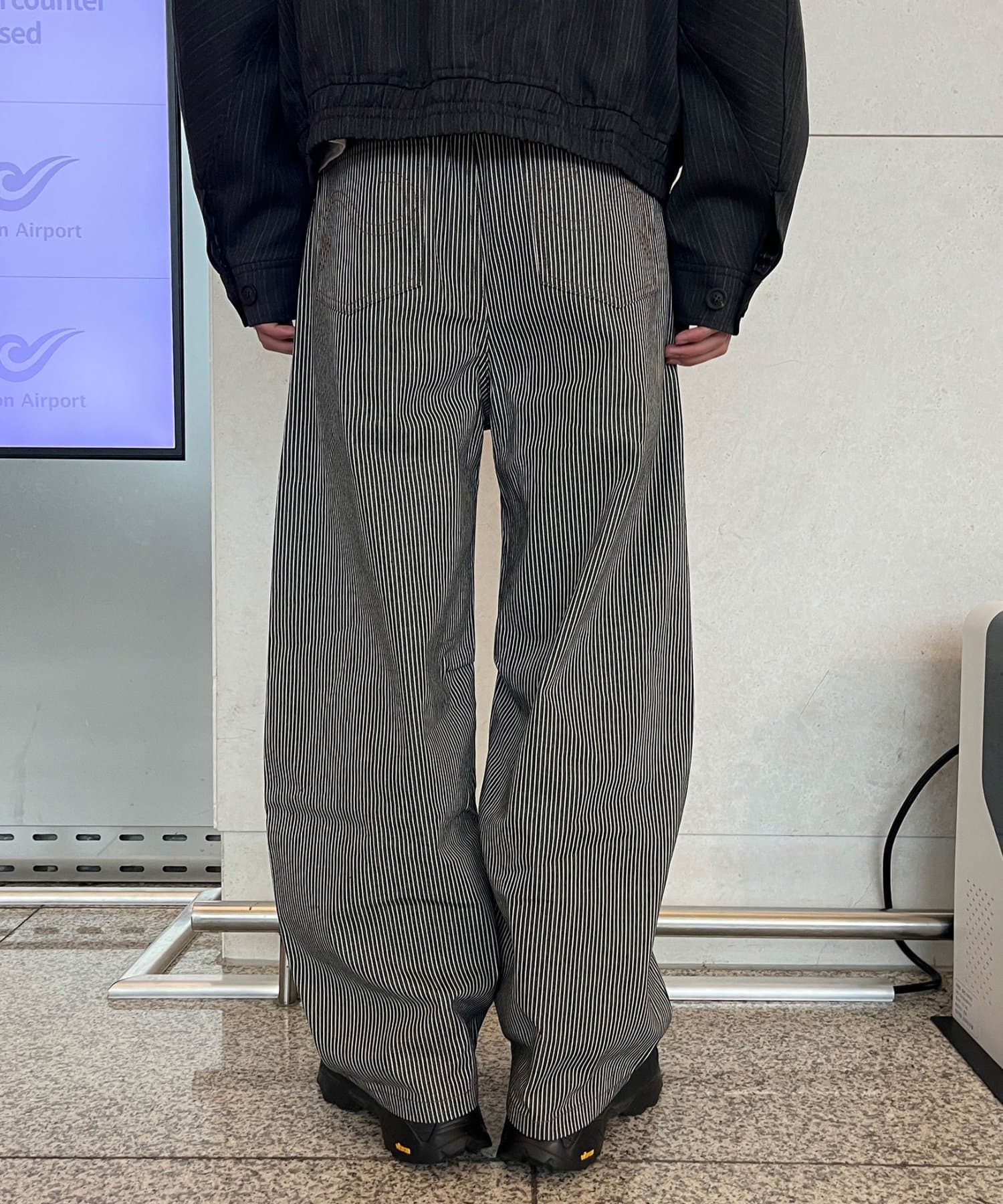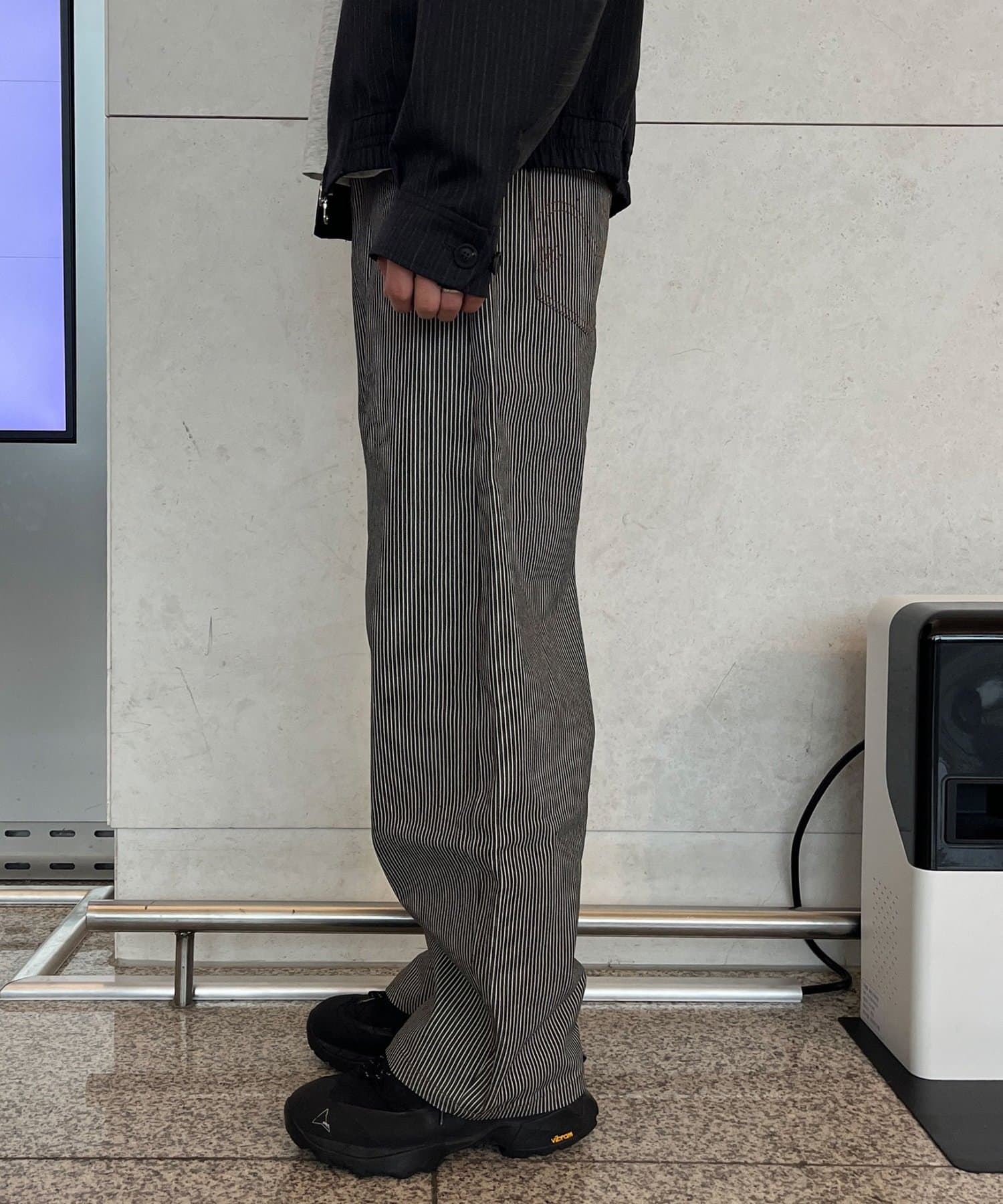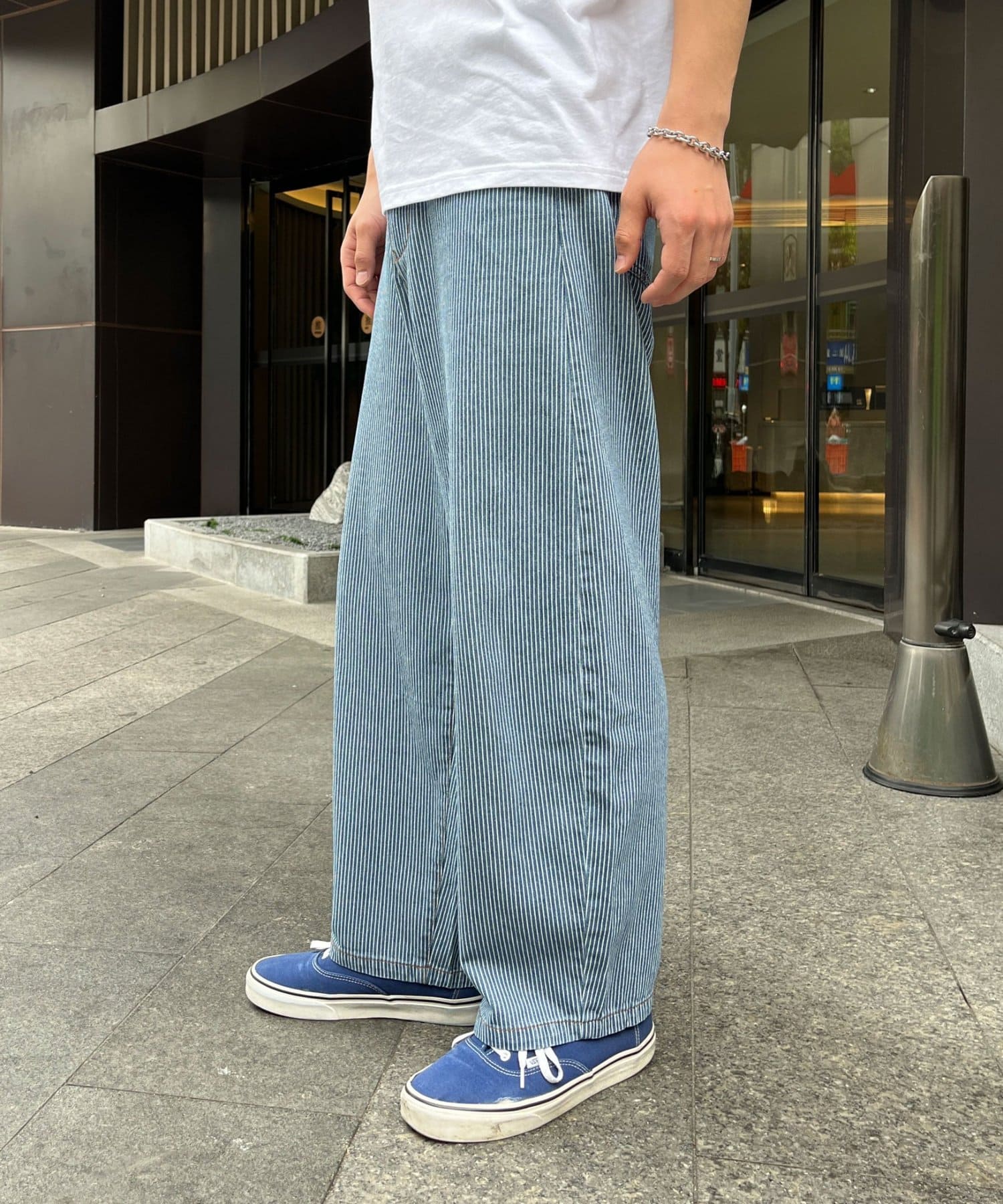 しっかりとした生地感で形が崩れにくく、オールシーズン活躍してくれる万能なストライプパンツです。