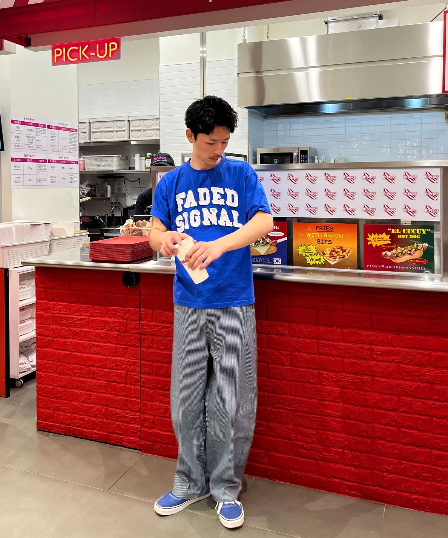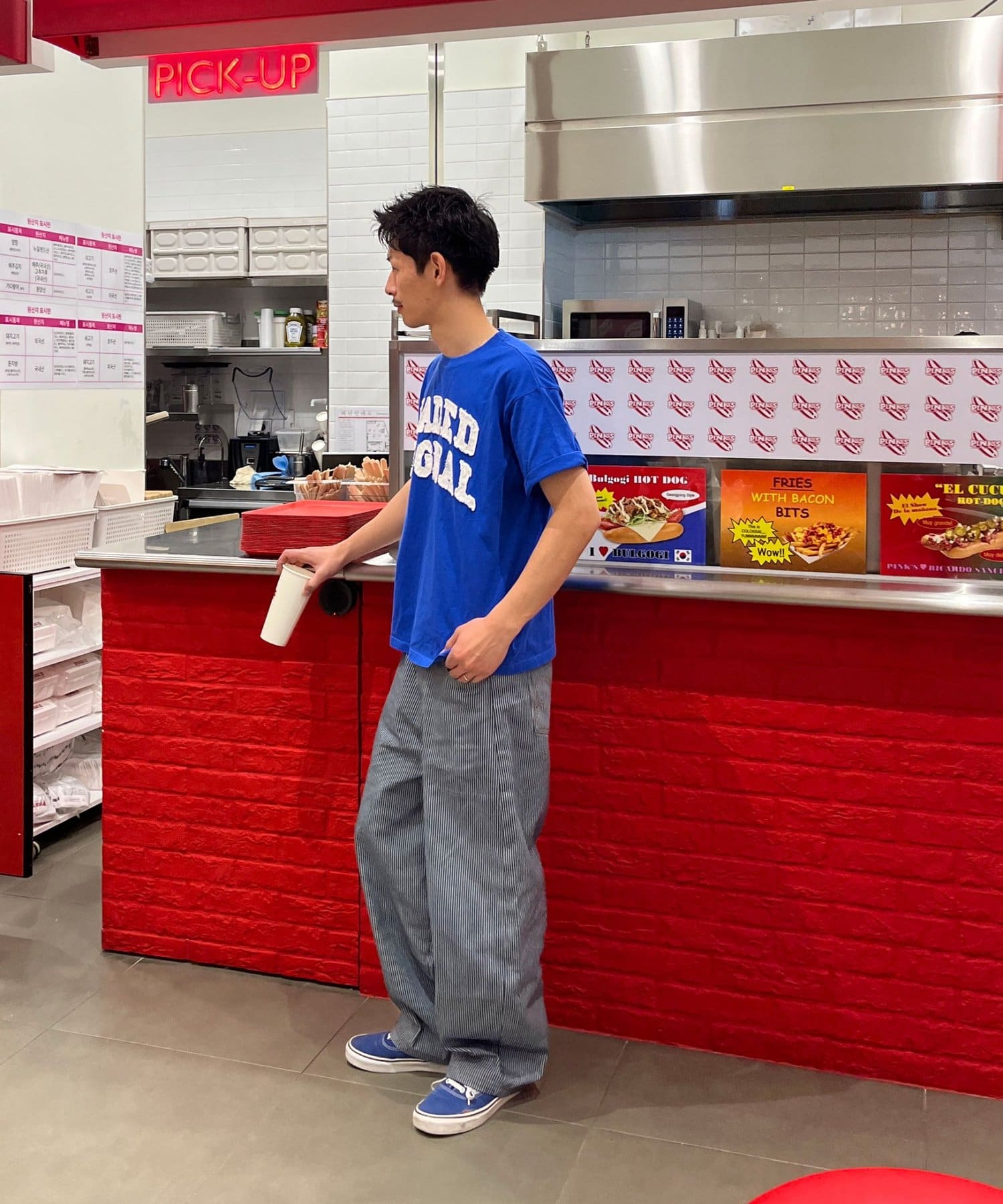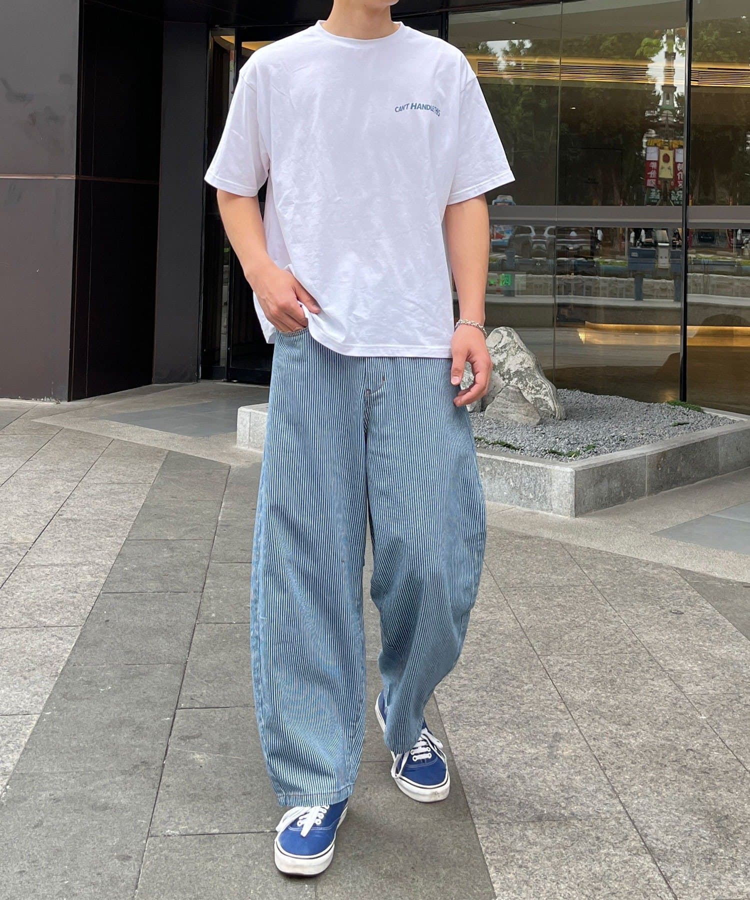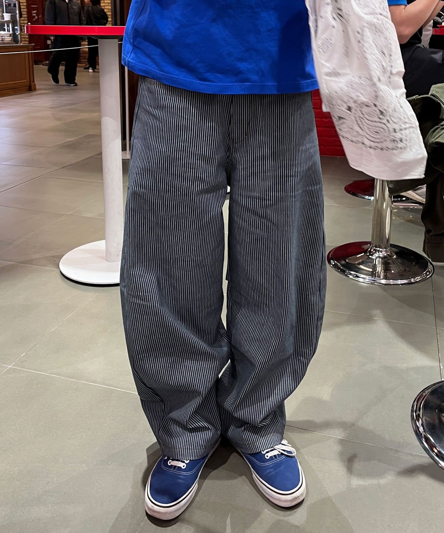 オーバーサイズのTシャツやスウェットでとことんルーズにまとめても、ストライプ柄が程よく全体を引き締めてくれます。
