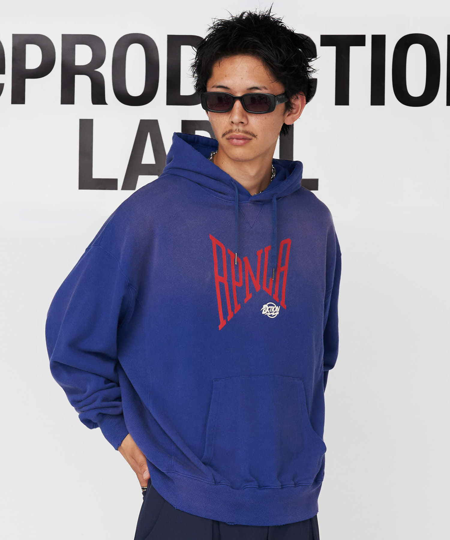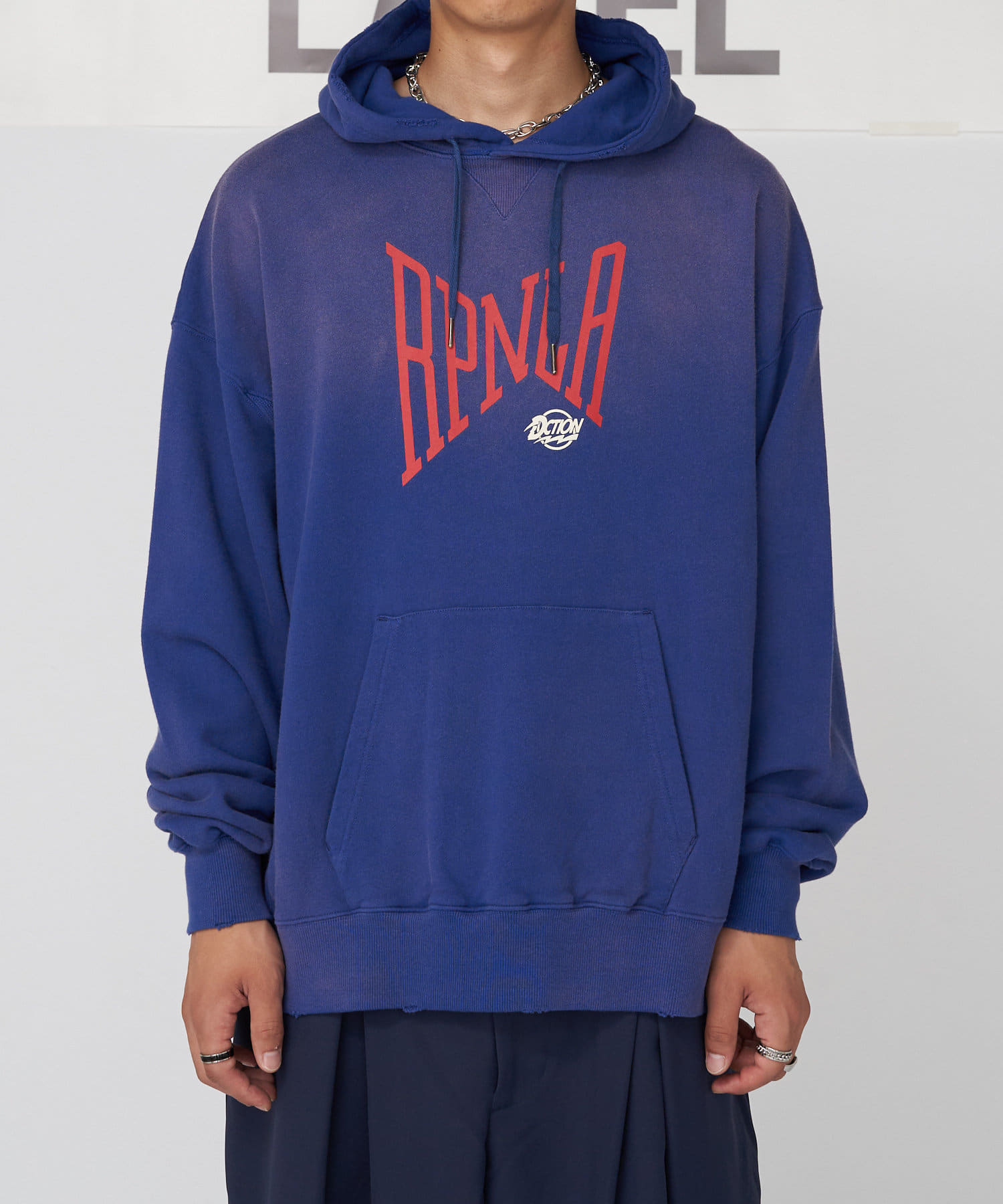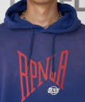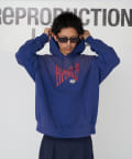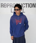 存在感あるフロントのプリントがインパクト抜群のプルパーカー。