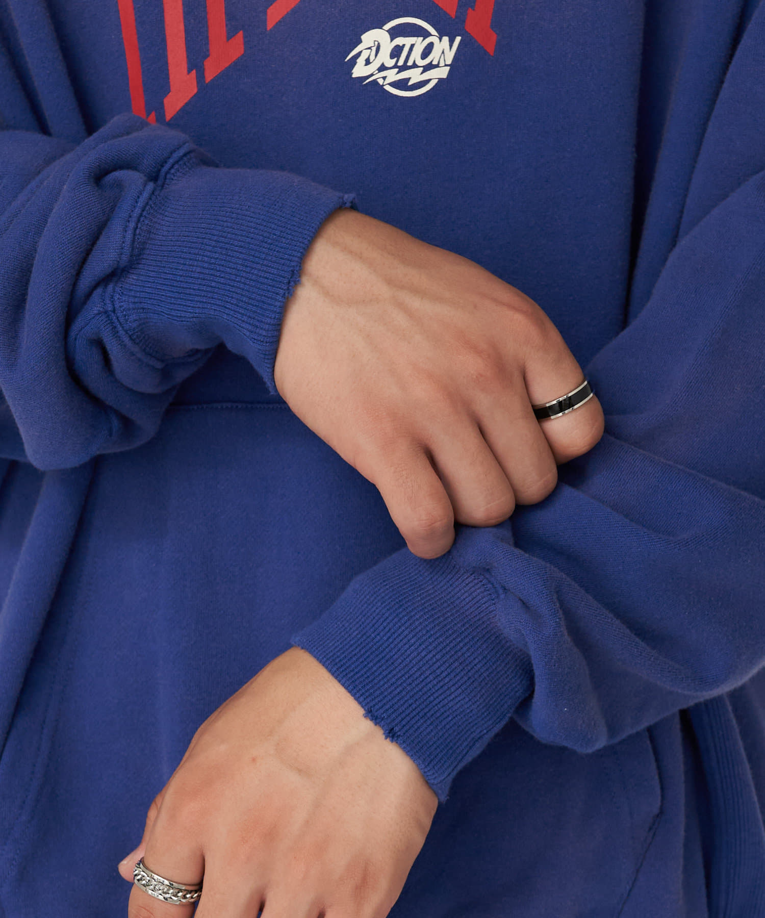 だぼっとワイドなデニムやカーゴパンツなどルーズなアイテムとの相性抜群です。