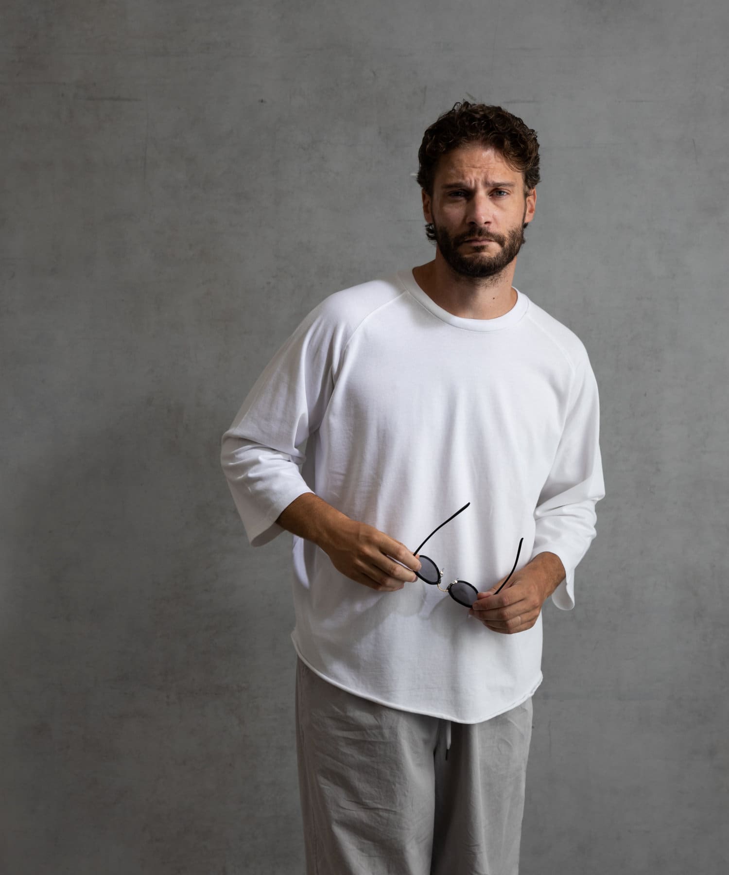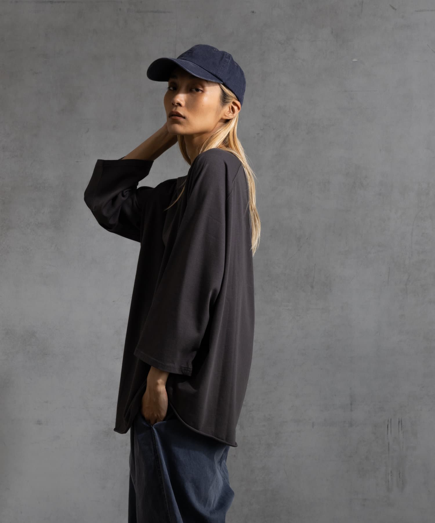 生地の肌触りや高級感とリラックス感あるシルエットで仕上げる事でスタイルを選ばないユニセックスなアイテムになっています。