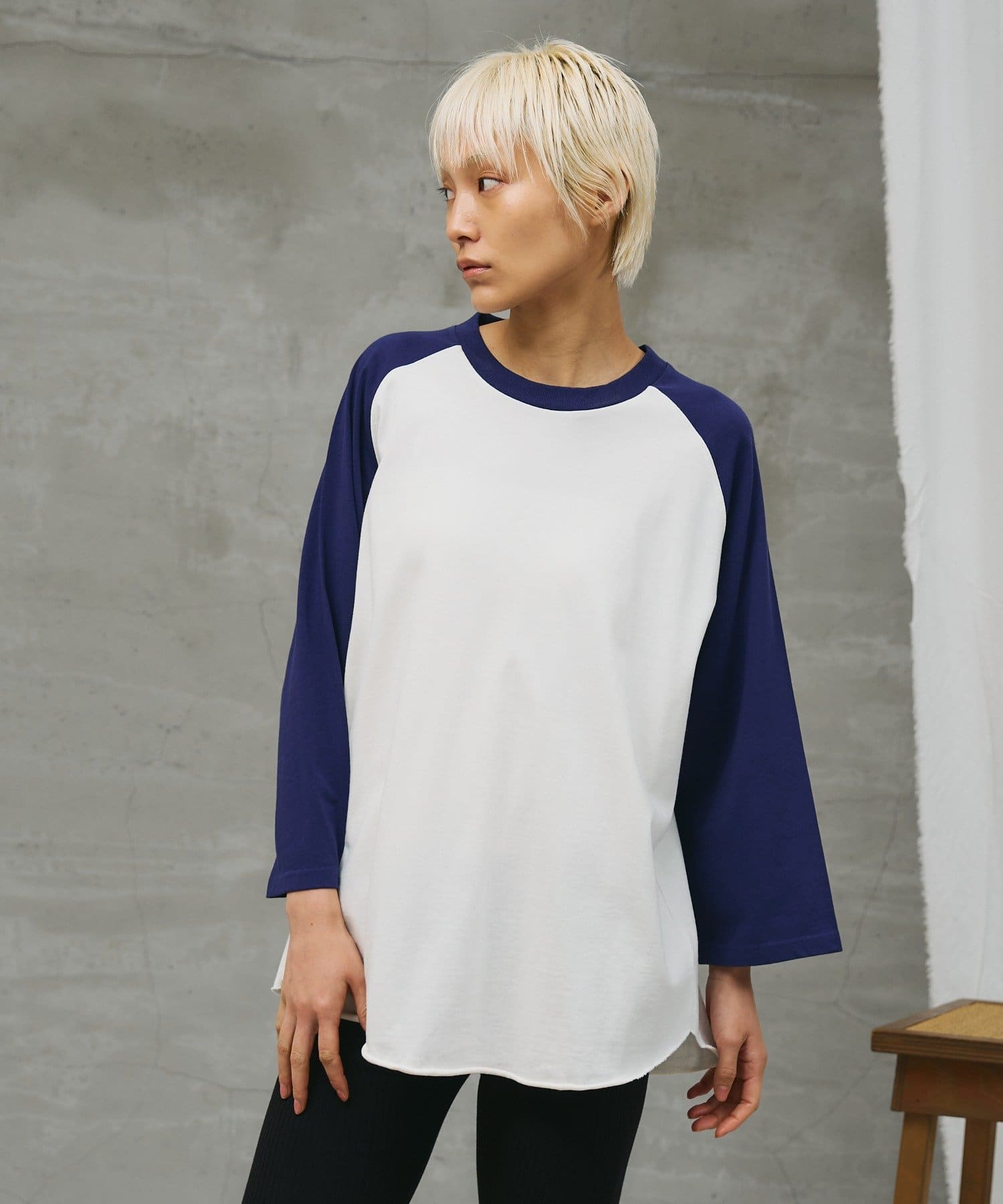 こちらのラグランTは七分袖のラグランスリーブ、裾のカットオフなどアメカジの代表的なアイテムであるクラッシックなベースボールTのディティールを踏襲しつつも、
