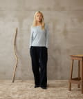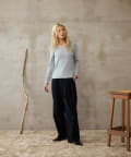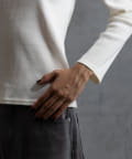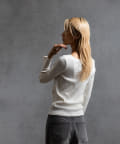 さりげなく光沢感がでる糸に、柔らかく仕上げる加工を施し上品に編みたてたアイテムです。