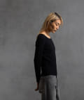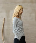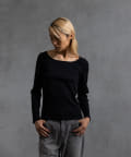 通常のスクエアネックよりもややラウンドし丸みを持たせたネックラインにすることで、