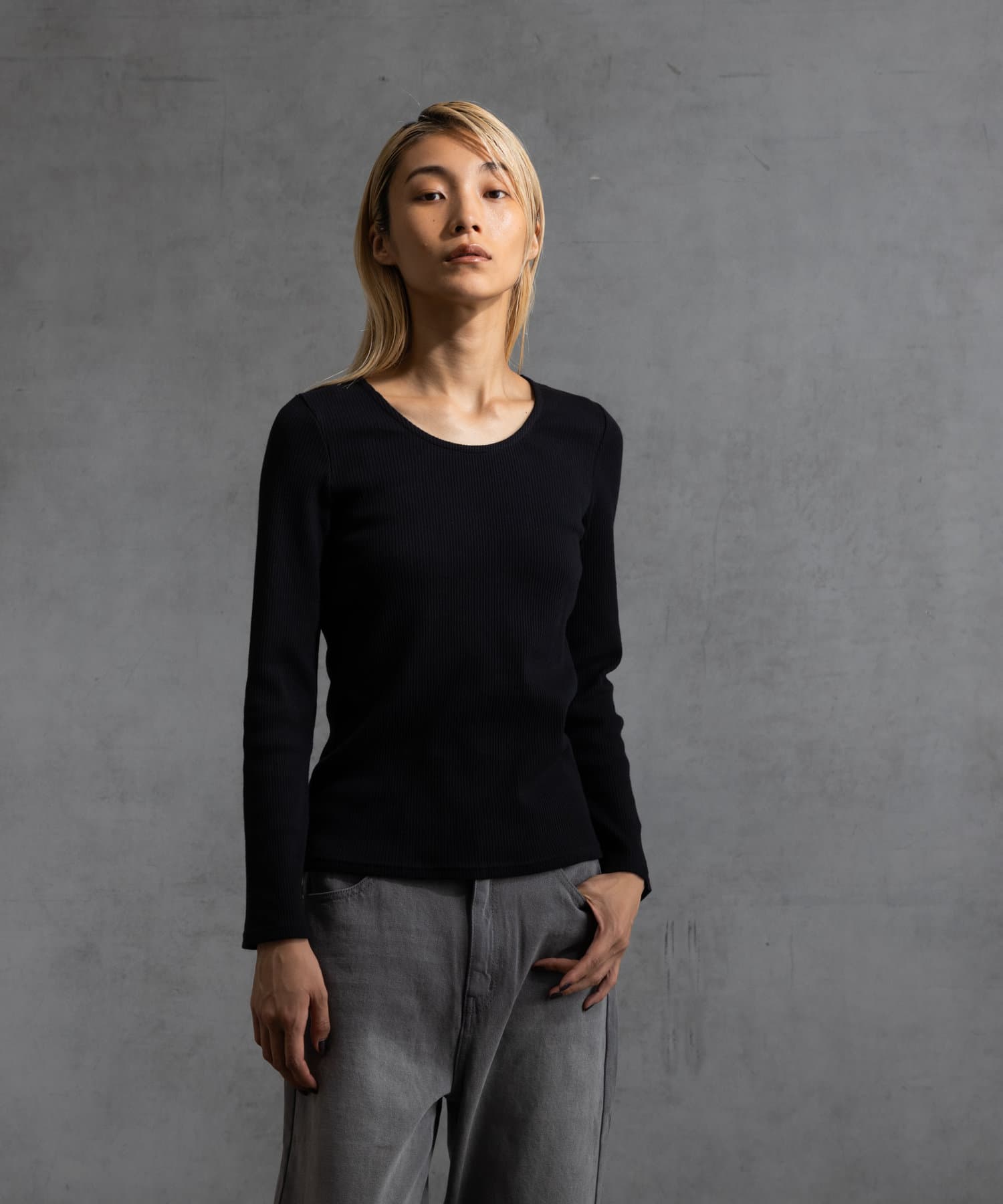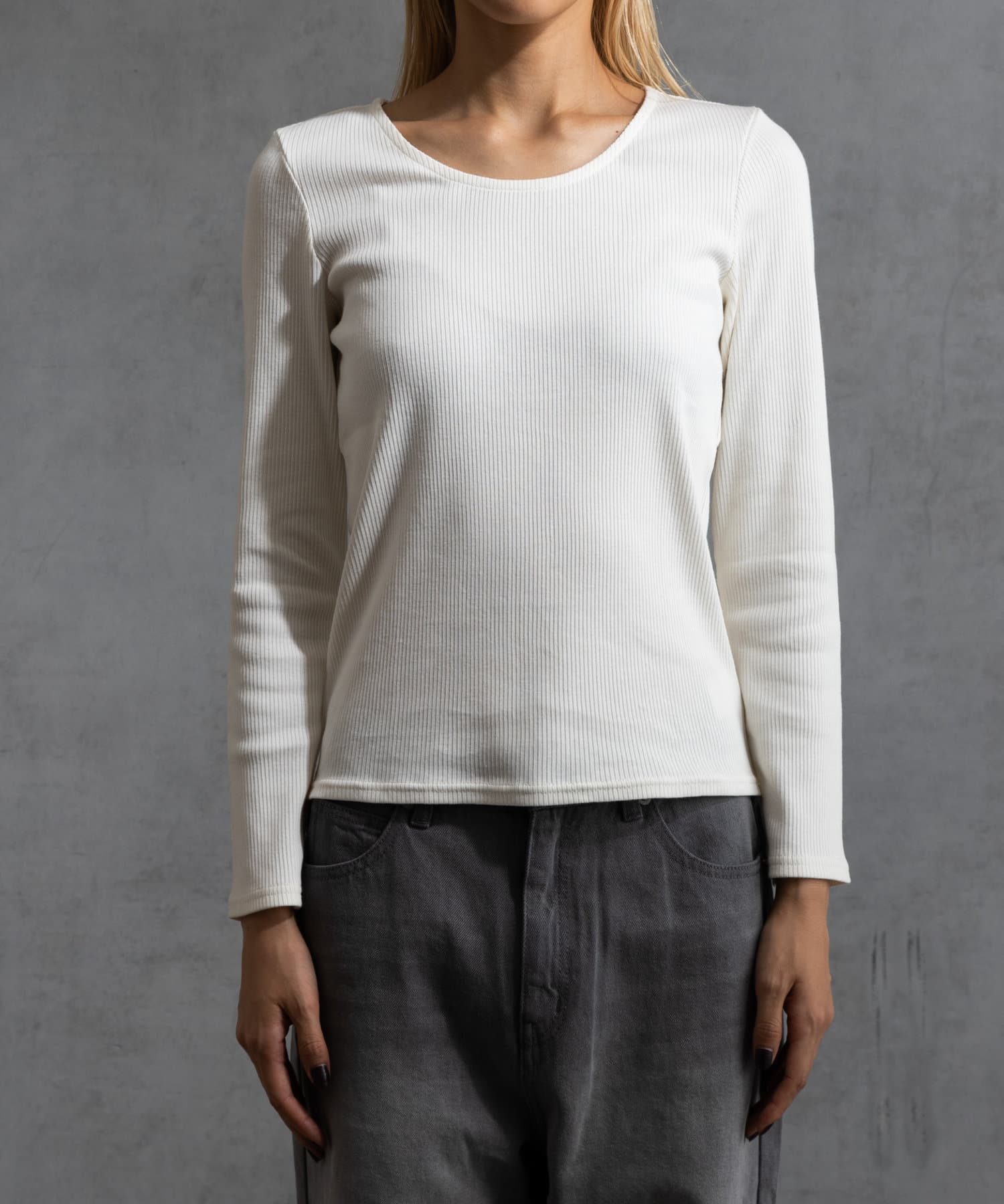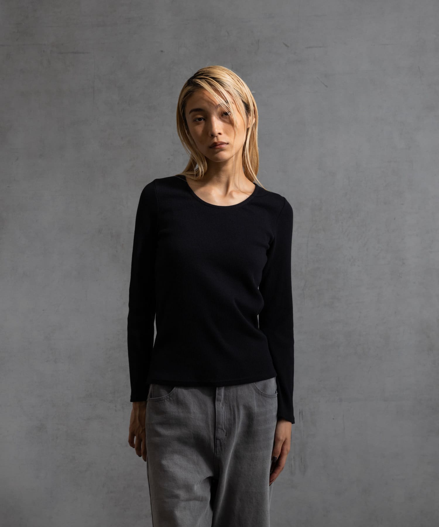 前回好評だった、コットンリブUネックカットソー半袖(CUA2041606A0003)の秋冬バージョンです。