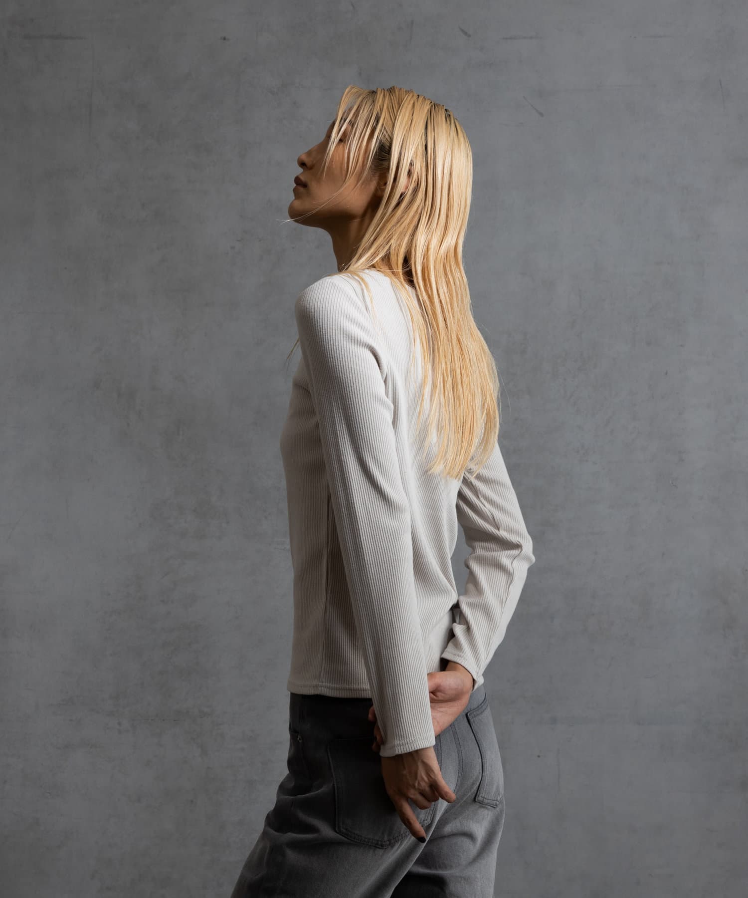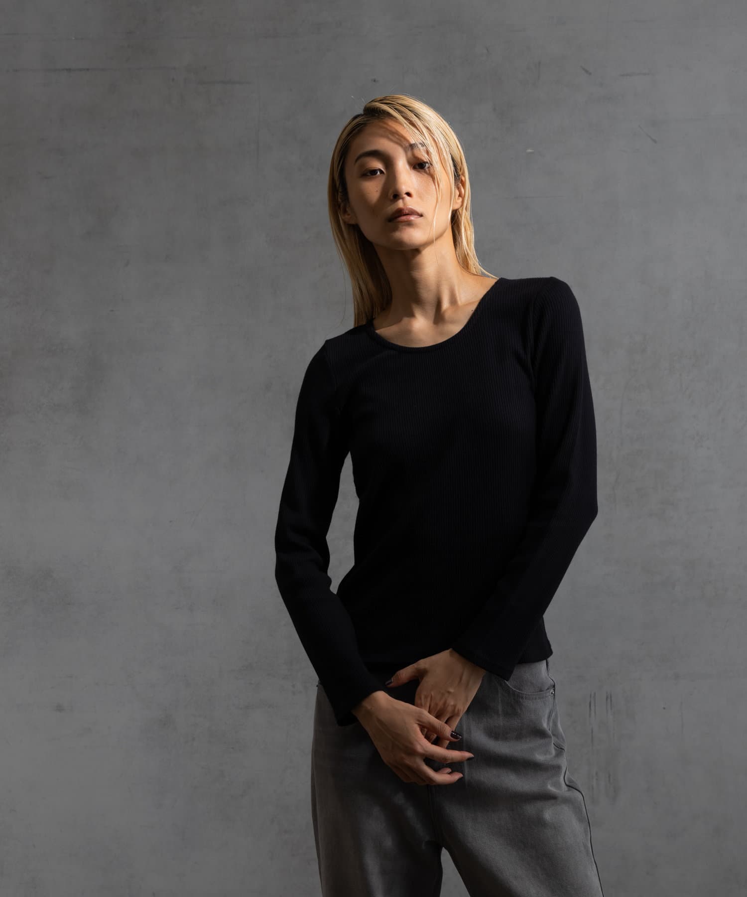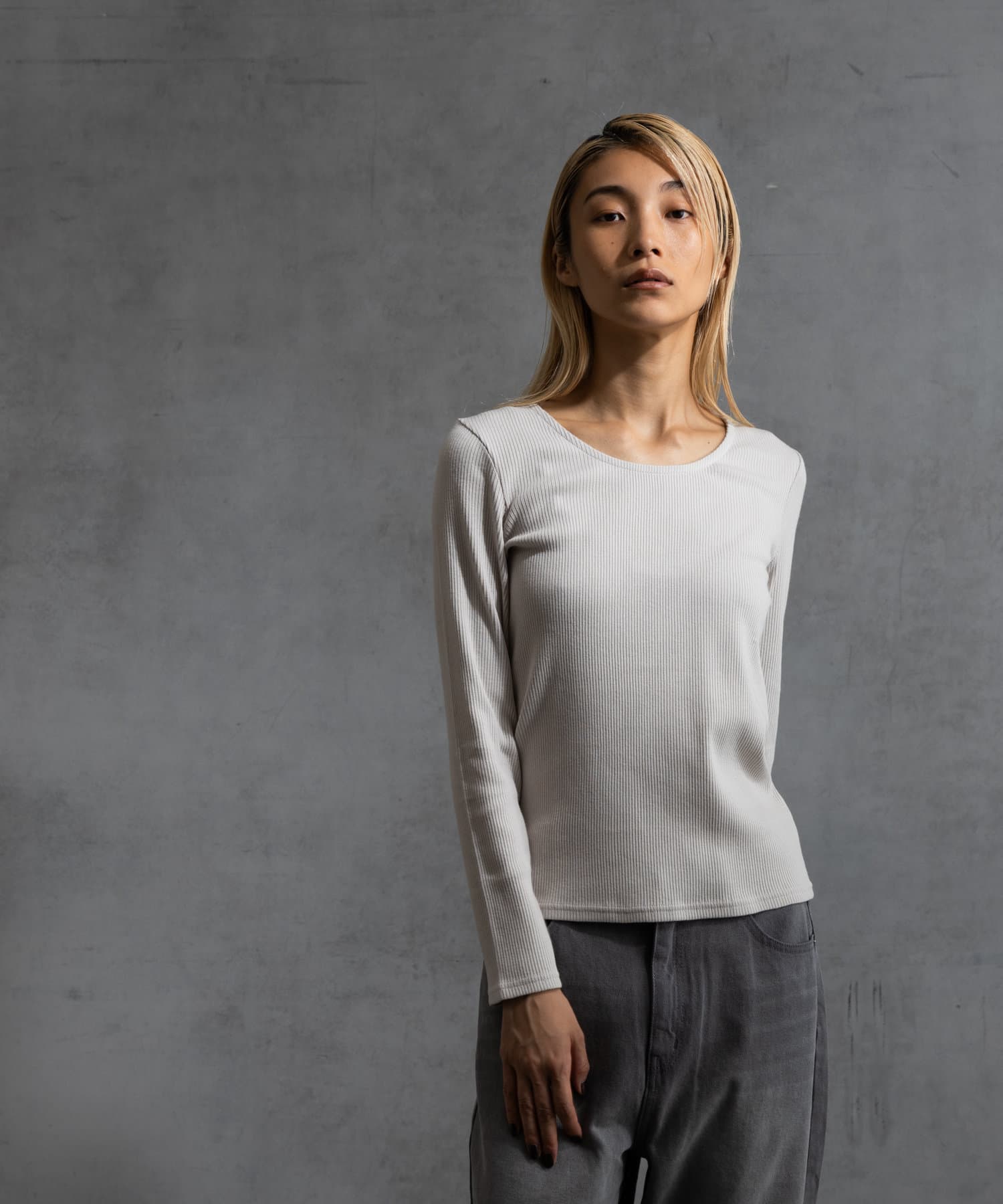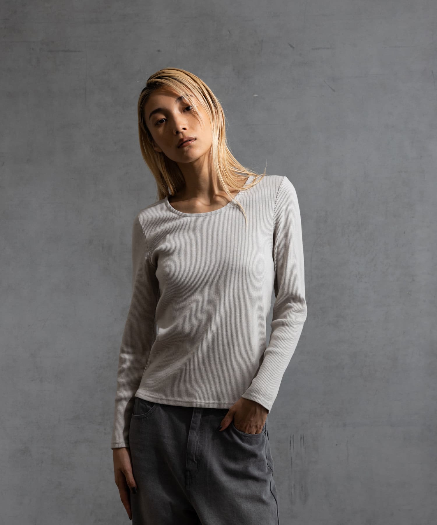 前回好評だった、コットンリブUネックカットソー半袖(CUA2041606A0003)の秋冬バージョンです。
