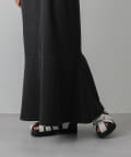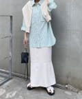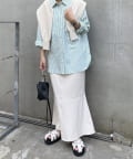 短丈のニットやルーズなトップスを重ねるとスカートのマーメイドシルエットがより分かるコーディネートに。
