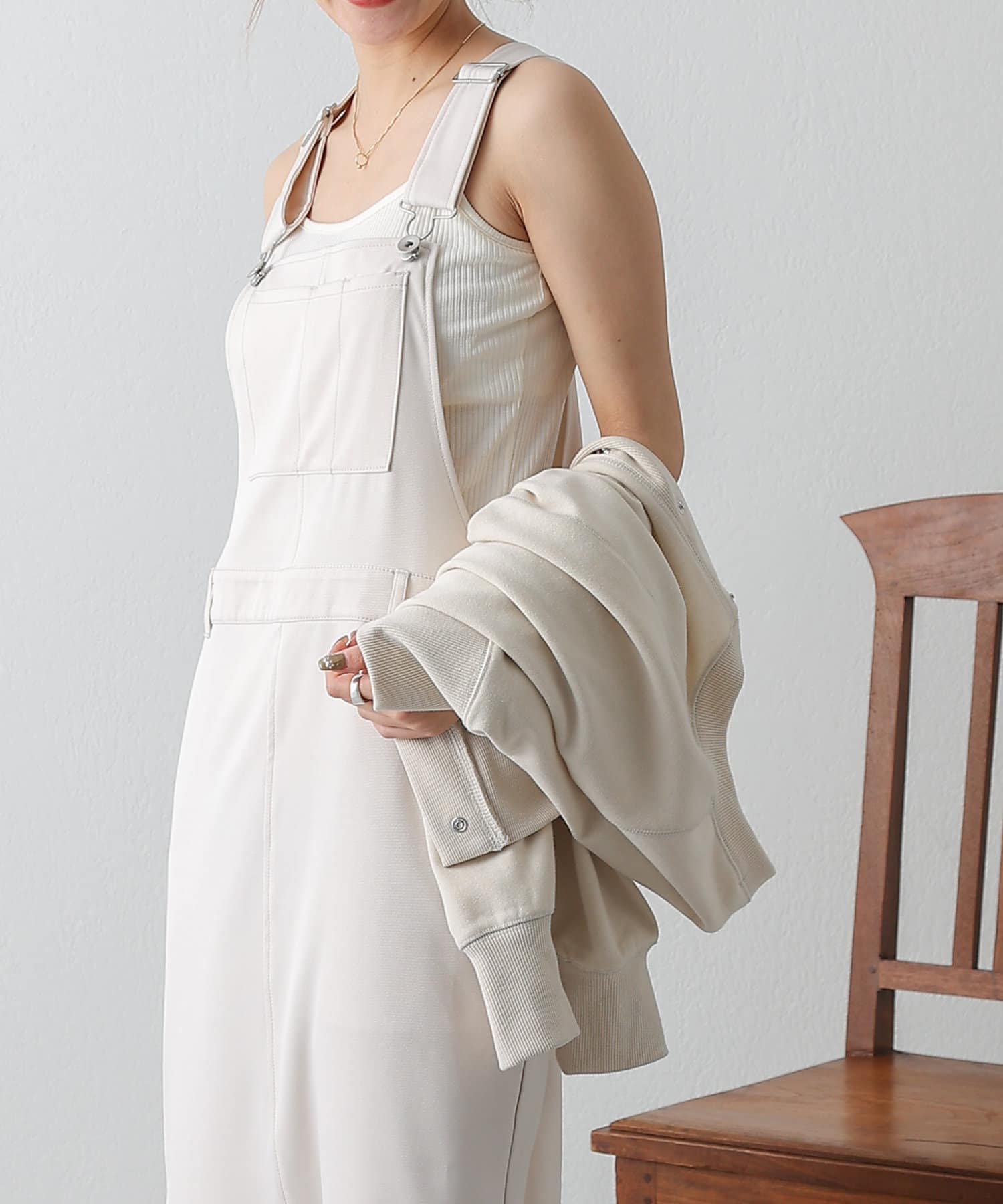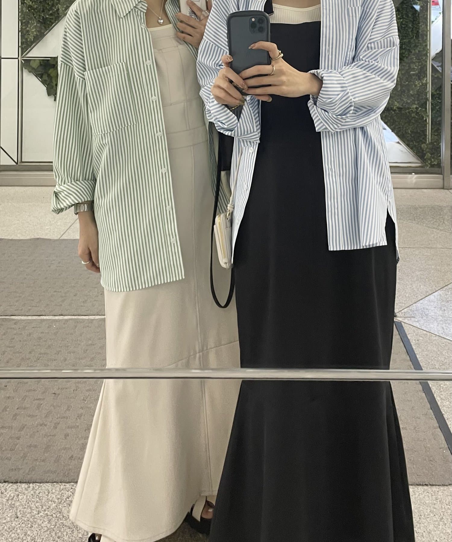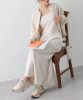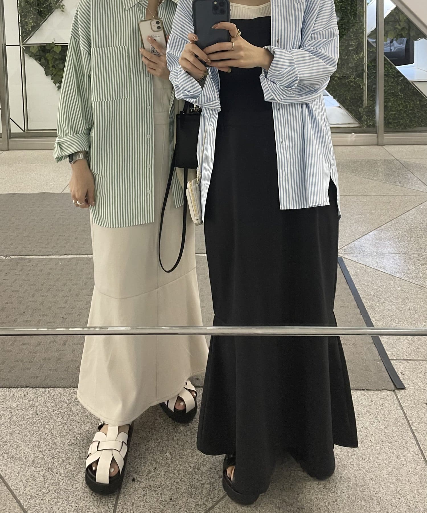 キャミワンピースのようなシルエットなので、上からトレンド感のある短丈のニットやスウェットを合わせてスカートだけ取り入れていただくのも◎