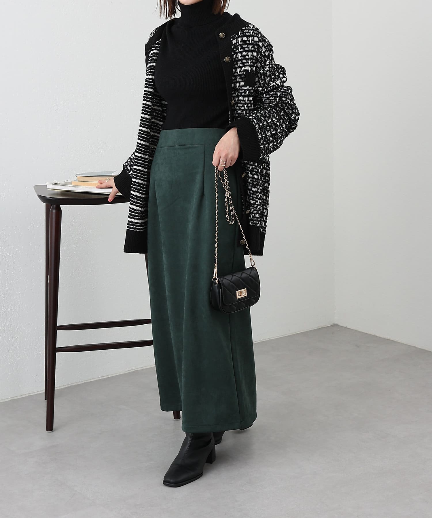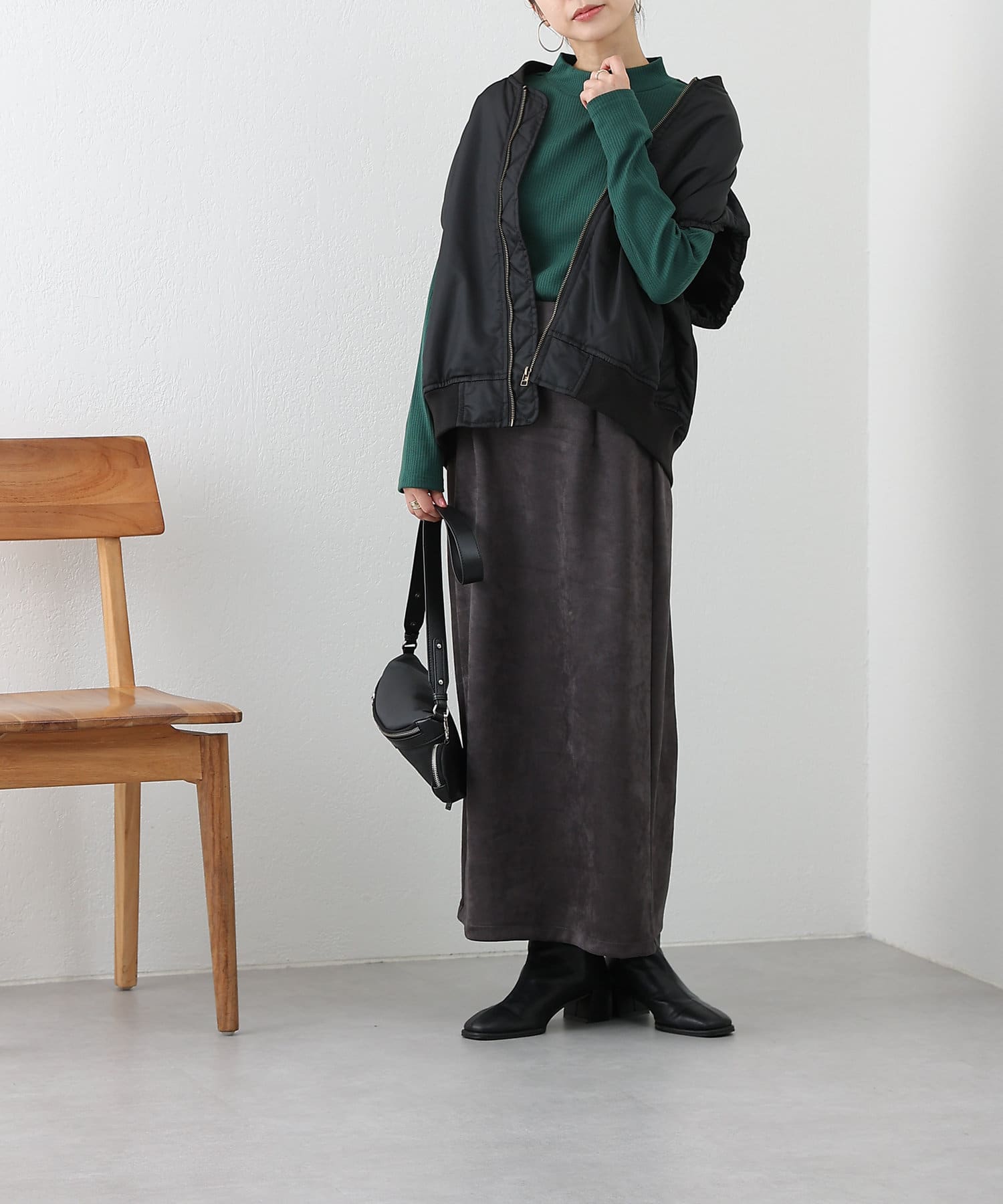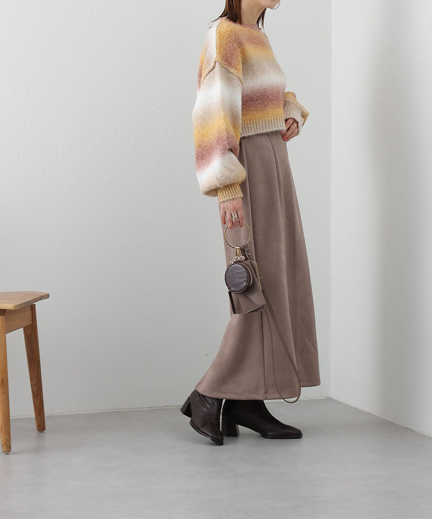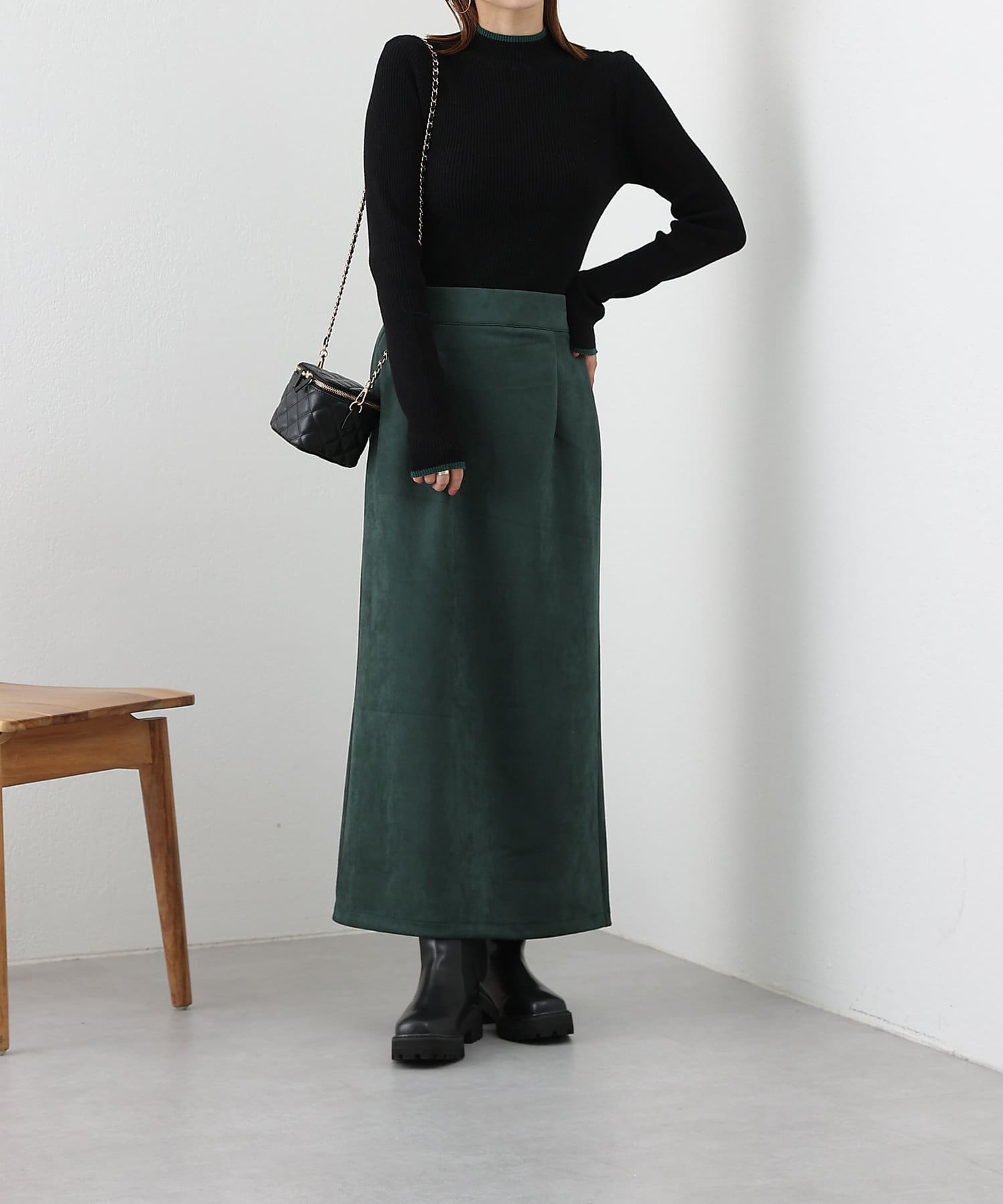 ブラウスやニットの他、カットソーなどお手持ちのどのトップスにも馴染みやすいスカートです。