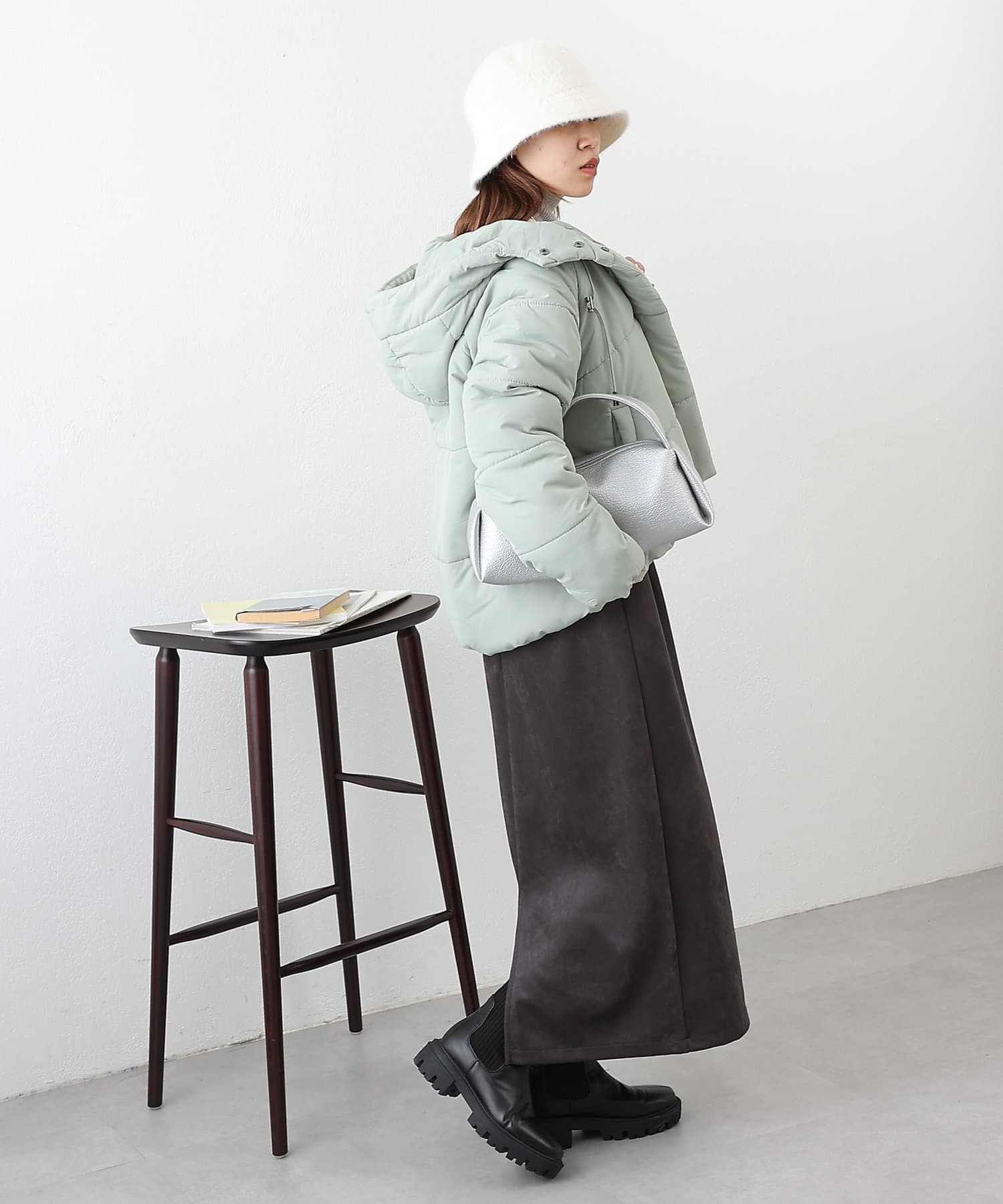 今年トレンドのモヘアや、ブークレ素材のニットなど柔らかい素材感のアイテムと合わせインスタイルがお勧めです。