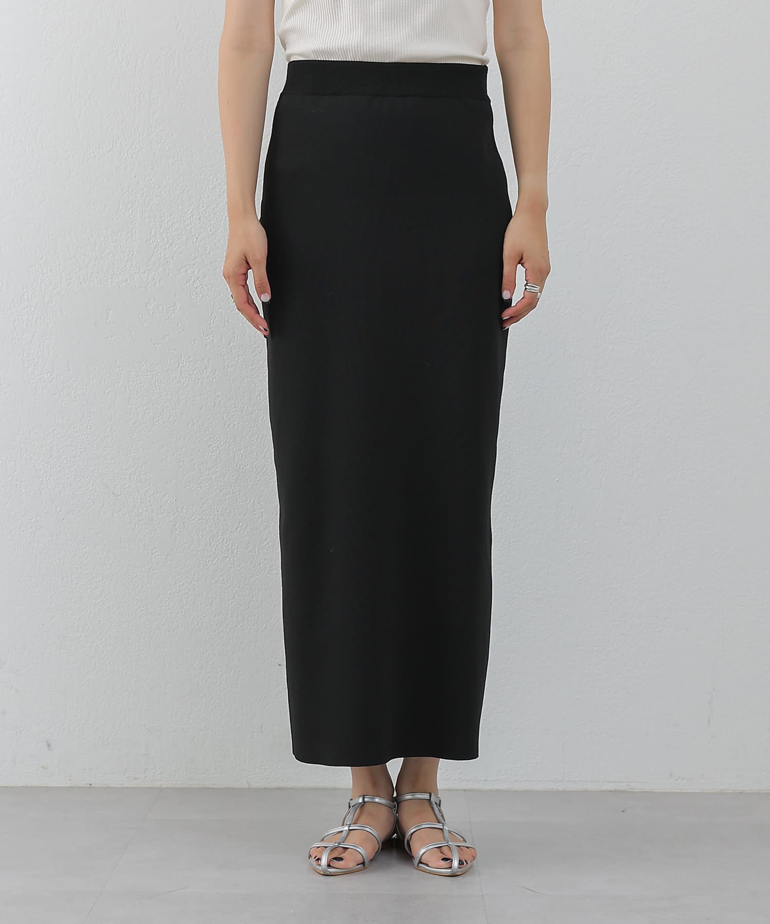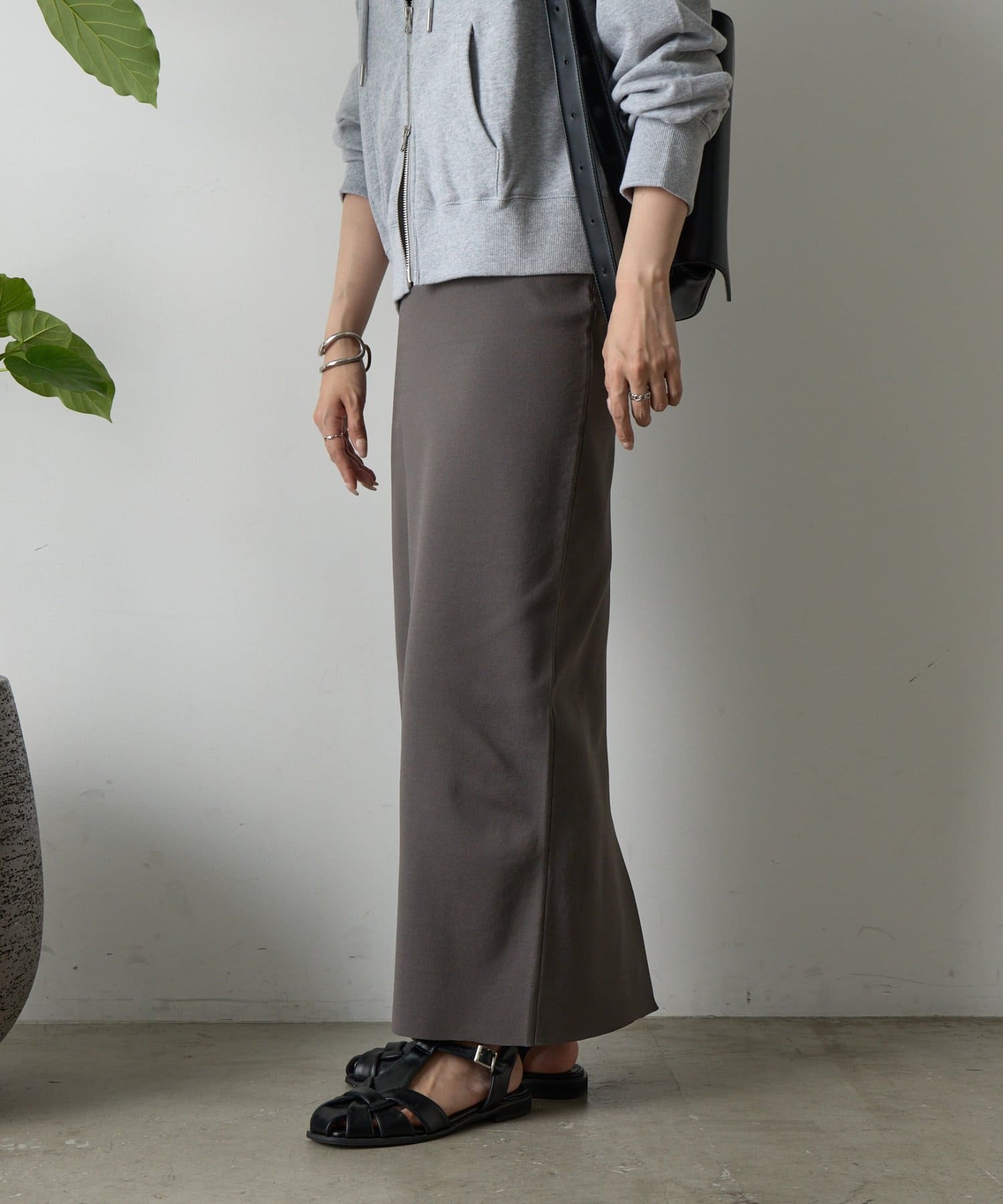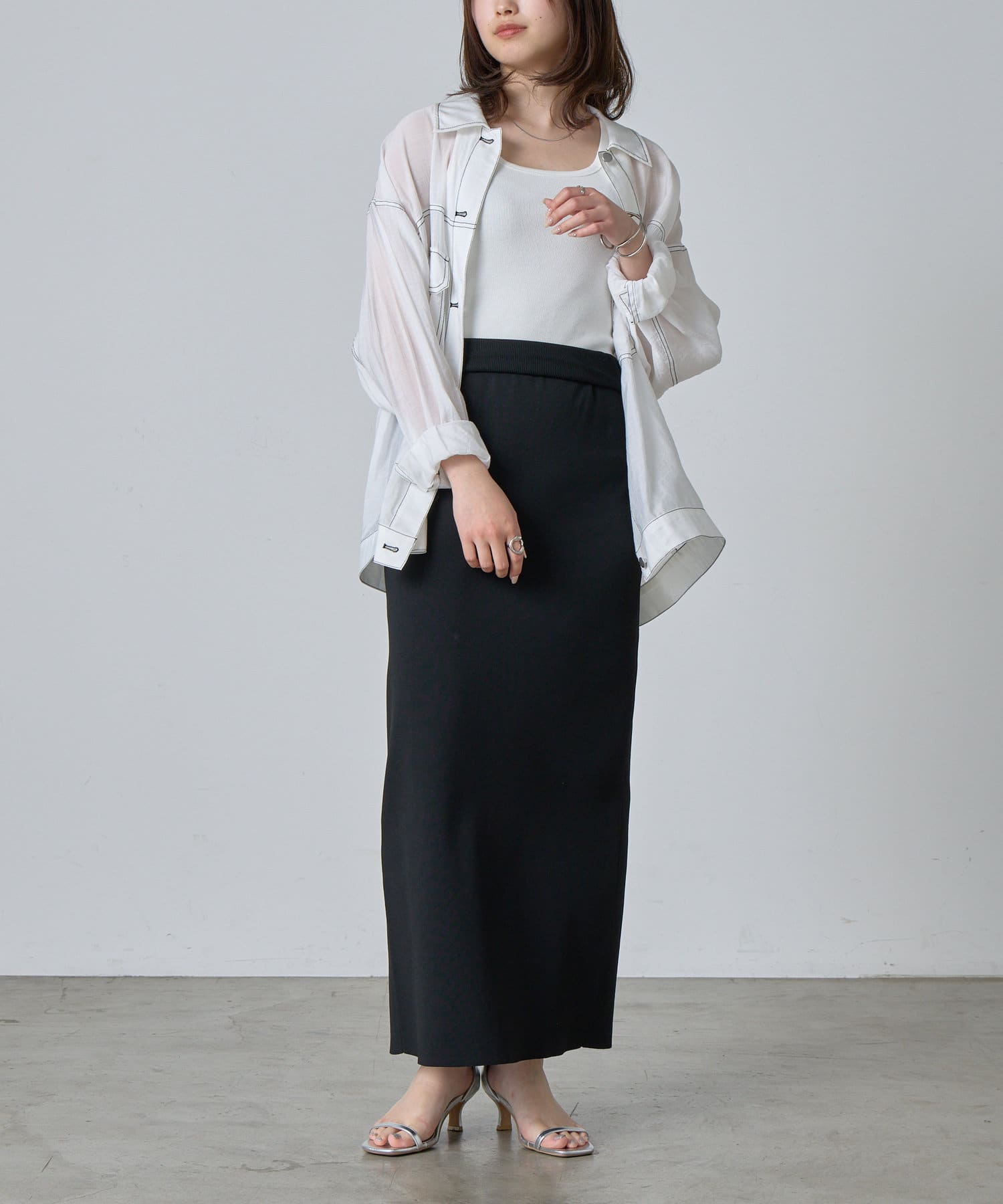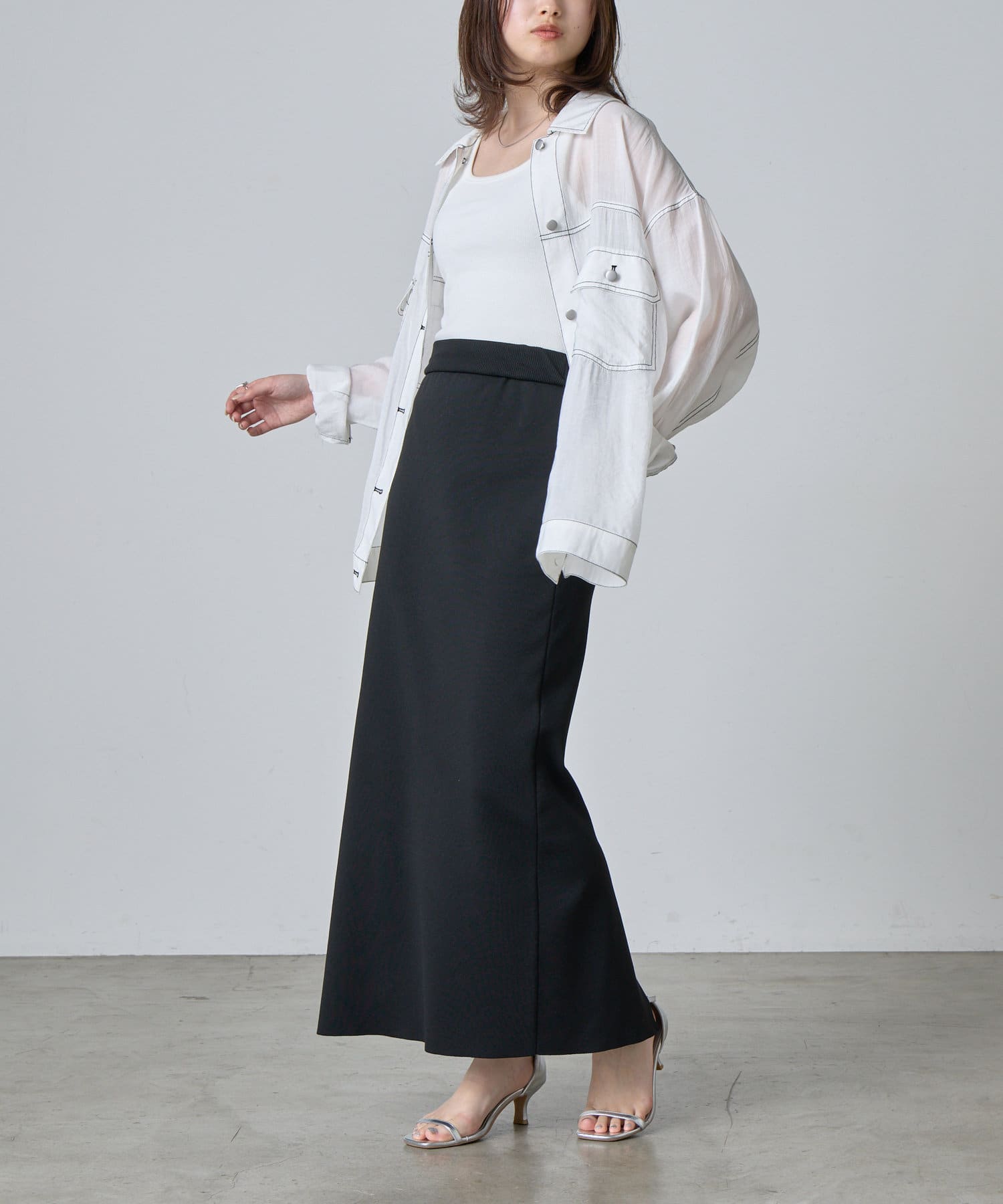 【ポリエステルの軽量素材で編まれたペンシルスカート】