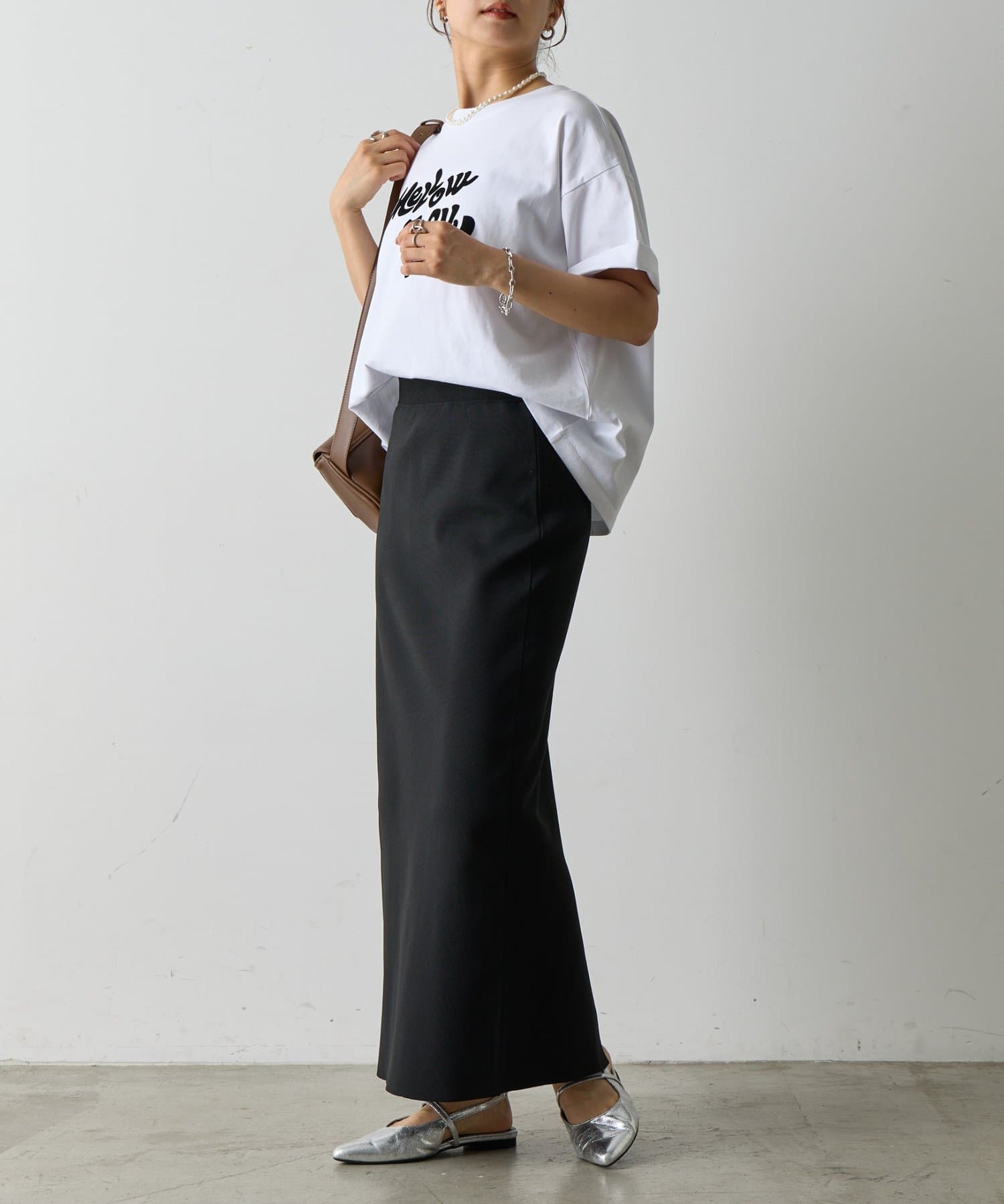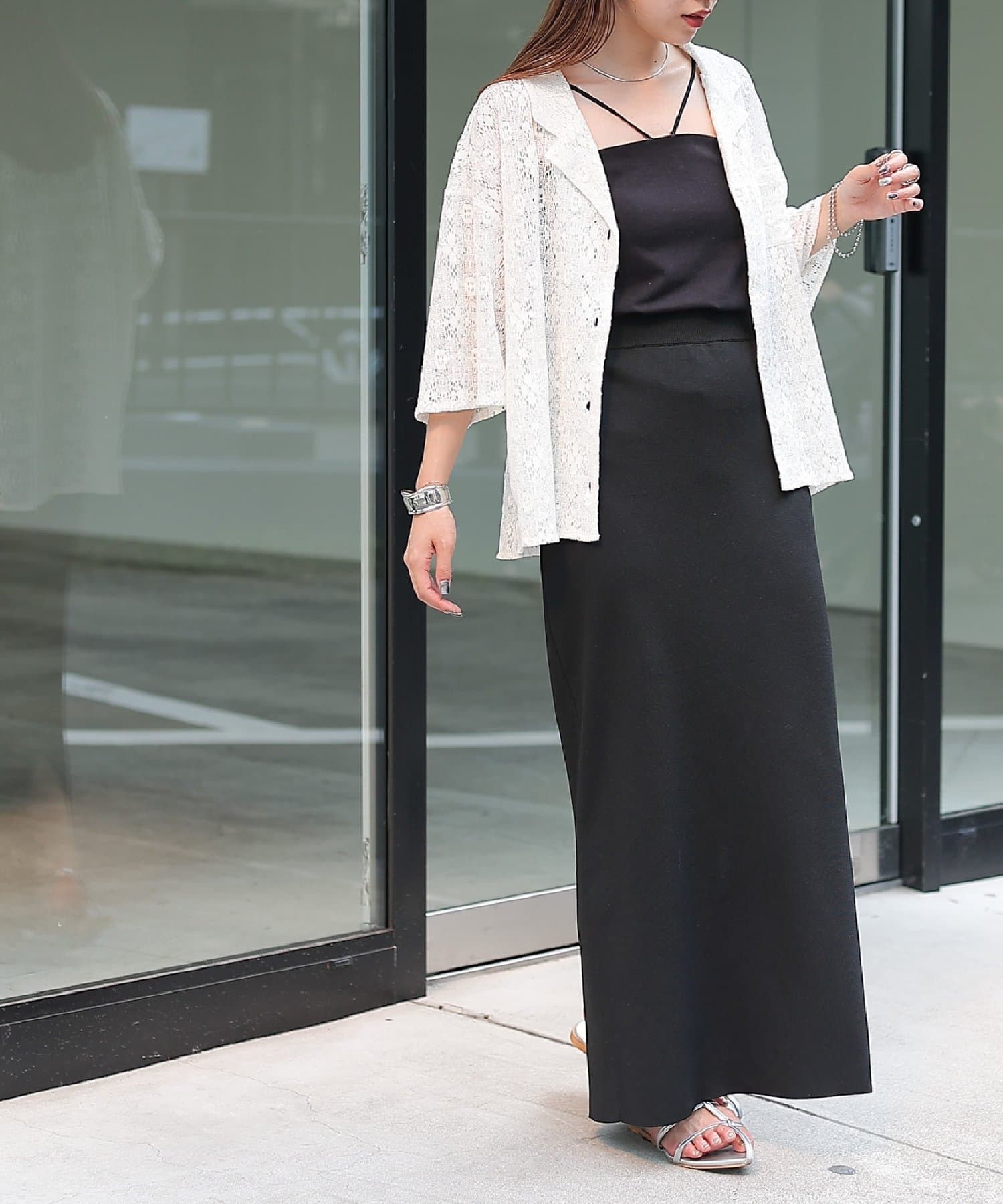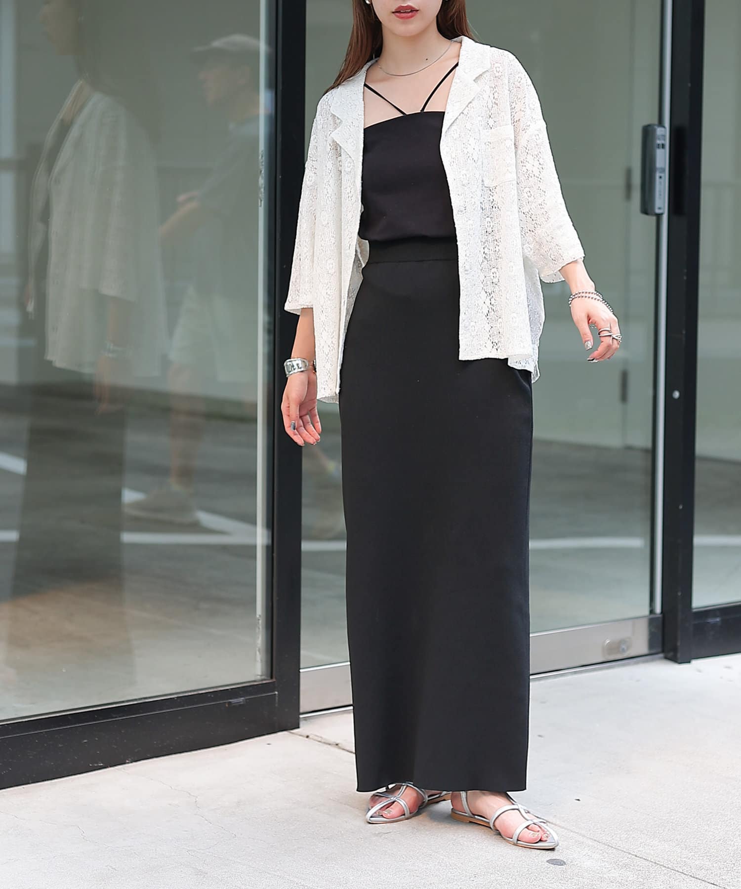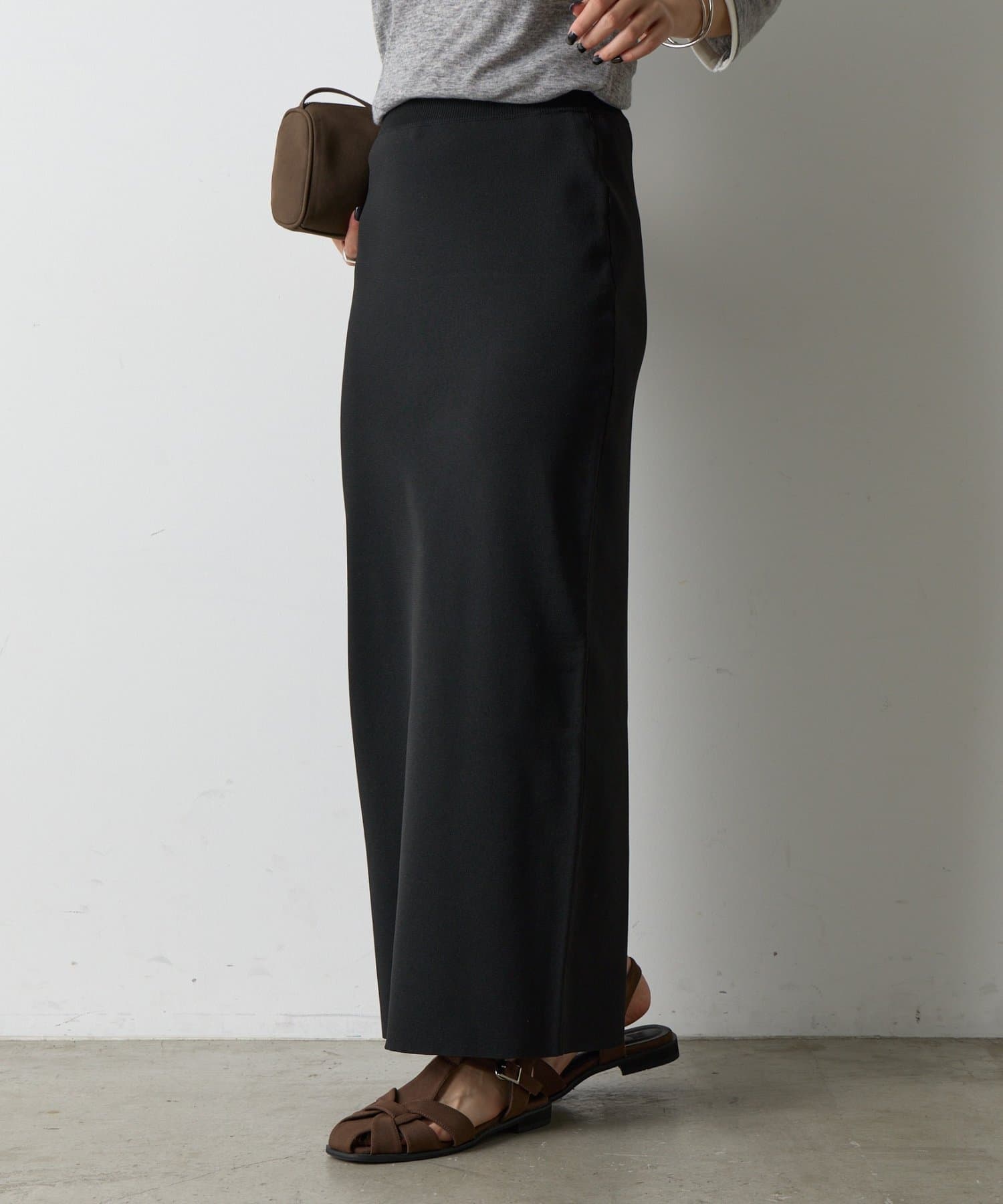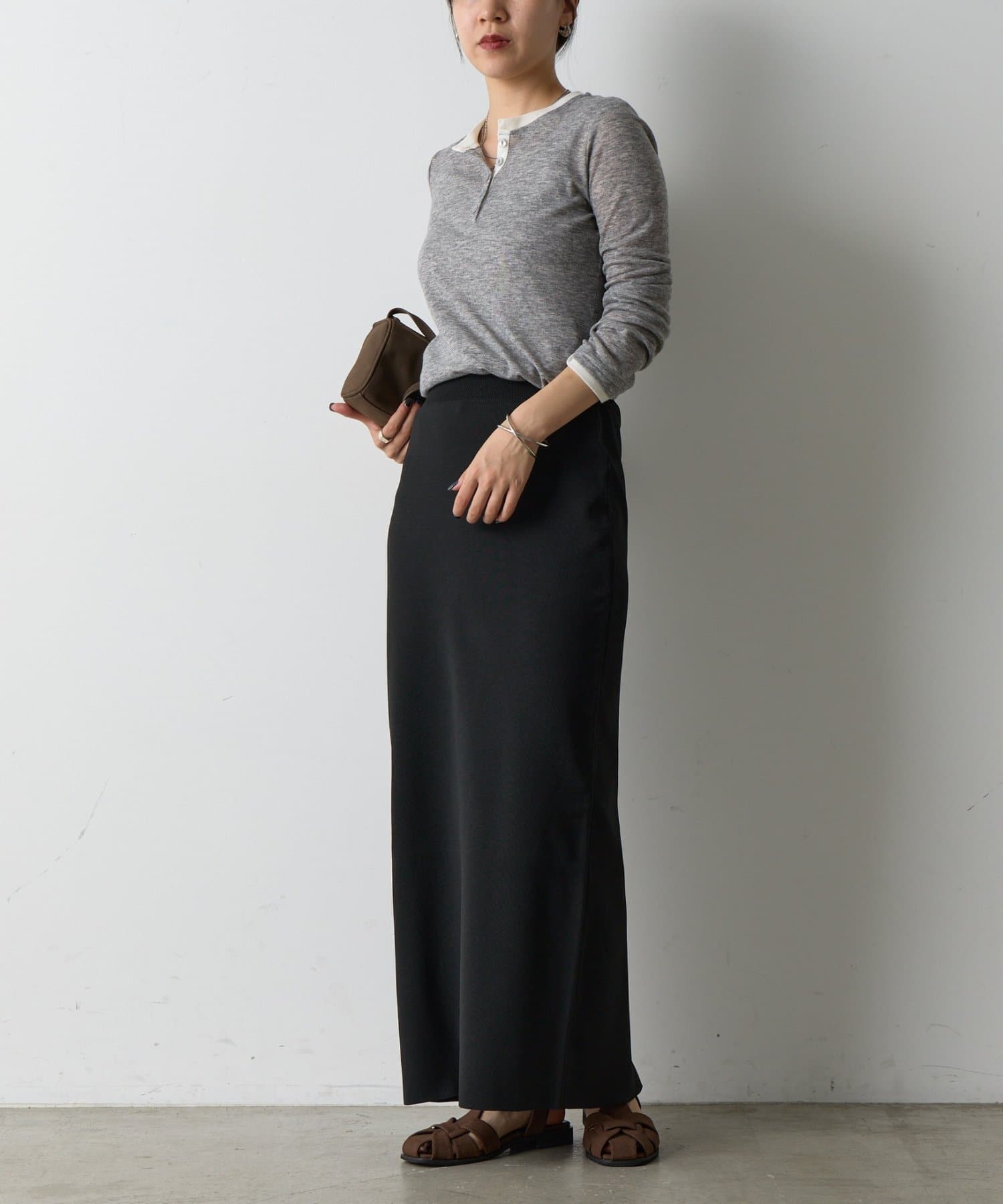 【ポリエステルの軽量素材で編まれたペンシルスカート】