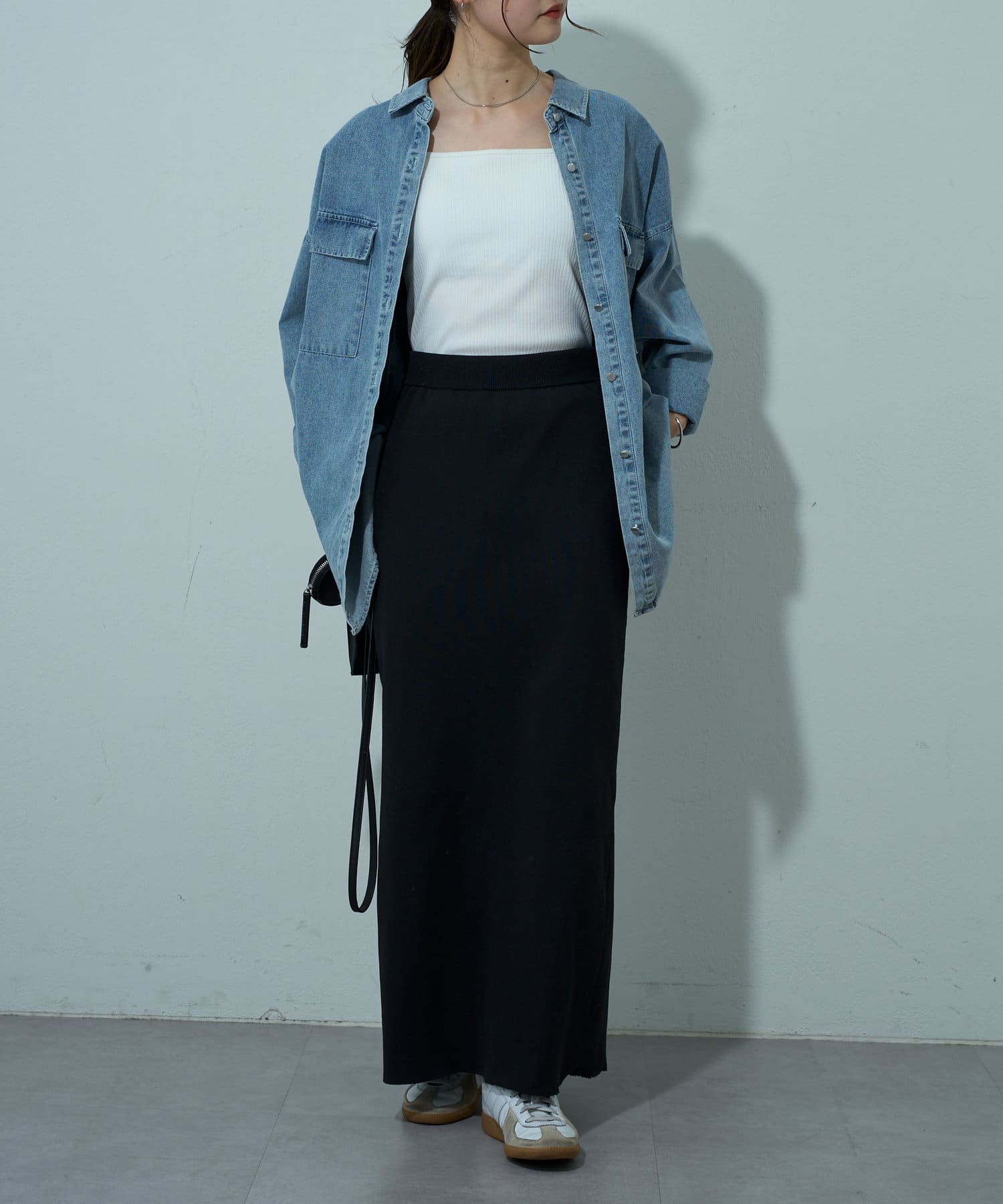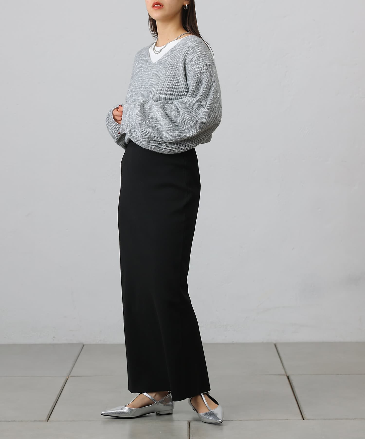 【-3kg見え/低身長サイズあり】エステルヤーンペンシルスカート