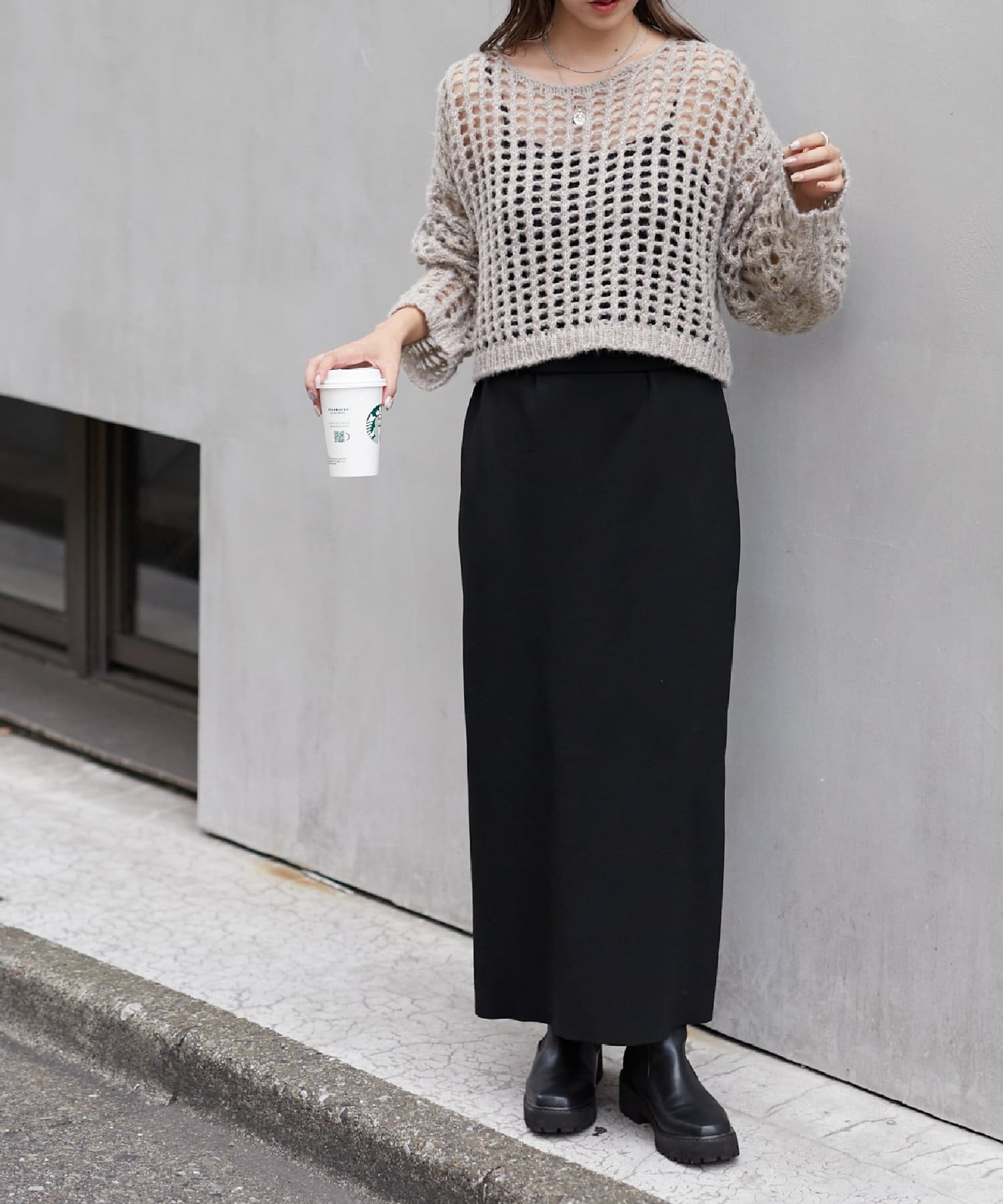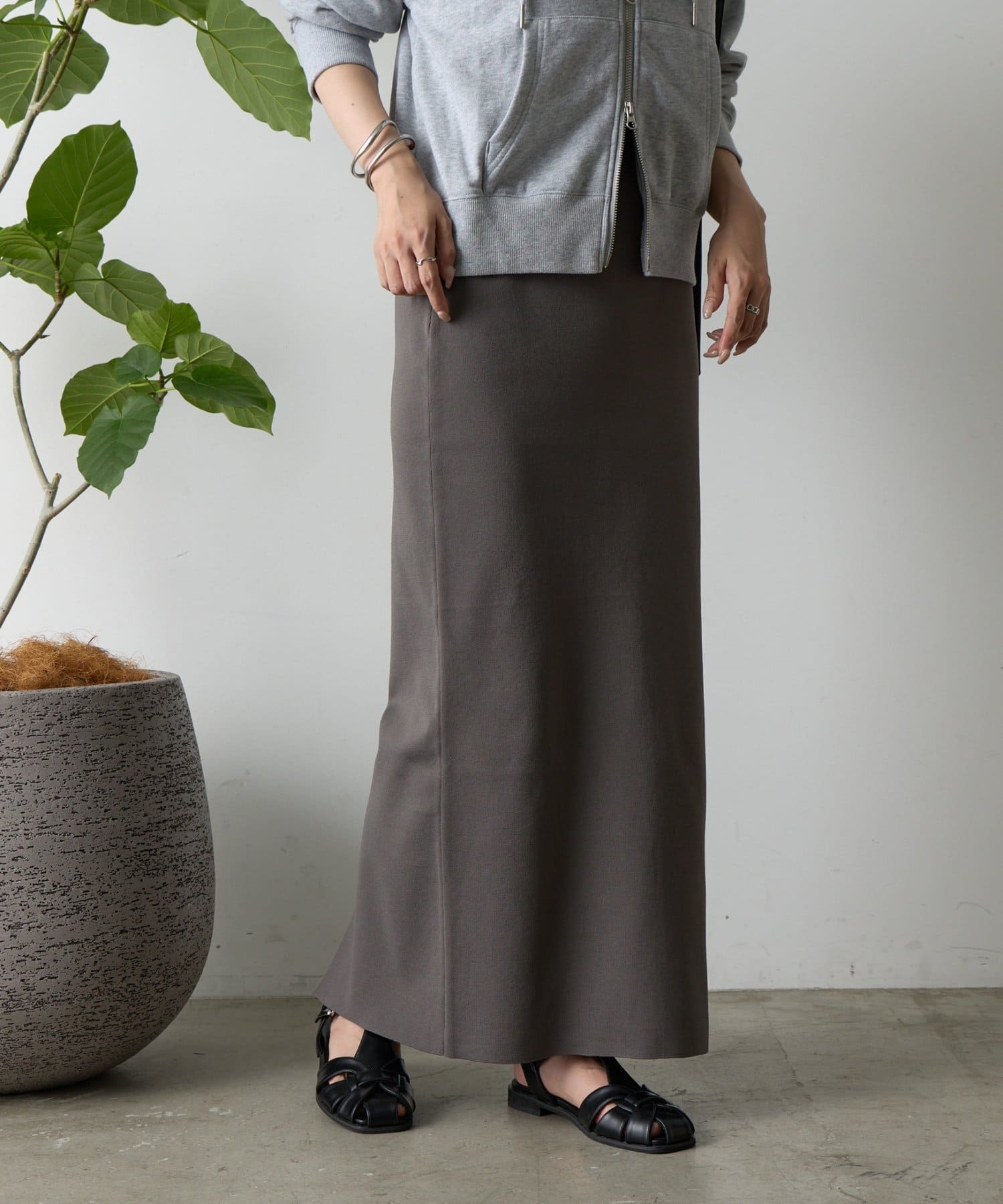シーズンムードを高めてくれるニット素材のペンシルスカート。