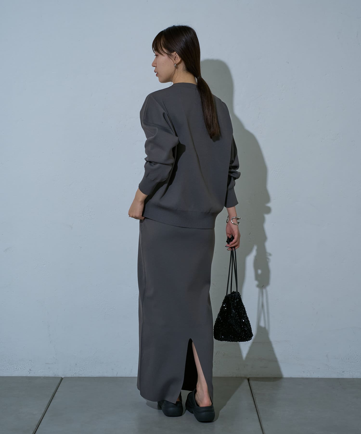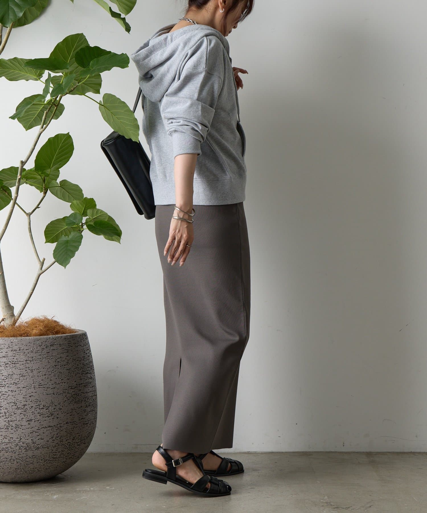 ・伸縮性の高いニットとバックスリットで足さばきも快適