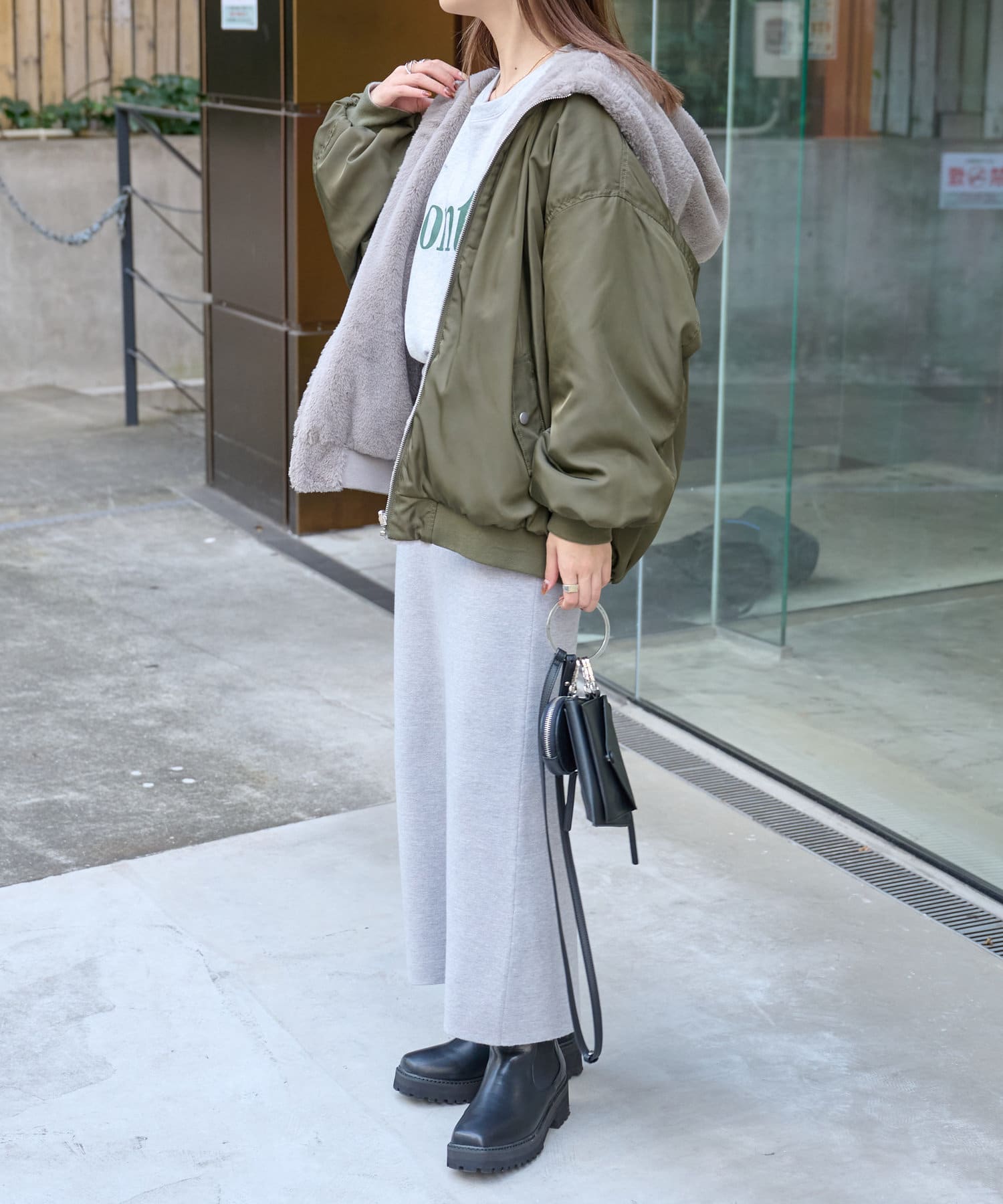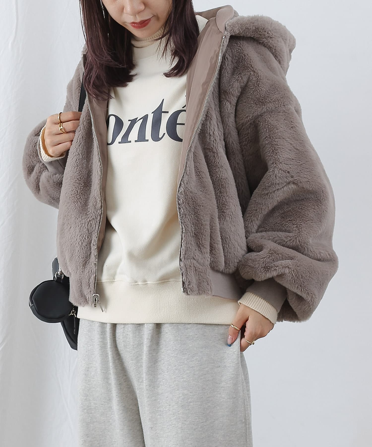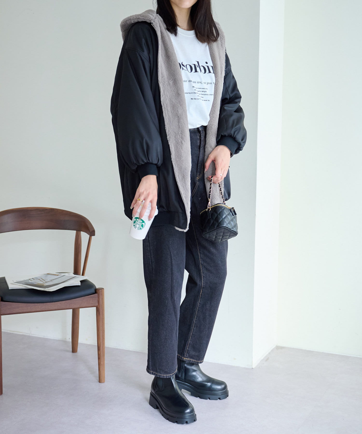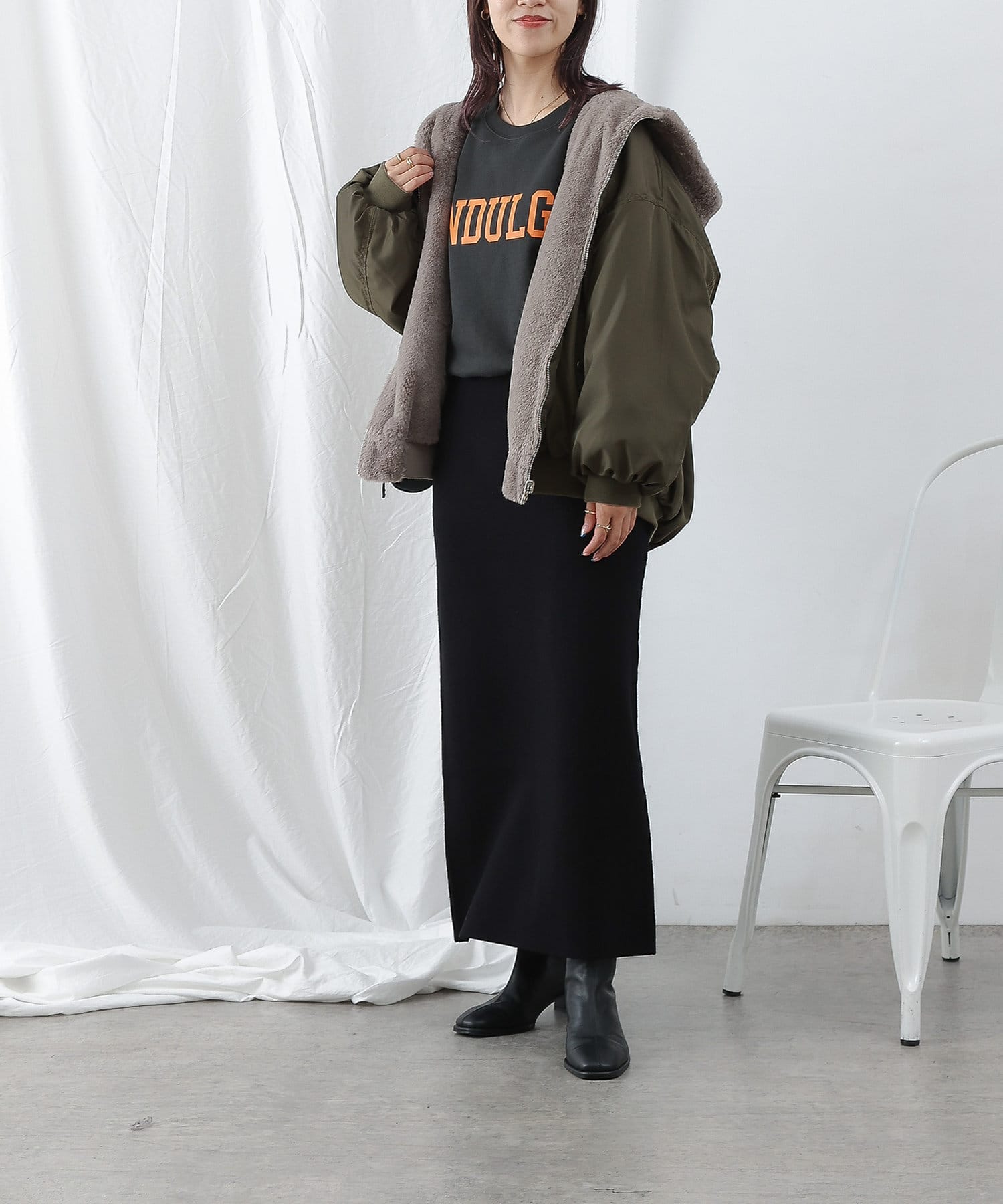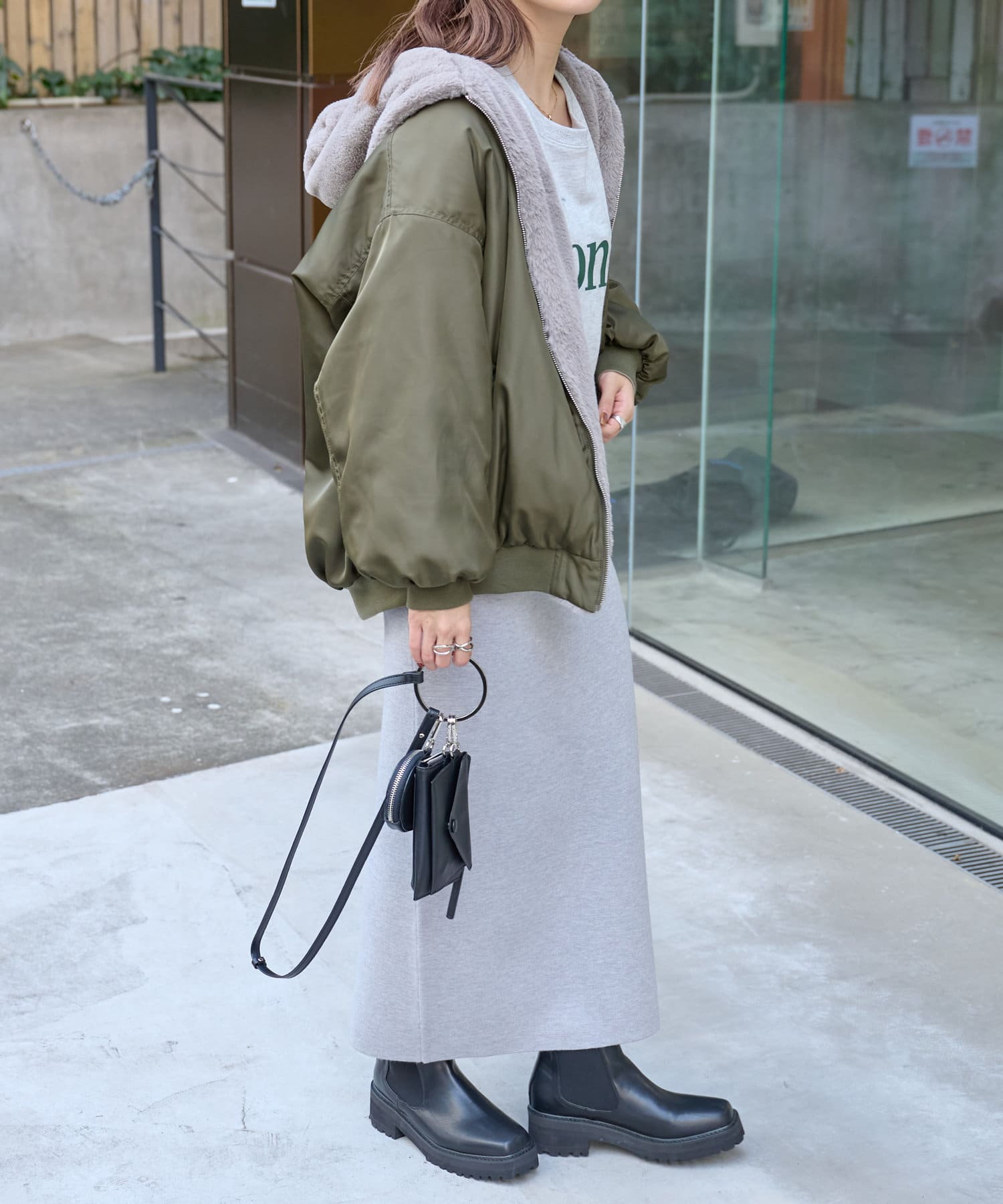もこもこファーの可愛い着こなしと、MA-1風のメンズライクな着こなしができるリバーシブル仕様。