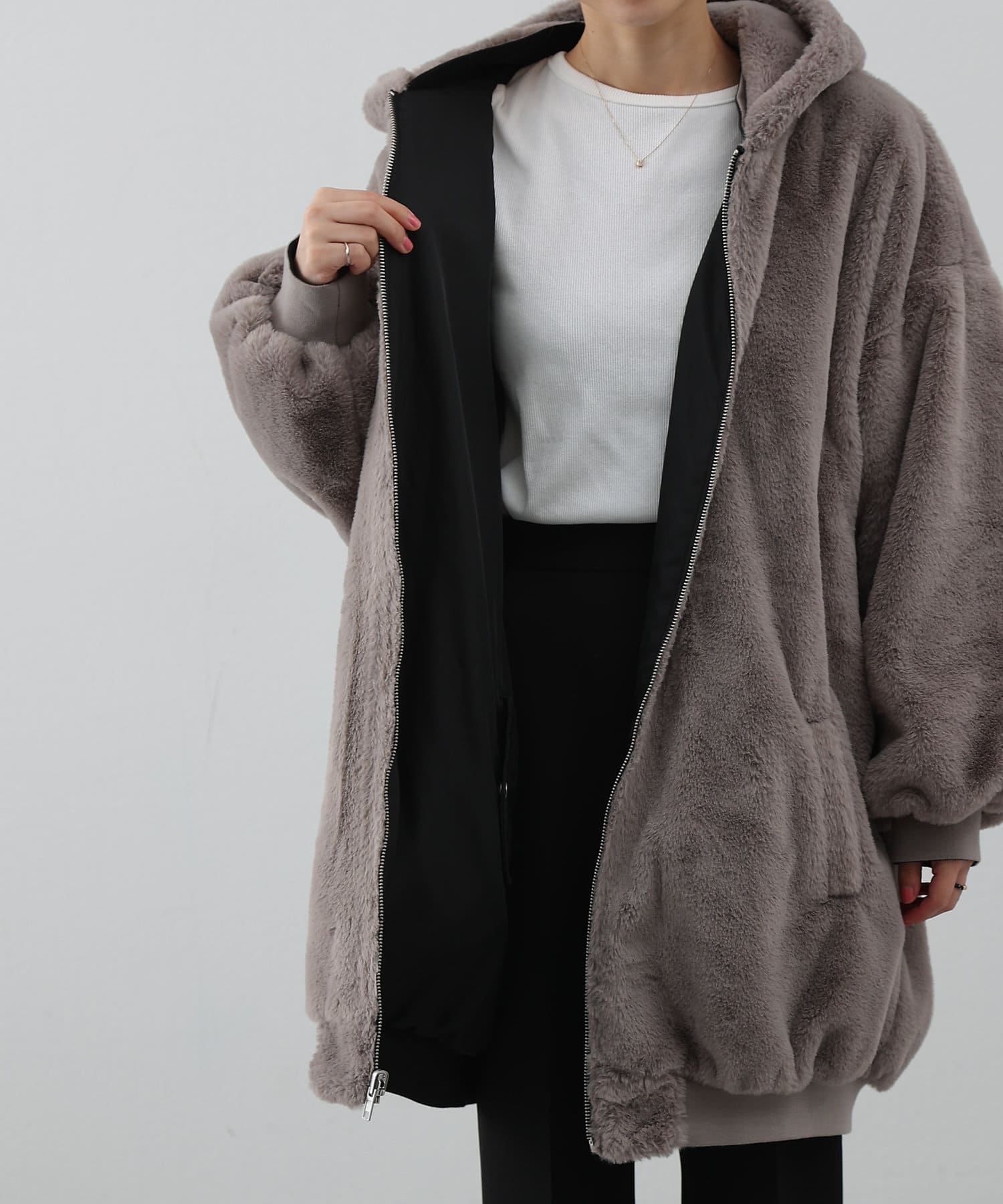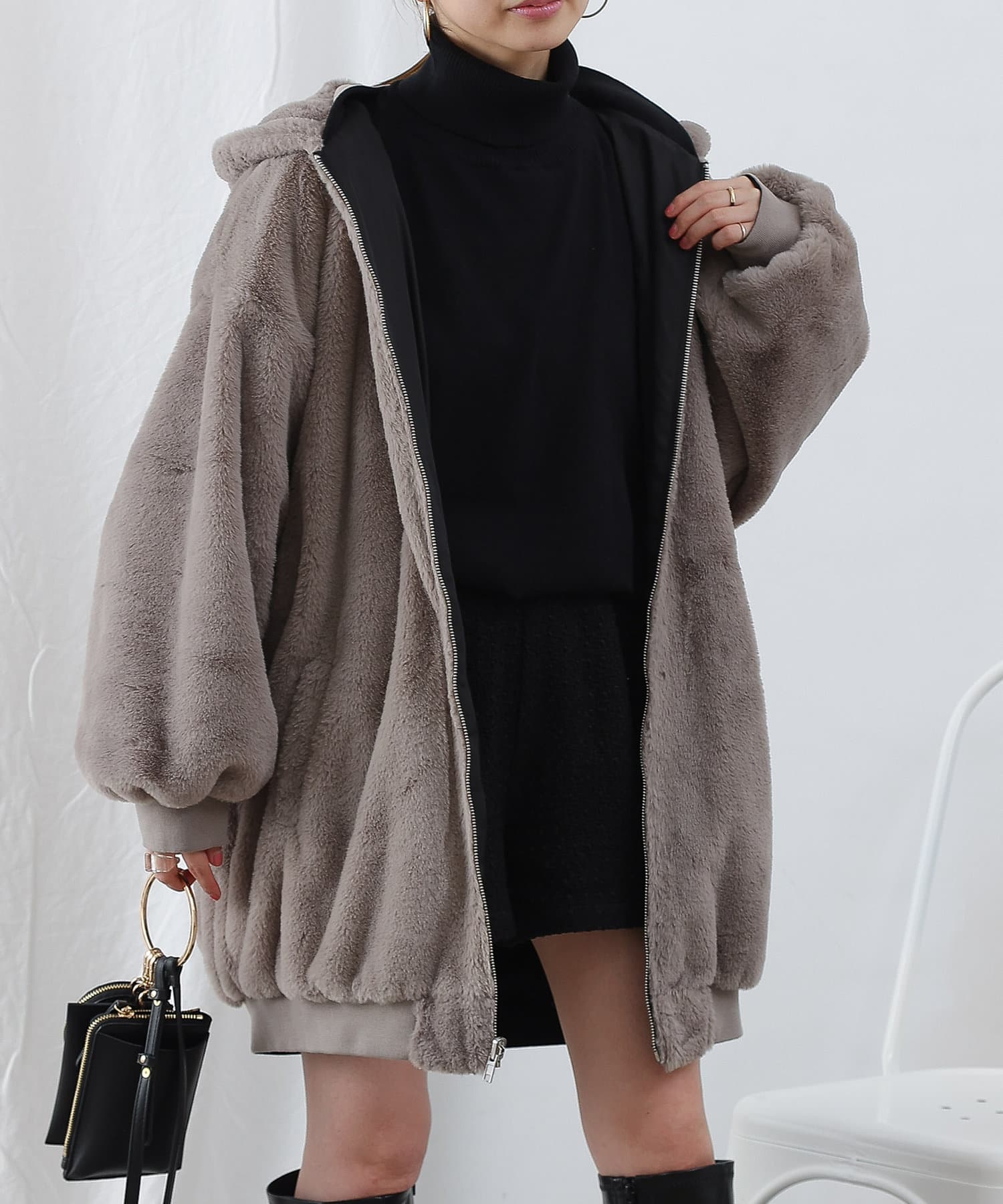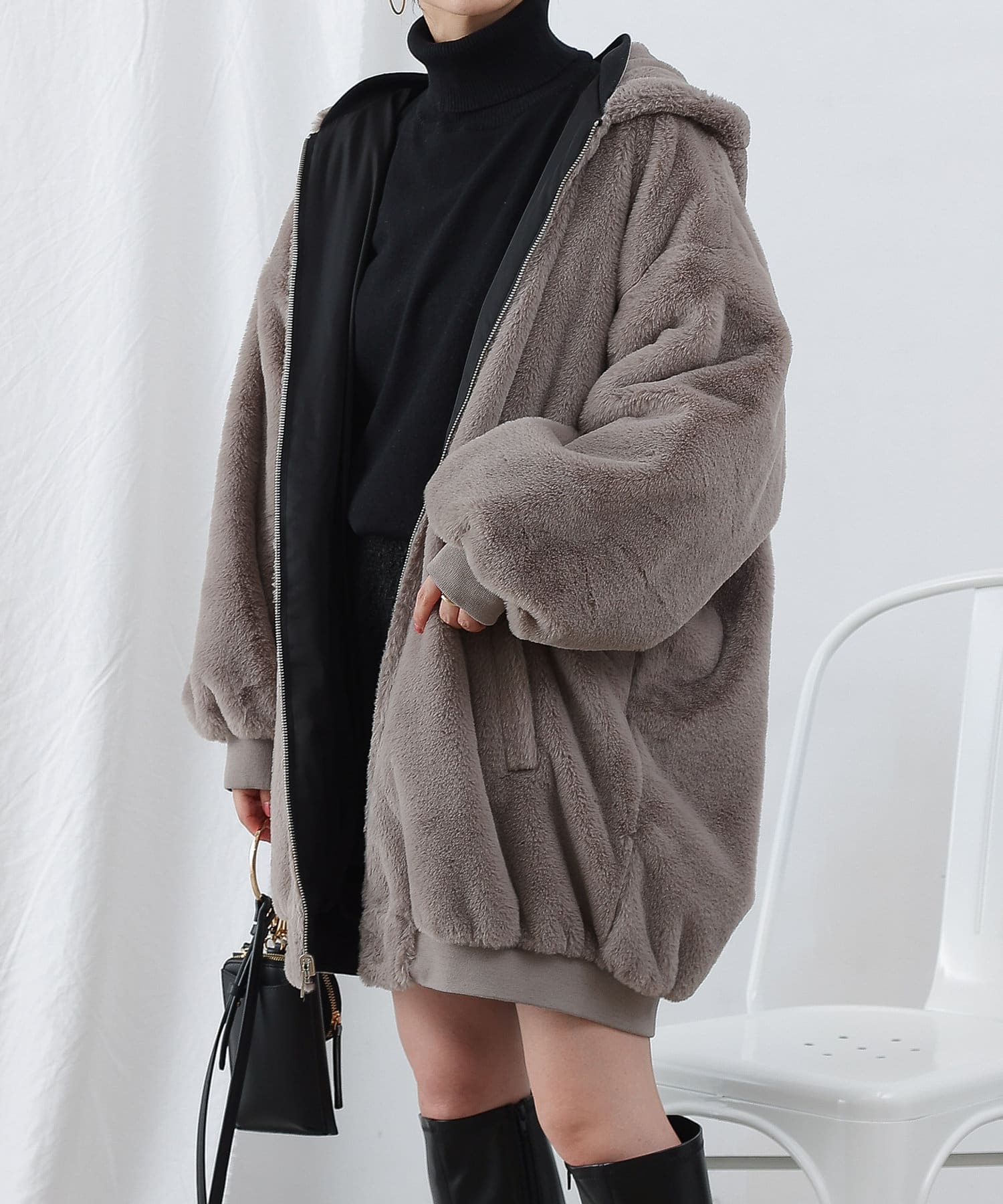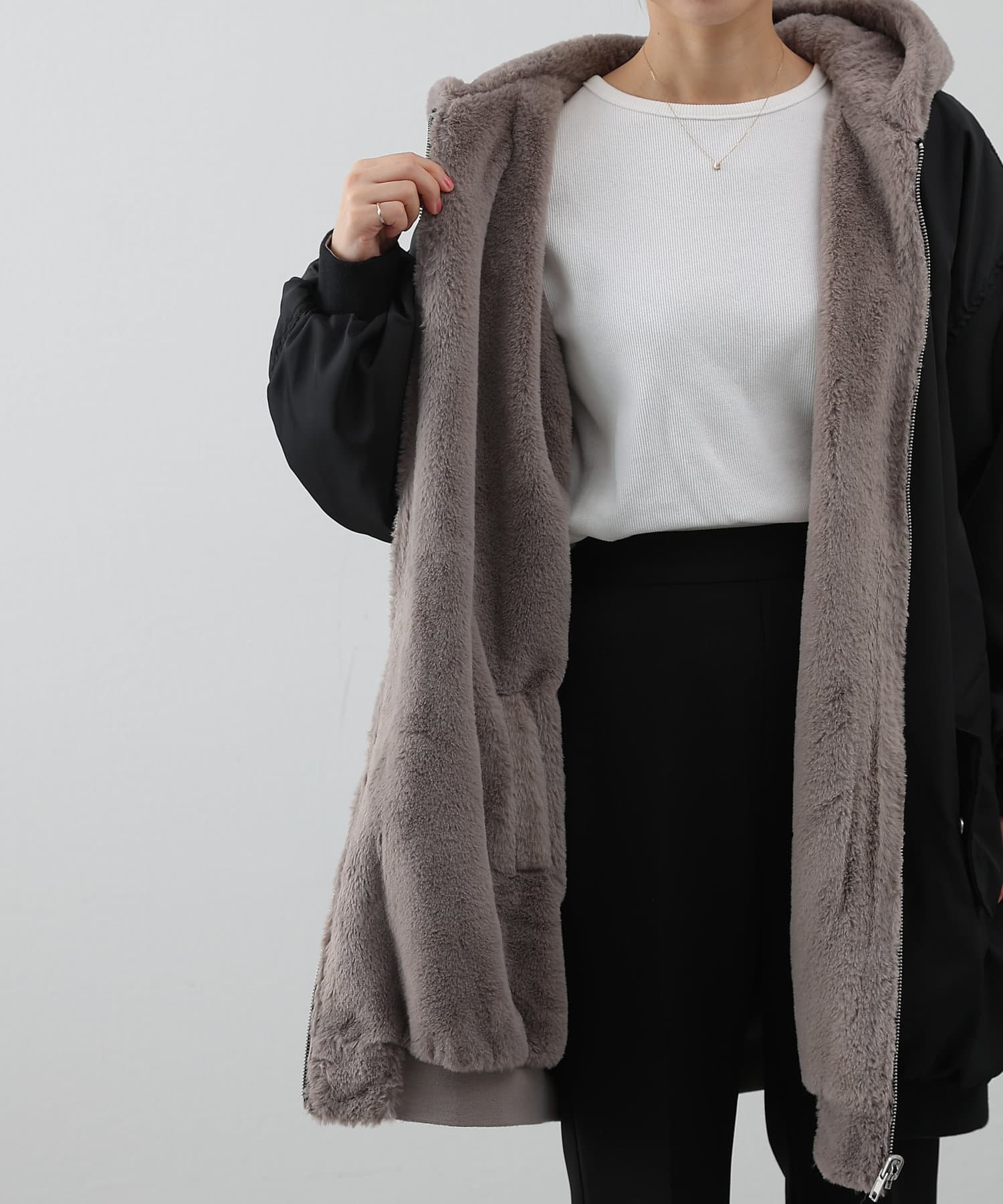 ・ファーを裏面にすれば、包まれるような温かさの防寒アウターに