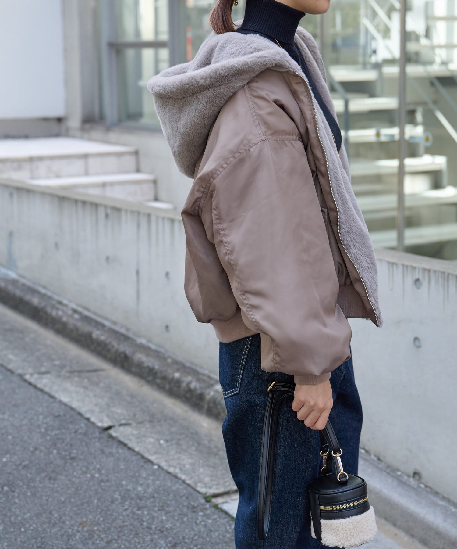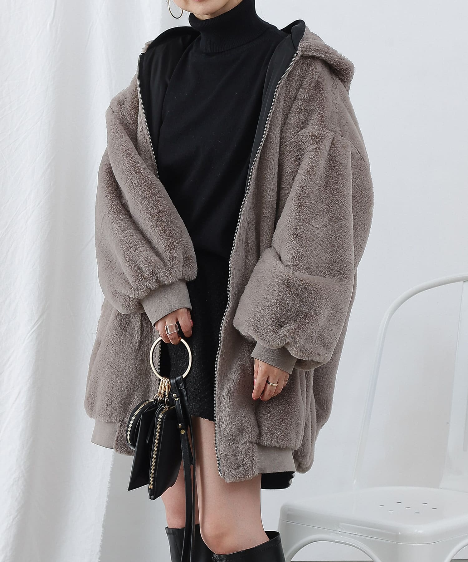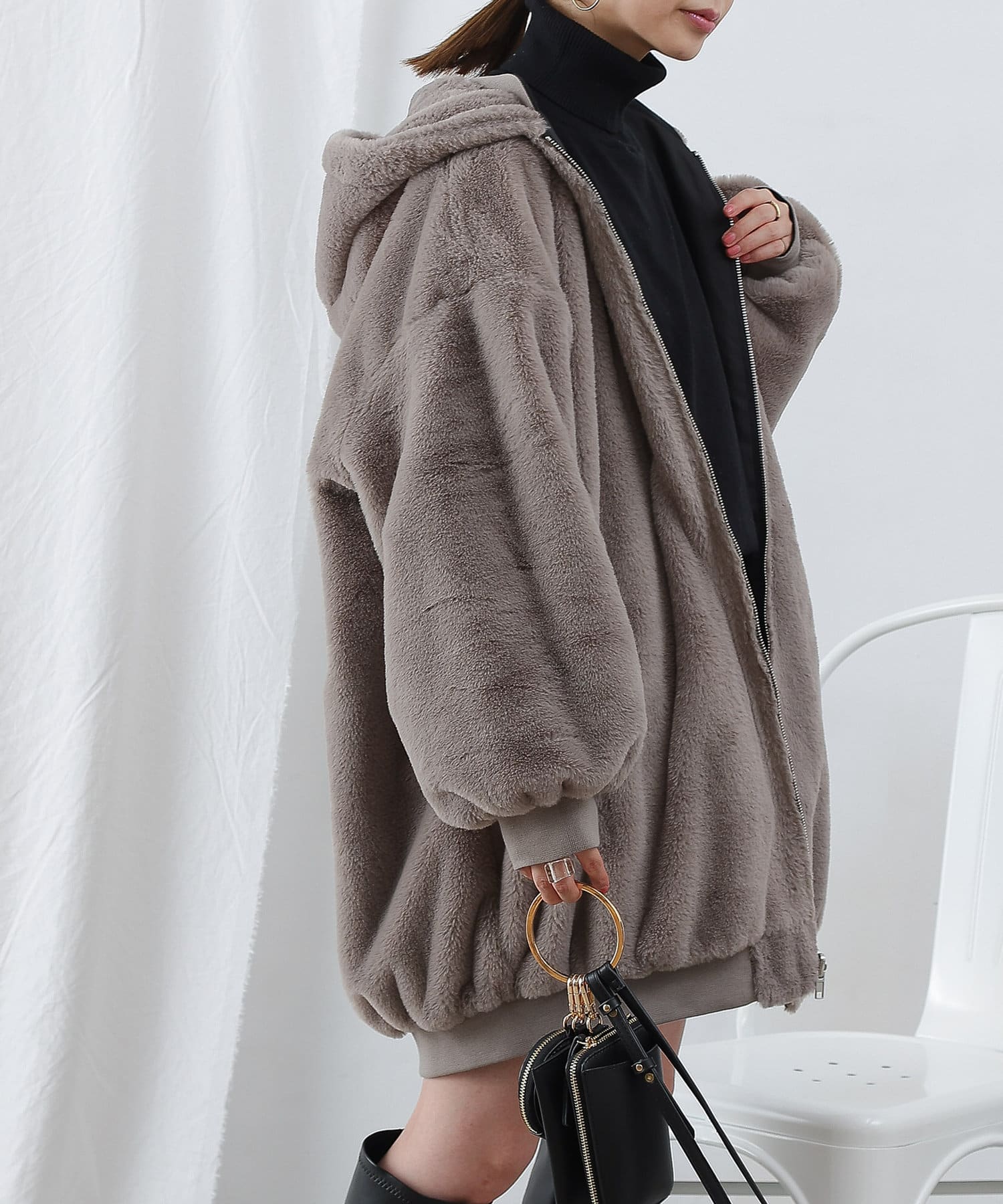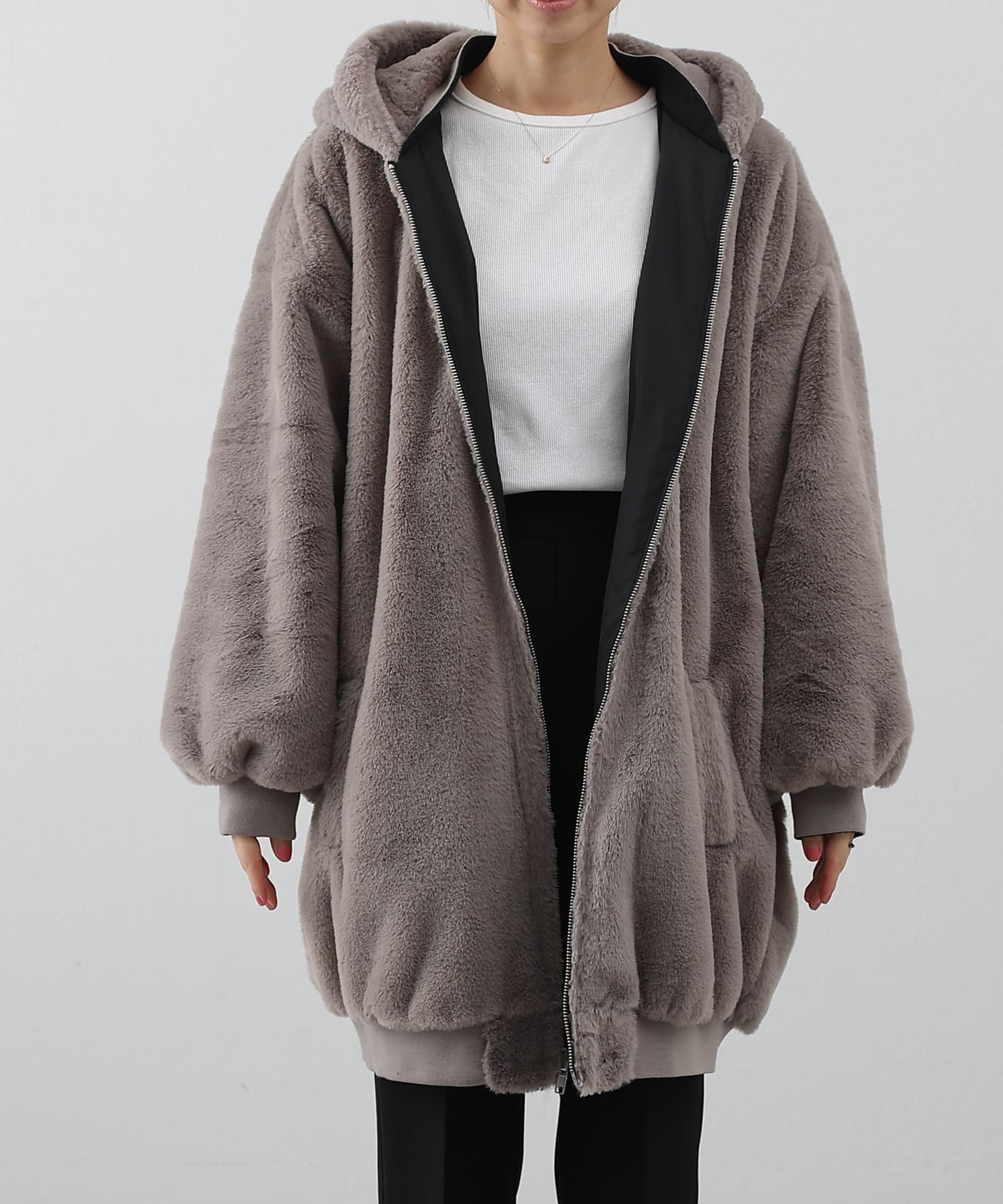 ・ファーを裏面にすれば、包まれるような温かさの防寒アウターに