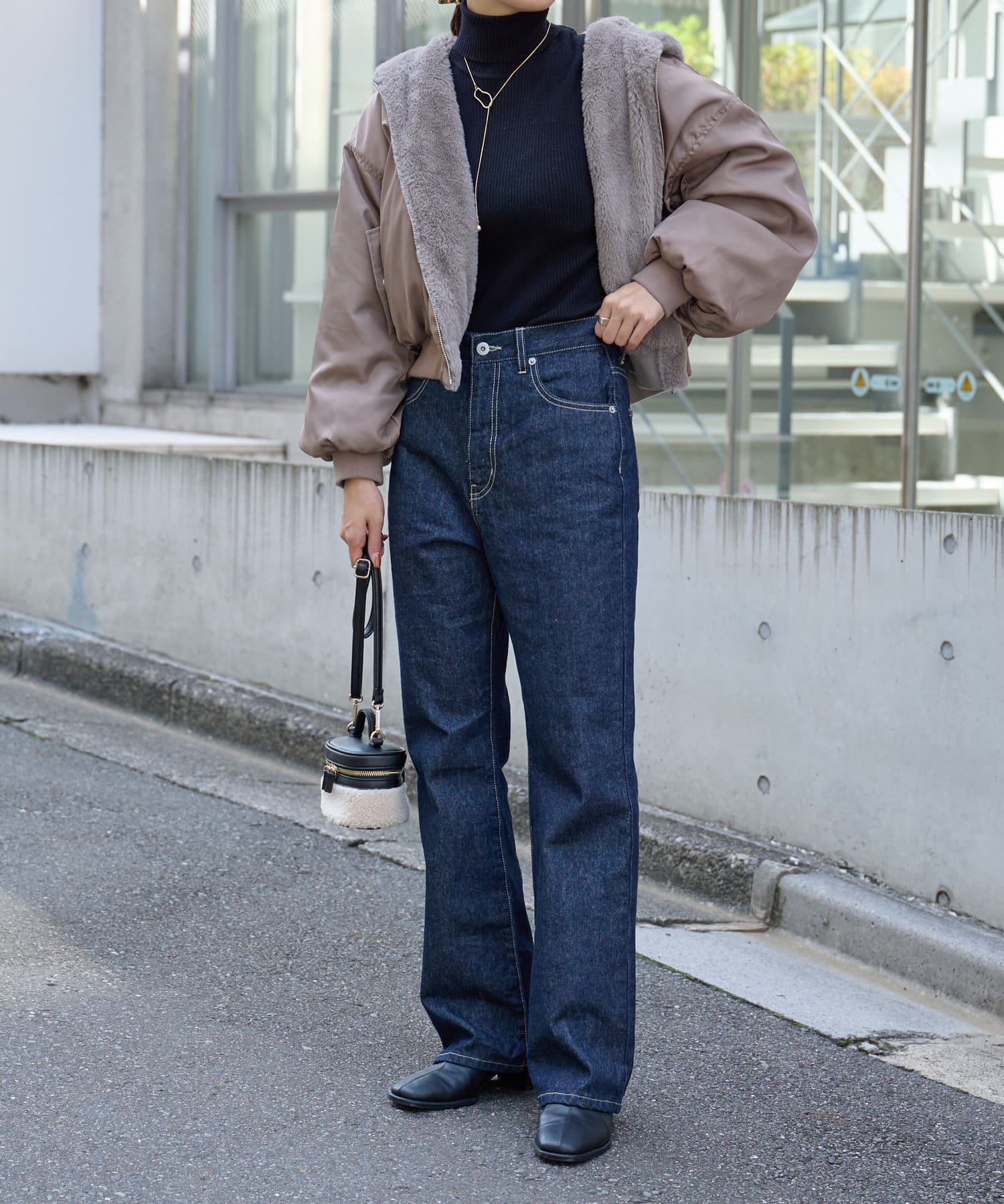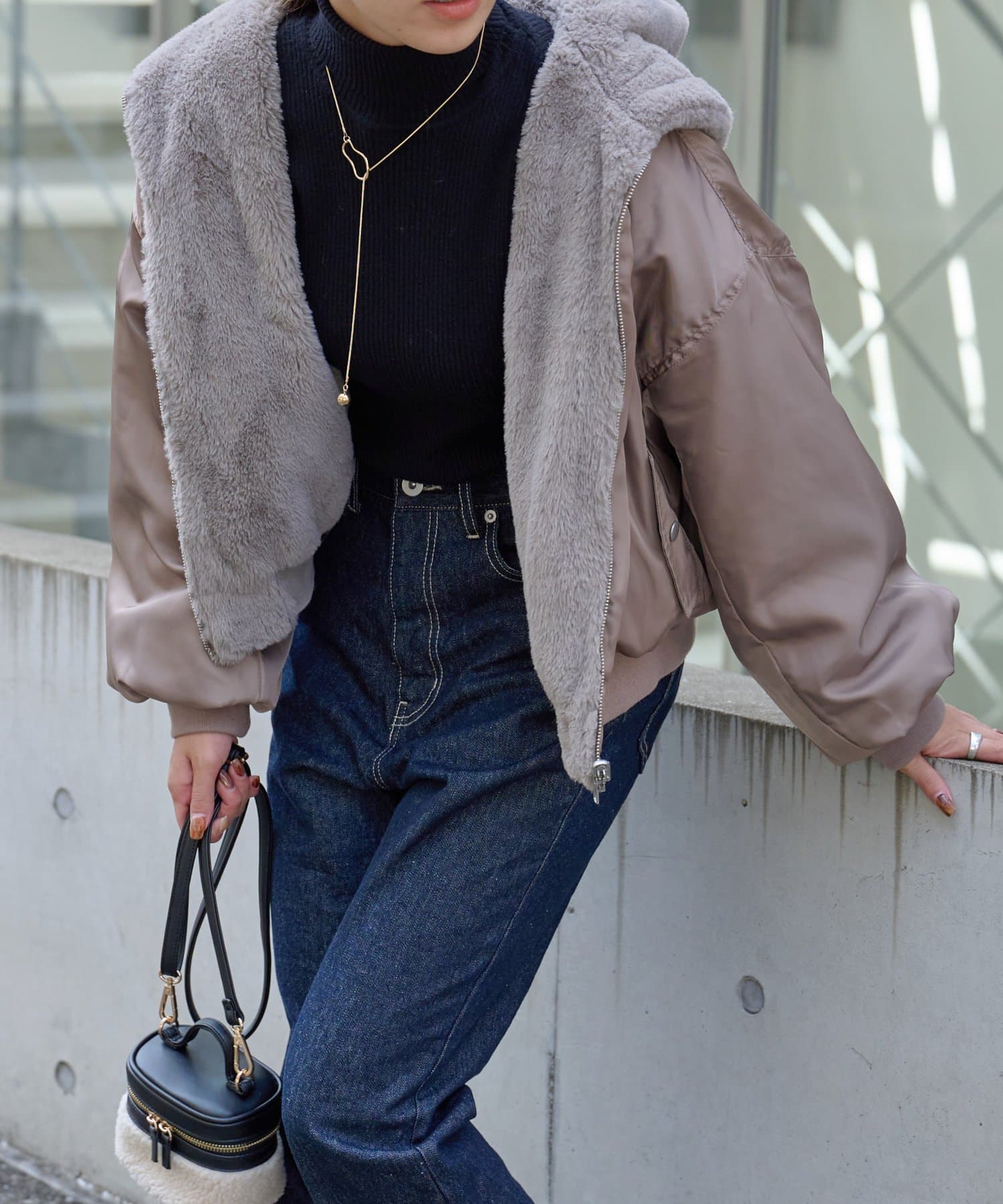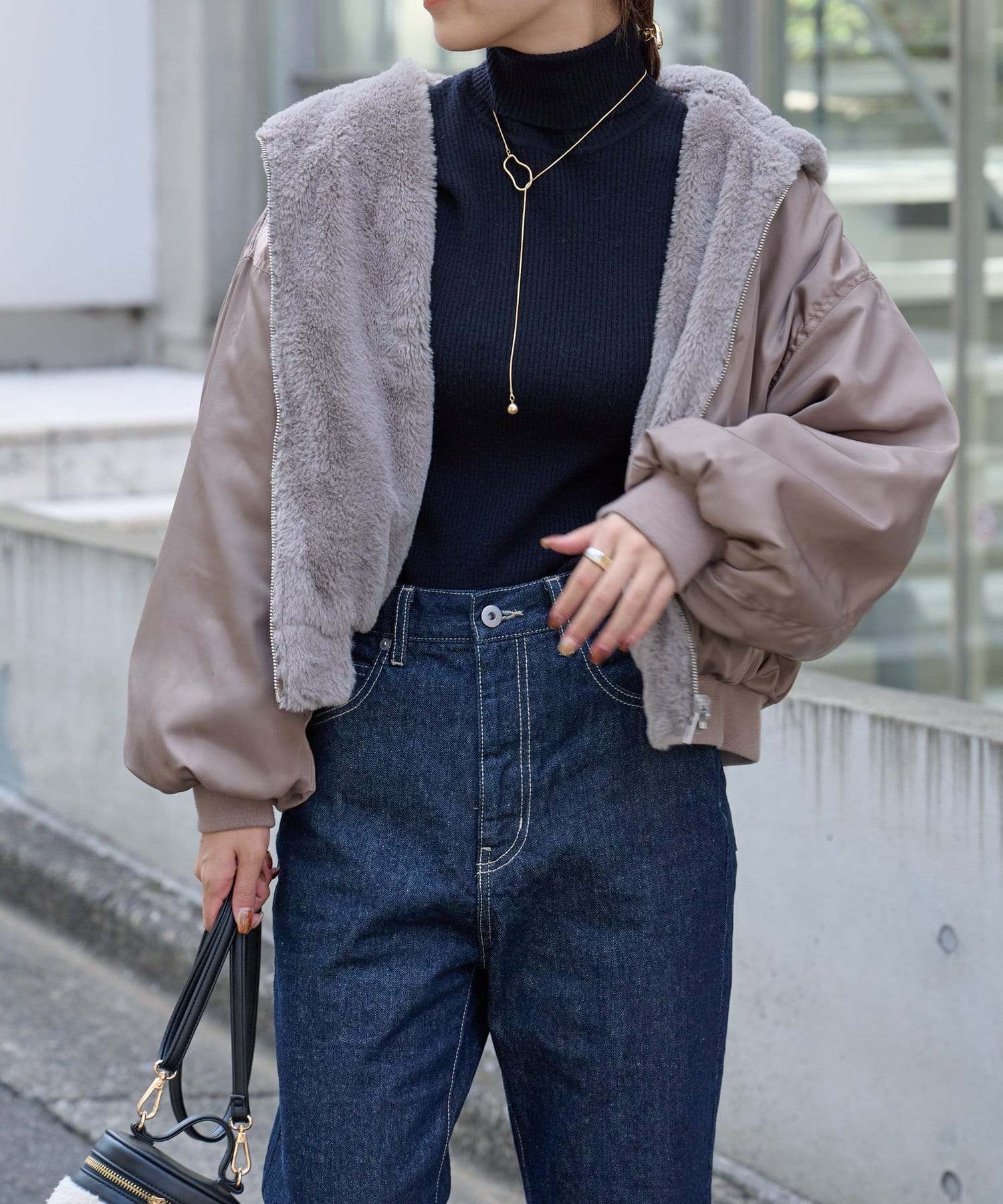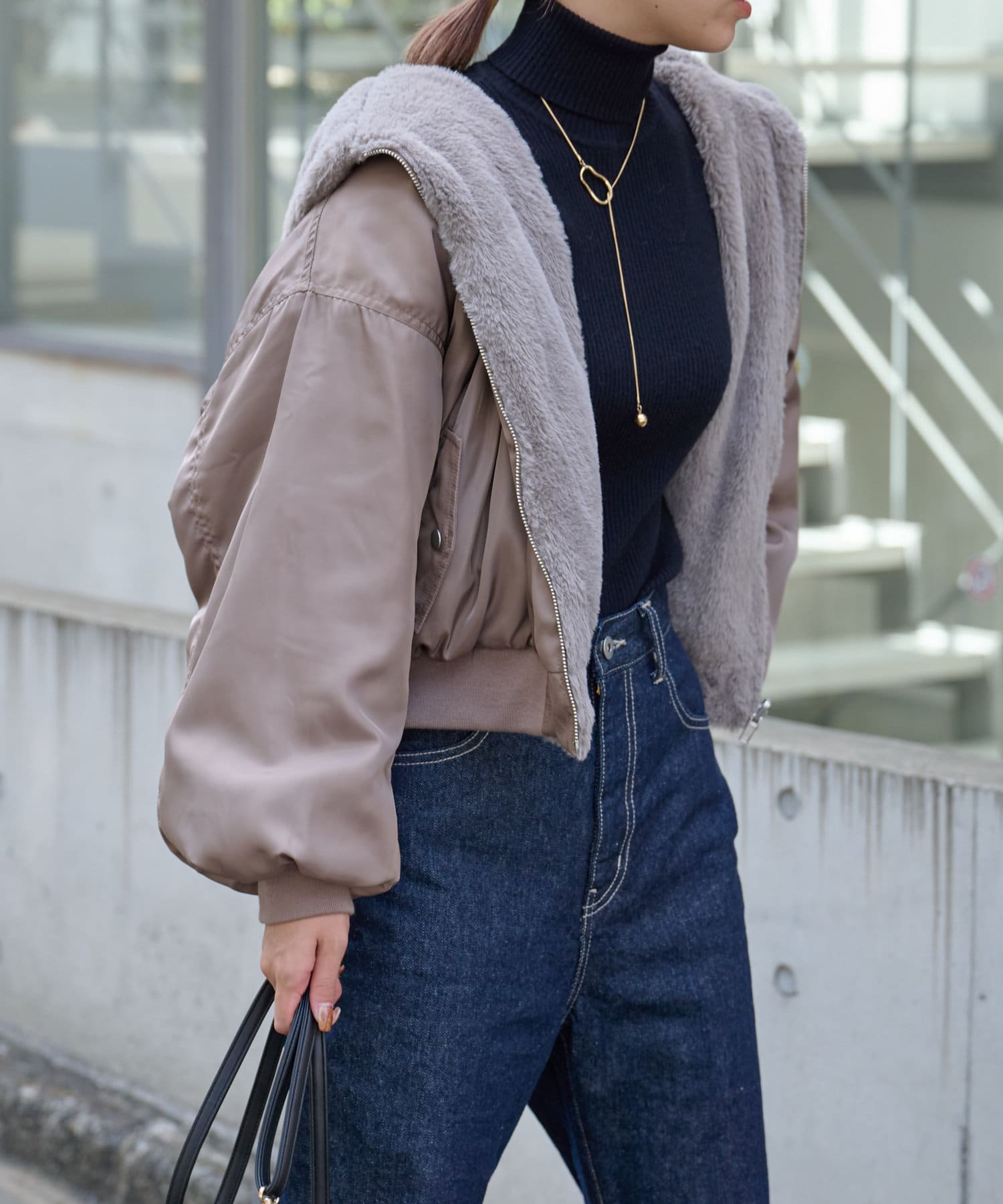 ・ファーを裏面にすれば、包まれるような温かさの防寒アウターに