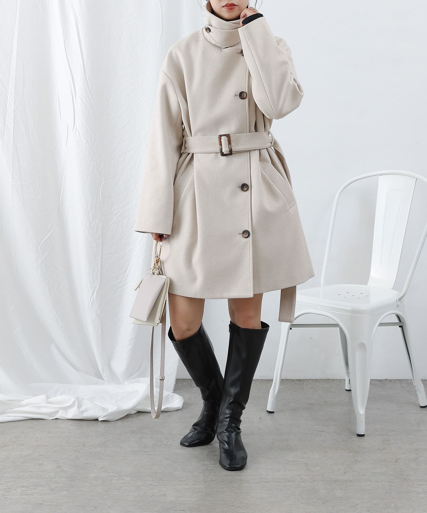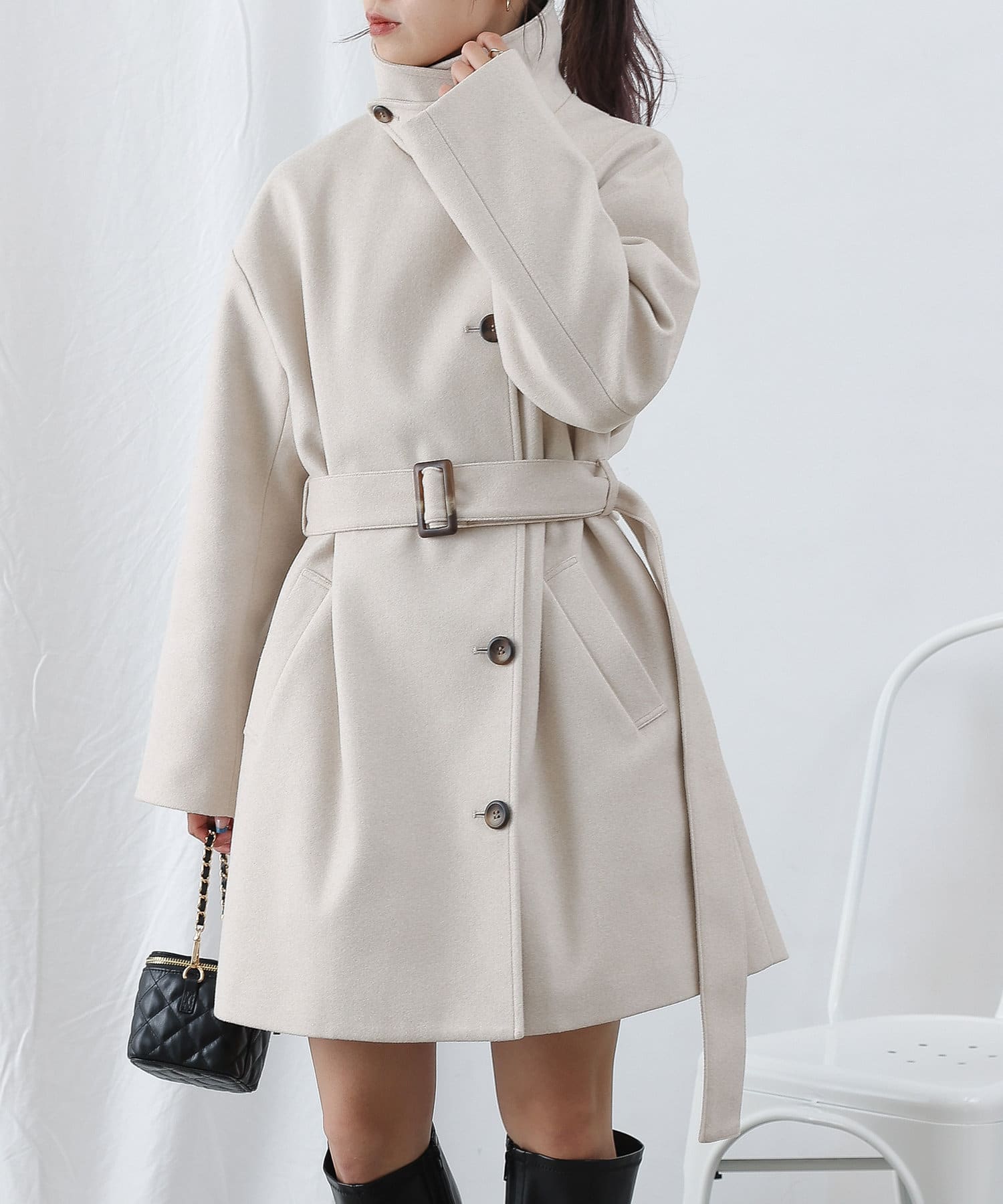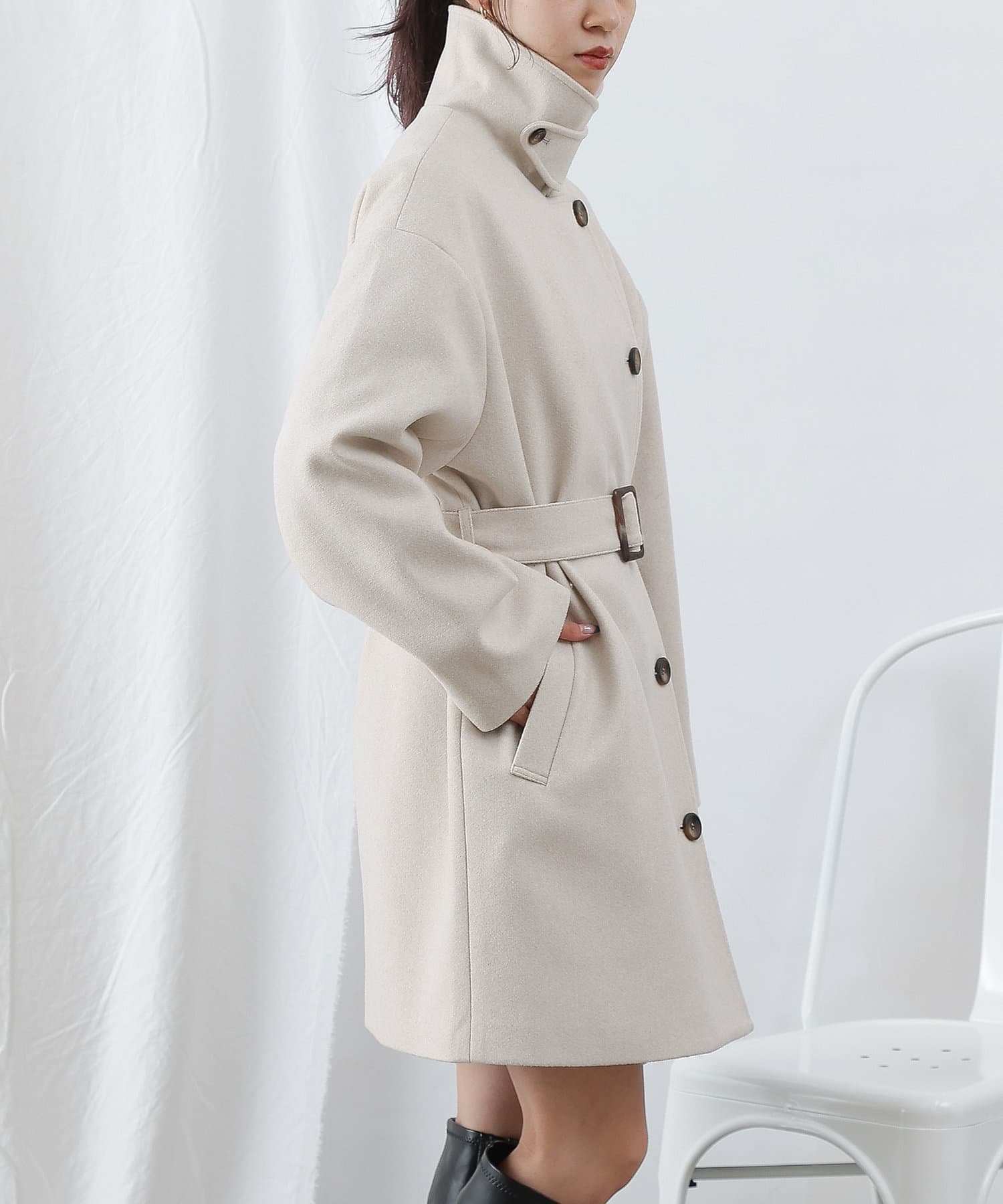 ・CWA1022308A0005 ベルト付きミドル丈スタンドコート