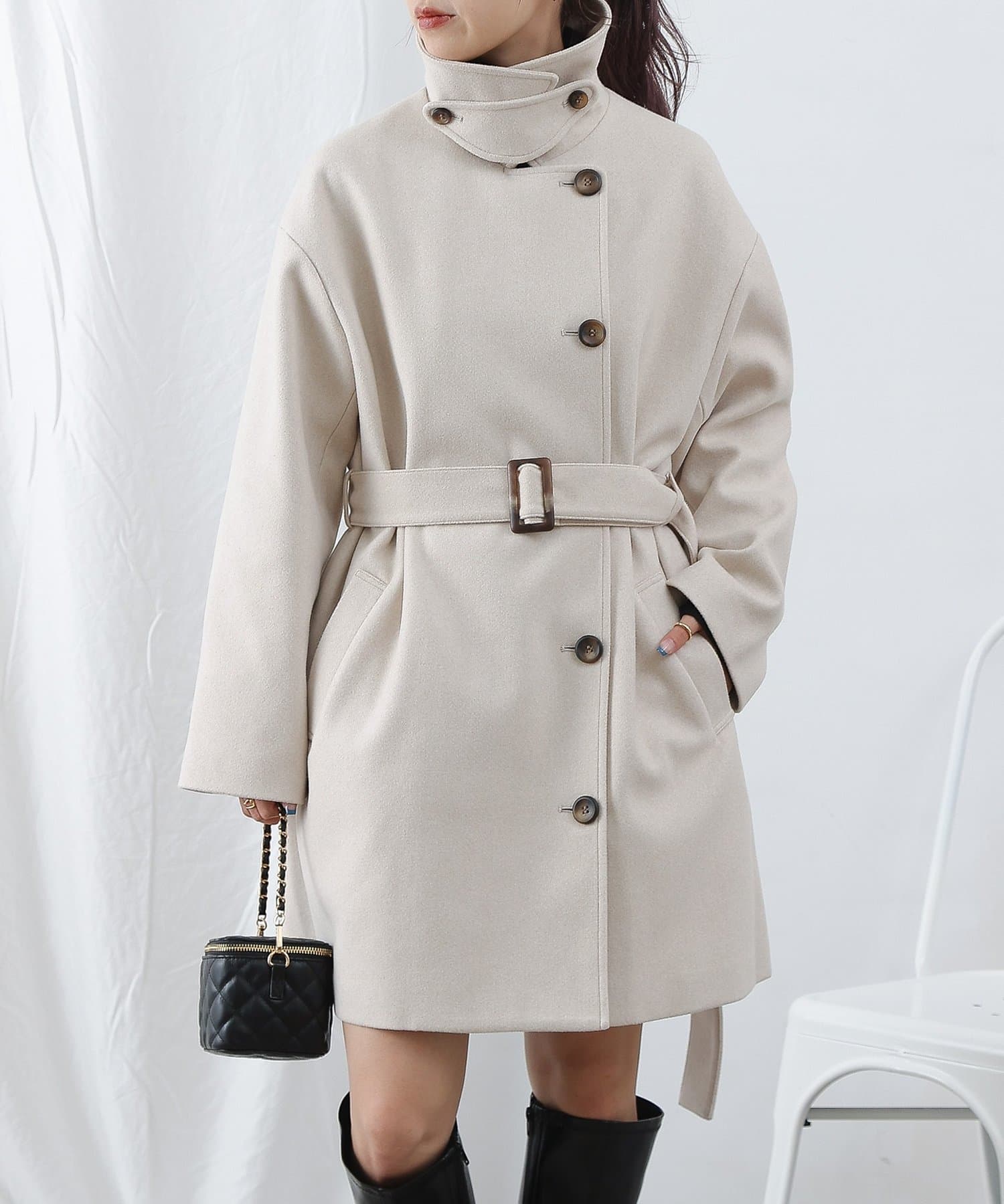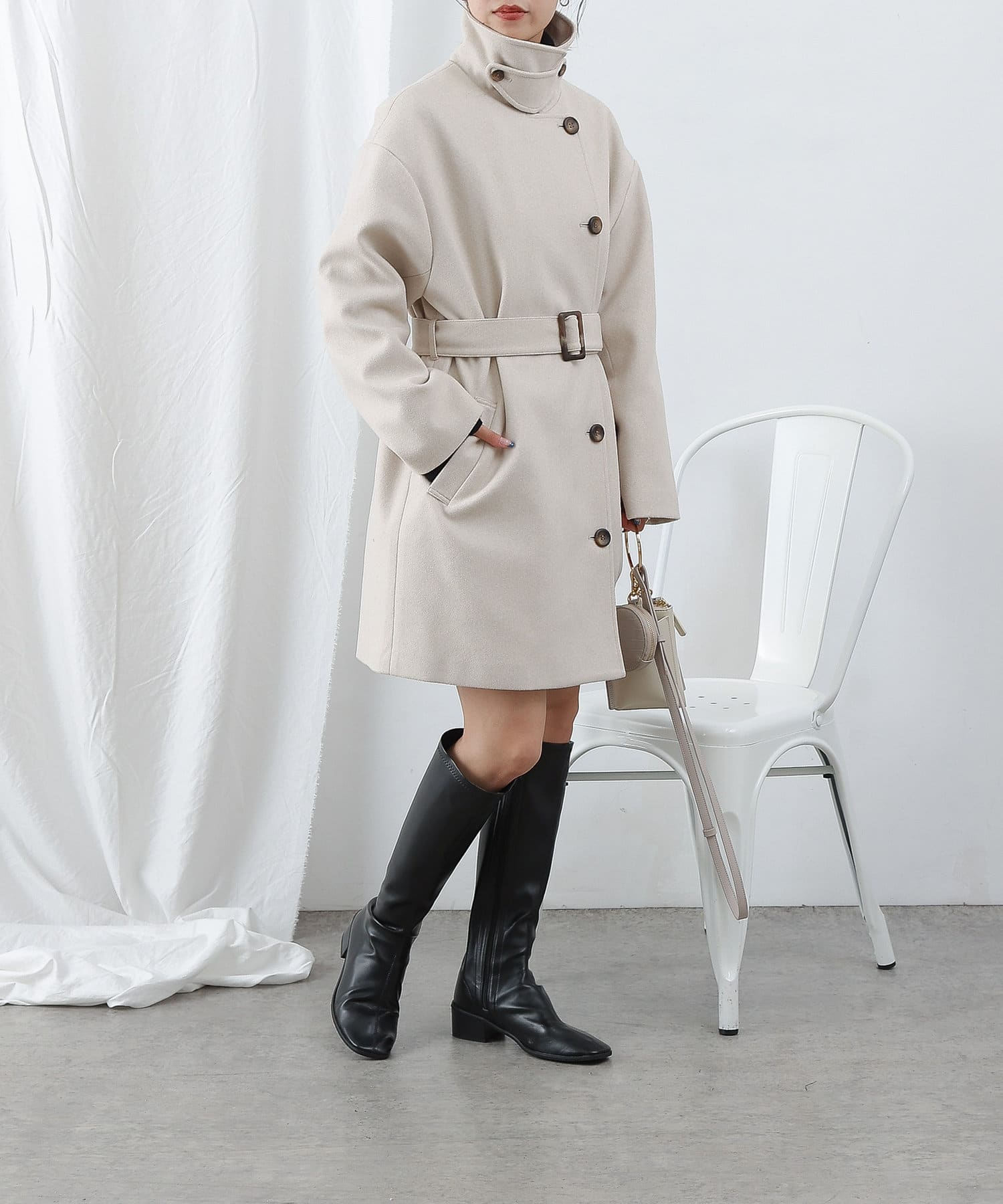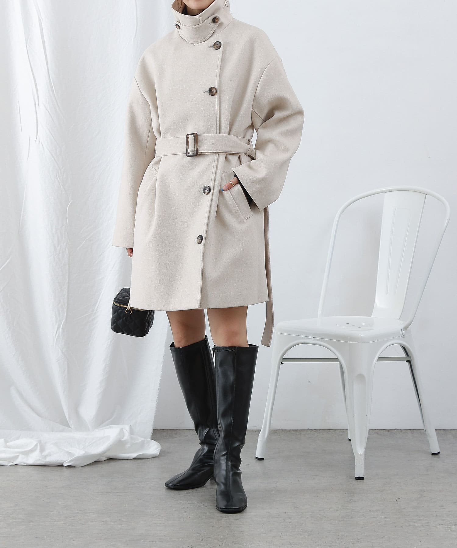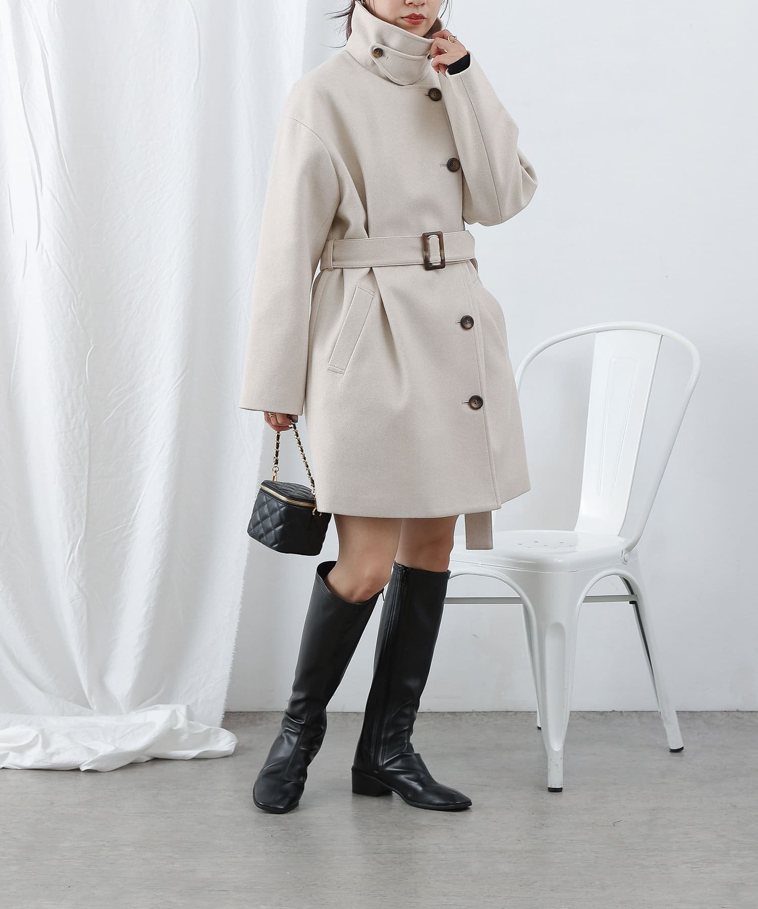 ・CWA1022308A0005 ベルト付きミドル丈スタンドコート