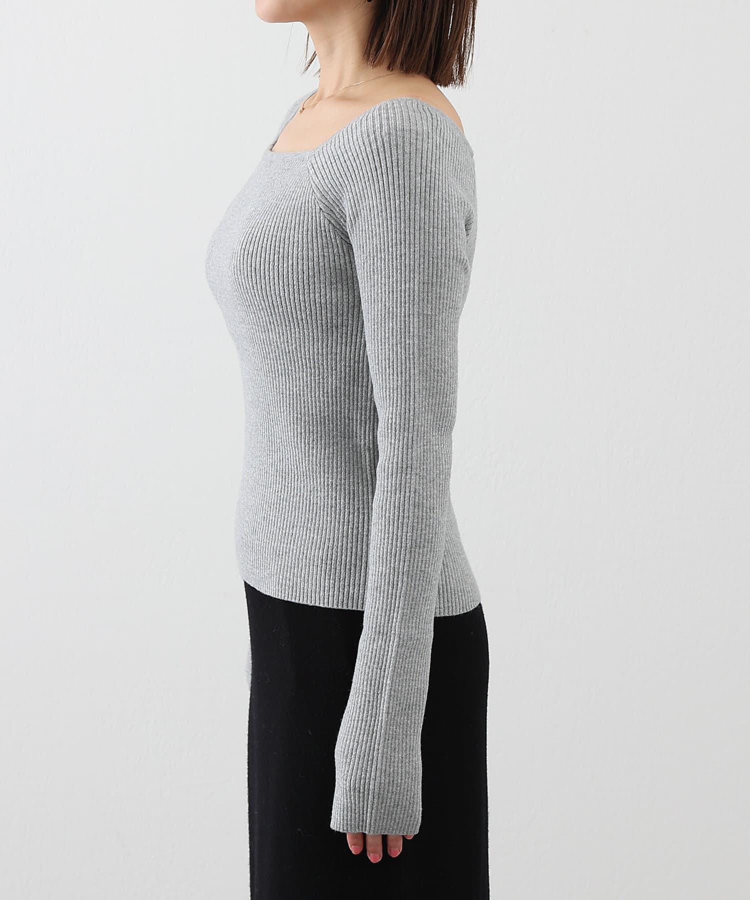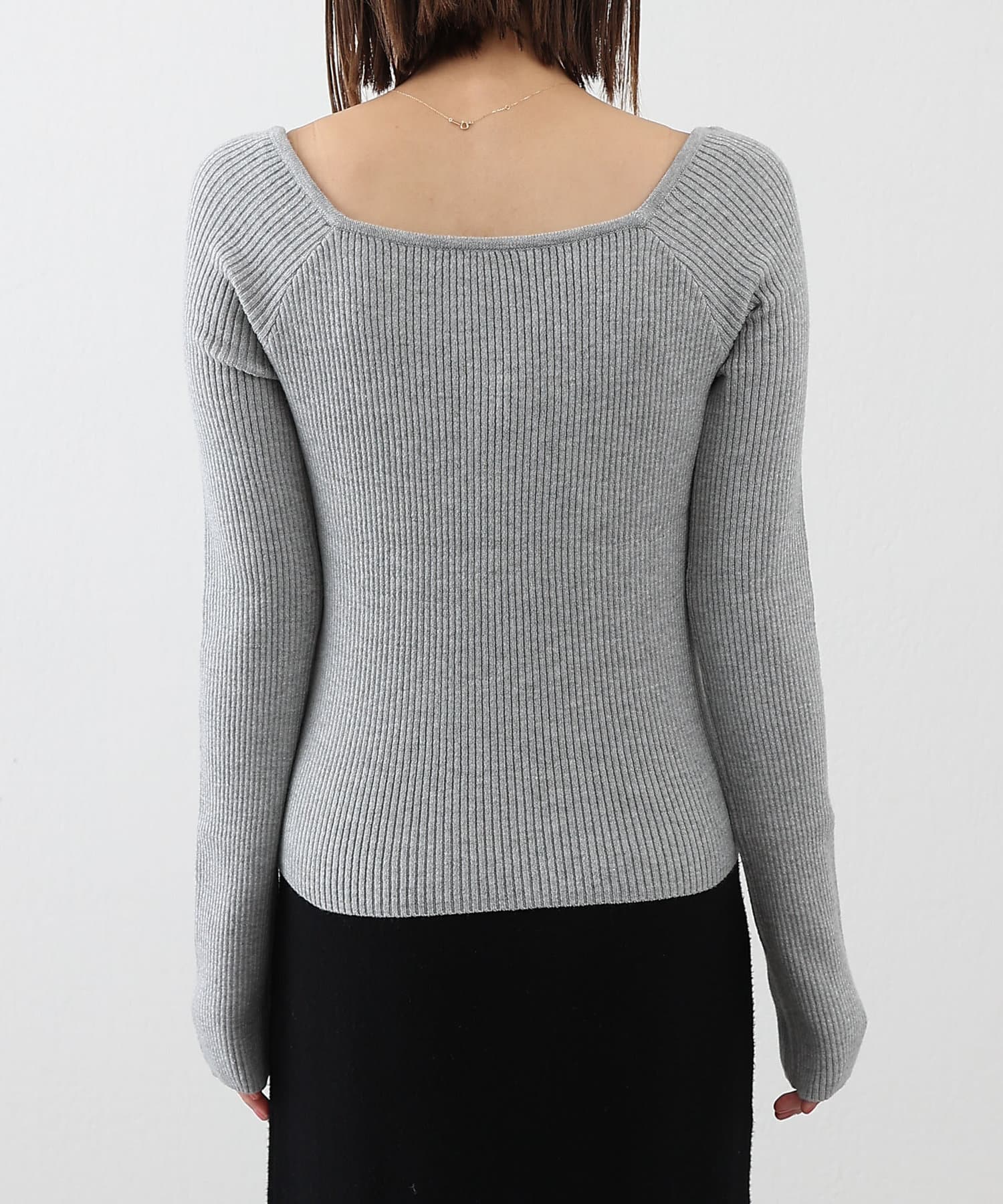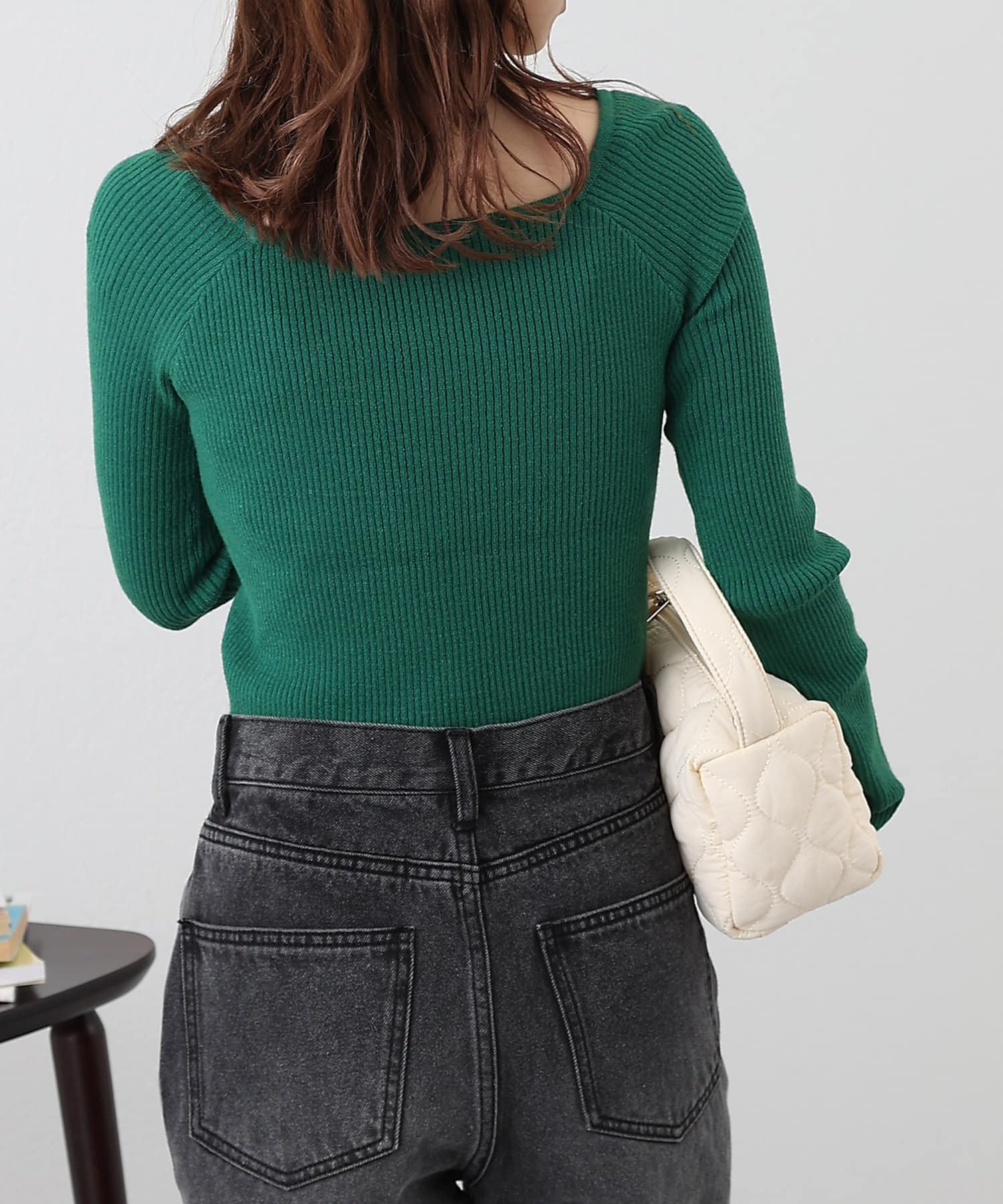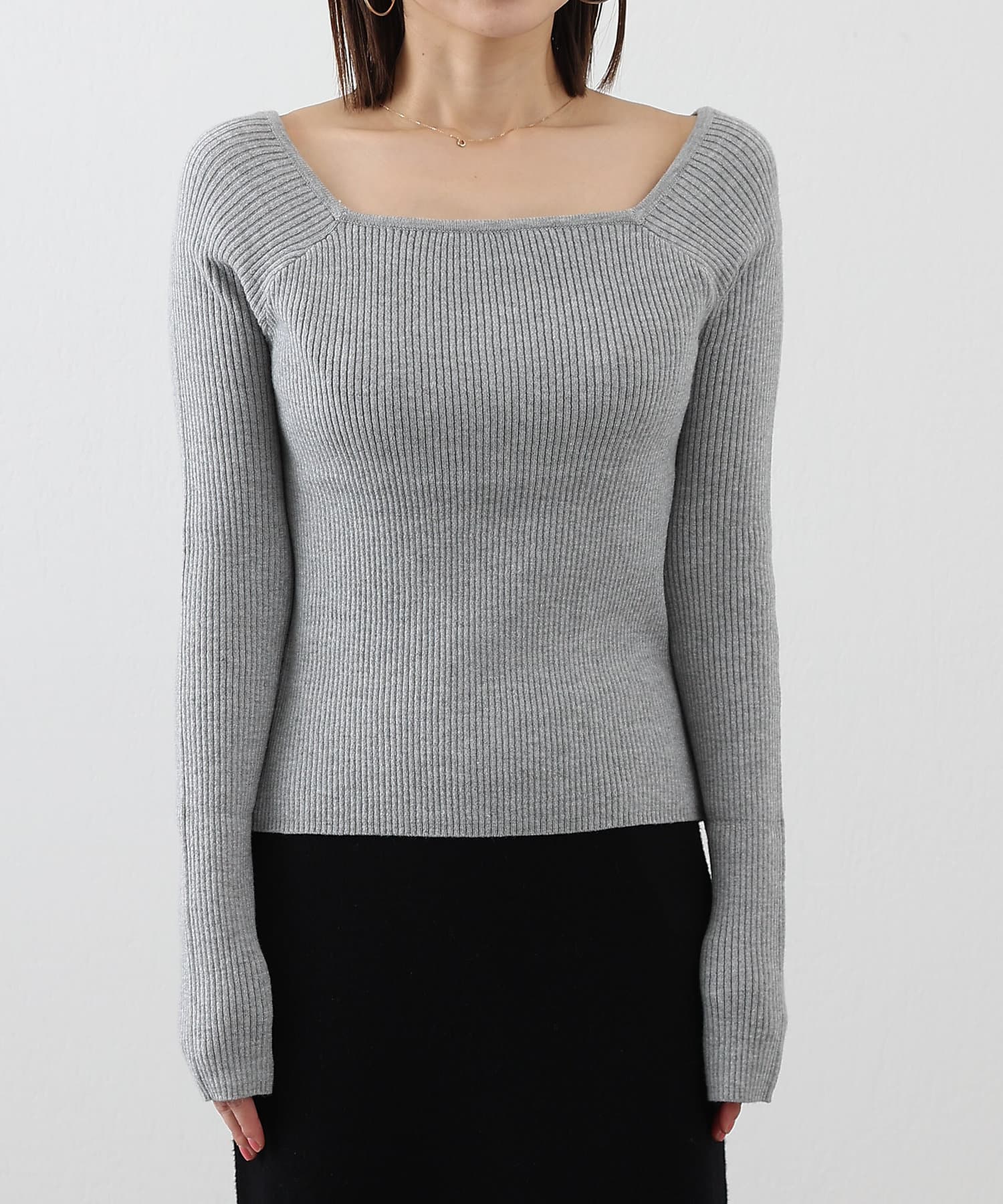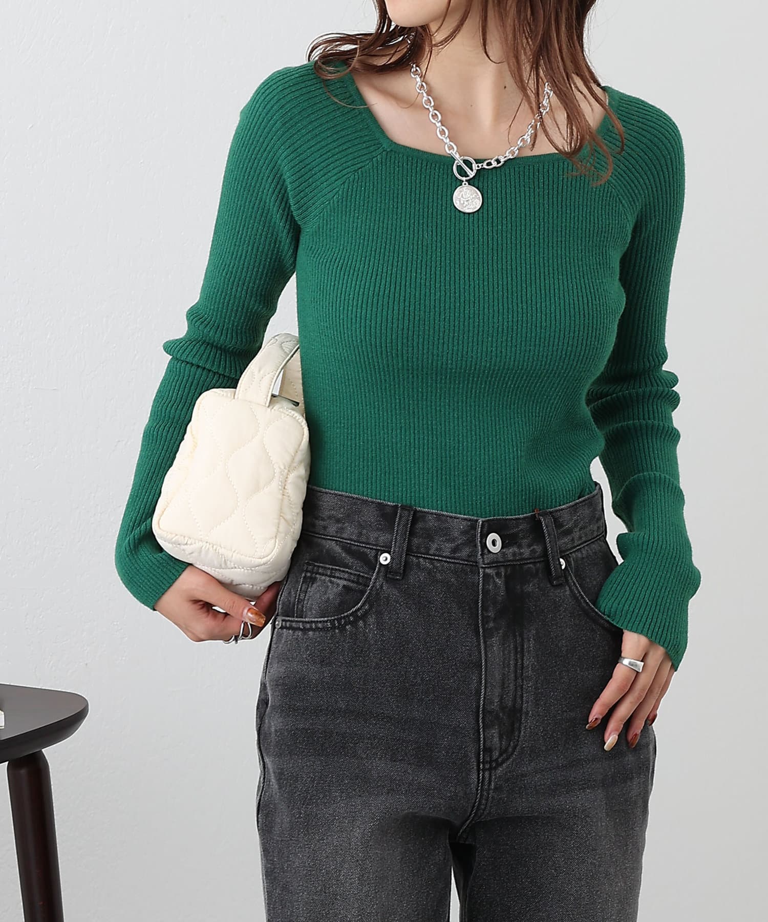 スクエアのネックはデコルテラインを綺麗に見せてくれて、インに着ても抜け感を生み出し、自然とフェミニンな印象をプラスしてくれます。