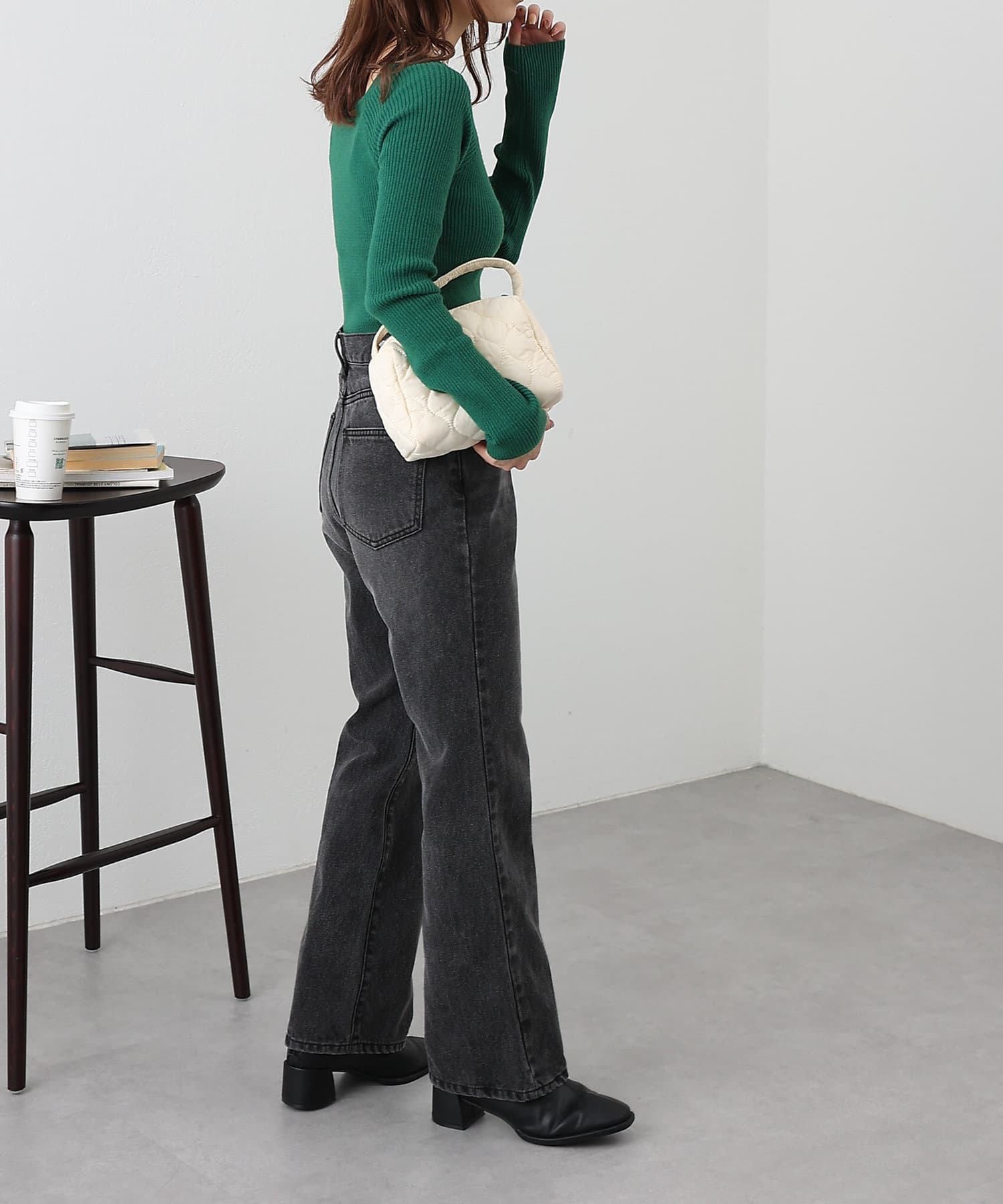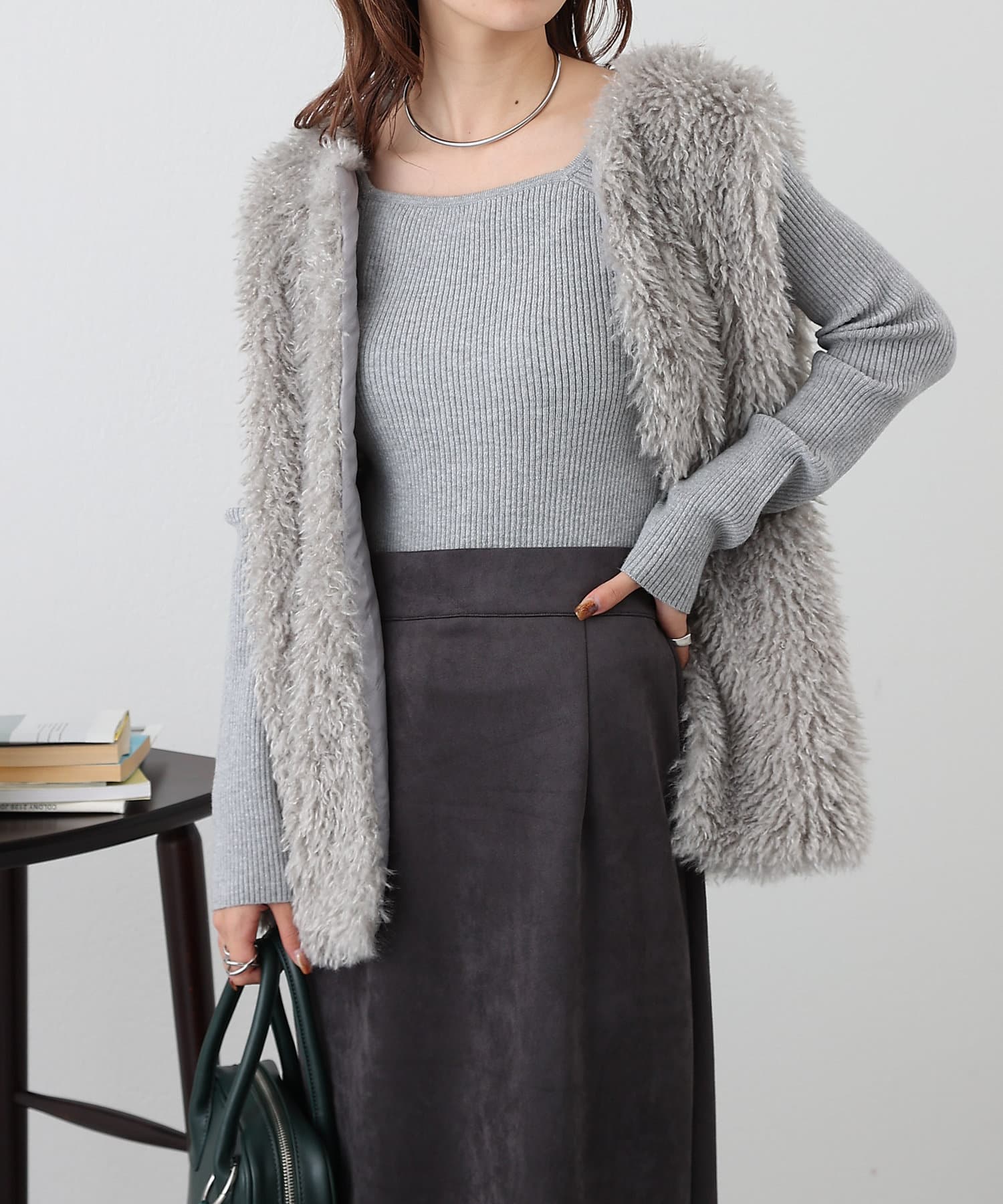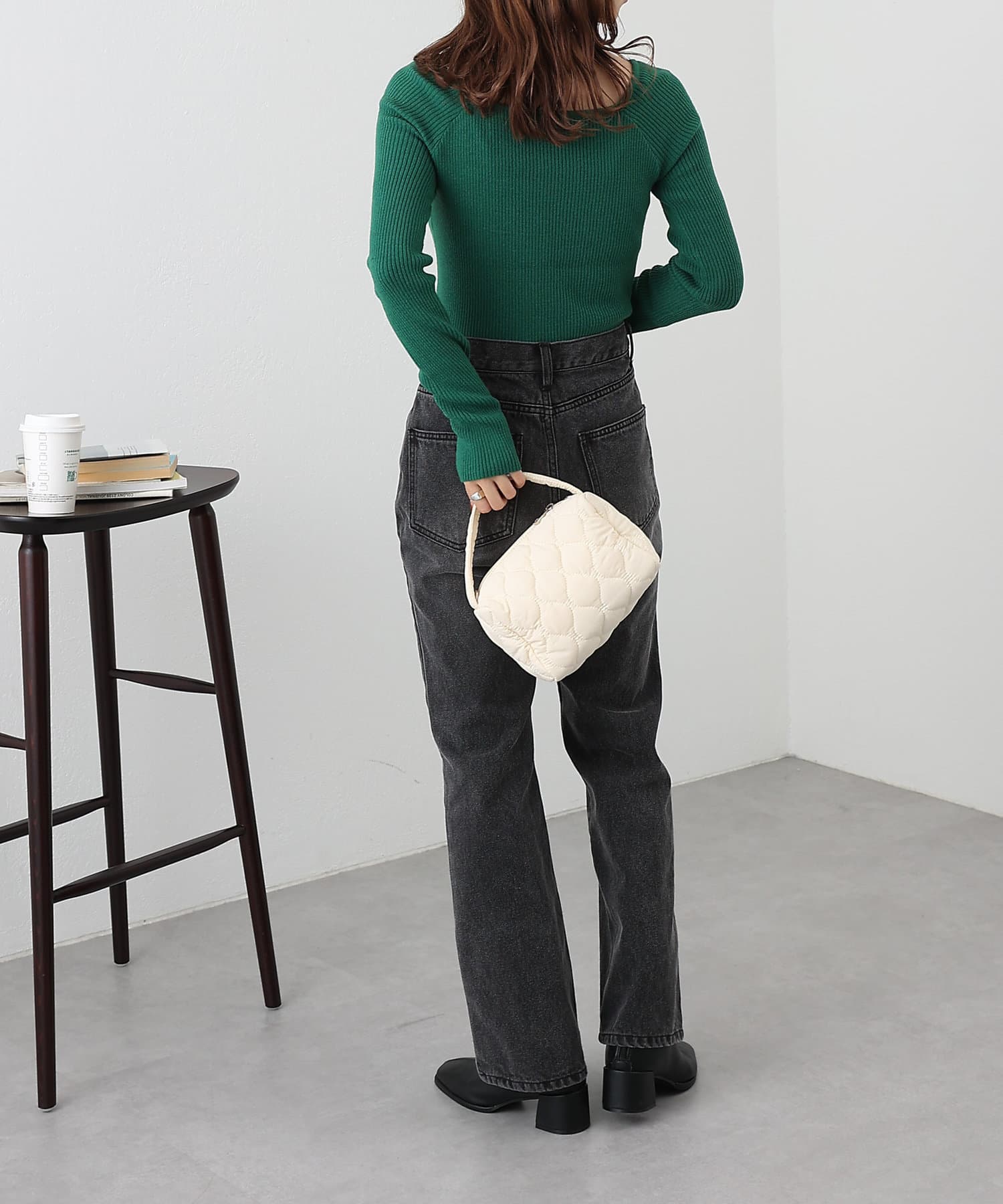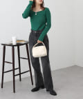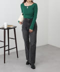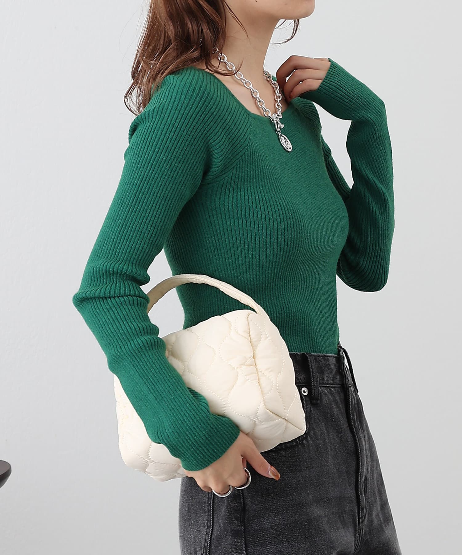 スクエアのネックはデコルテラインを綺麗に見せてくれて、インに着ても抜け感を生み出し、自然とフェミニンな印象をプラスしてくれます。