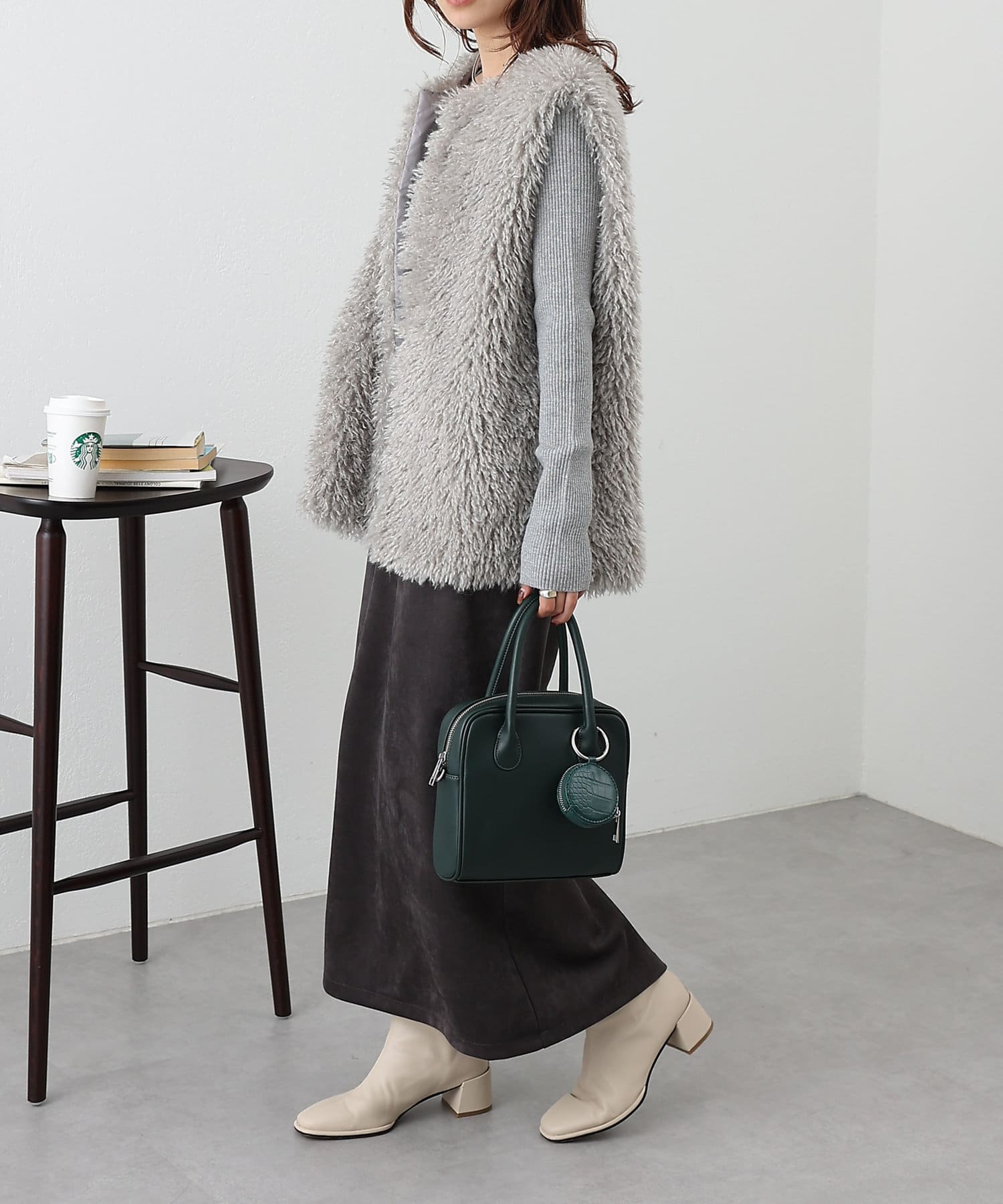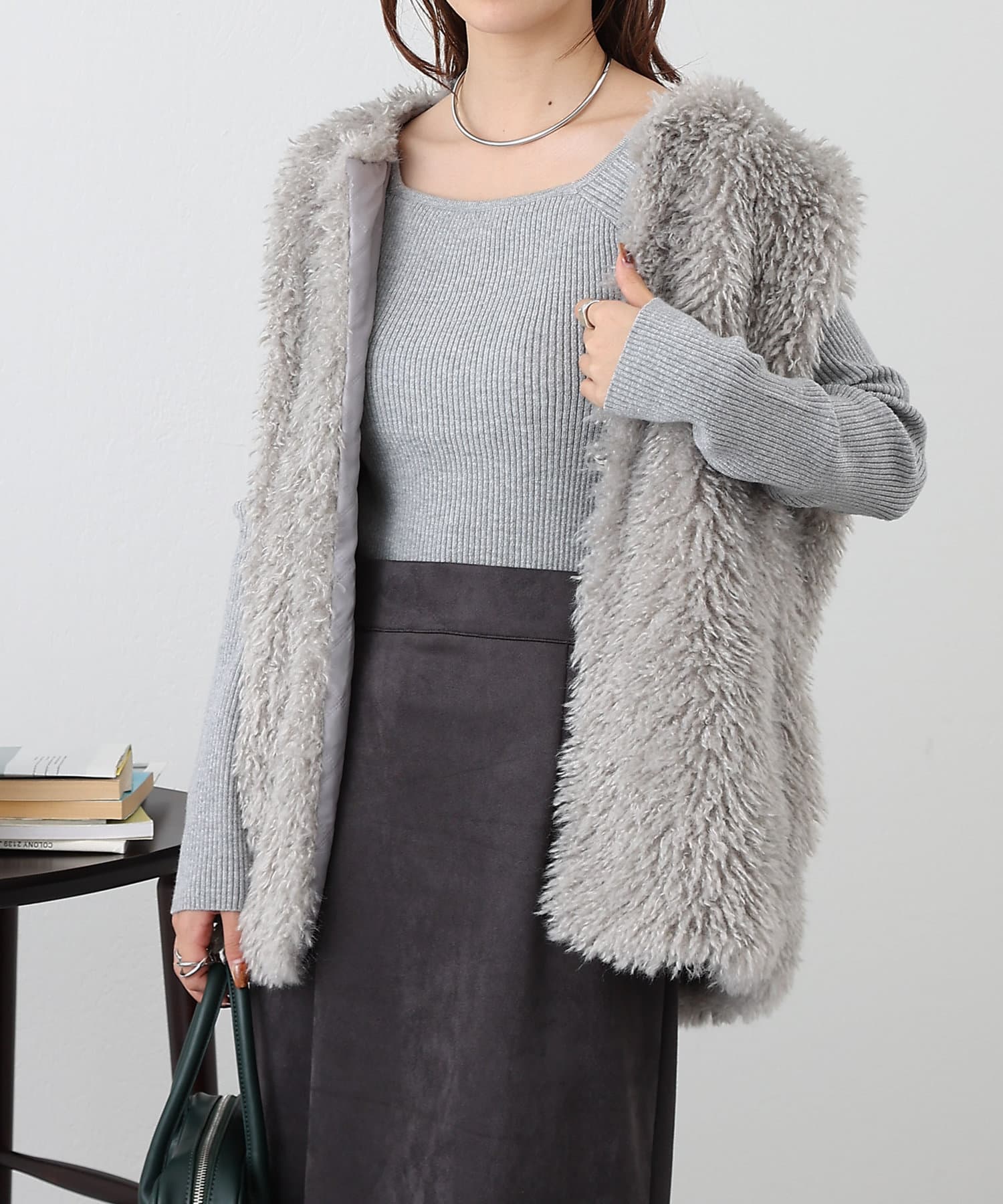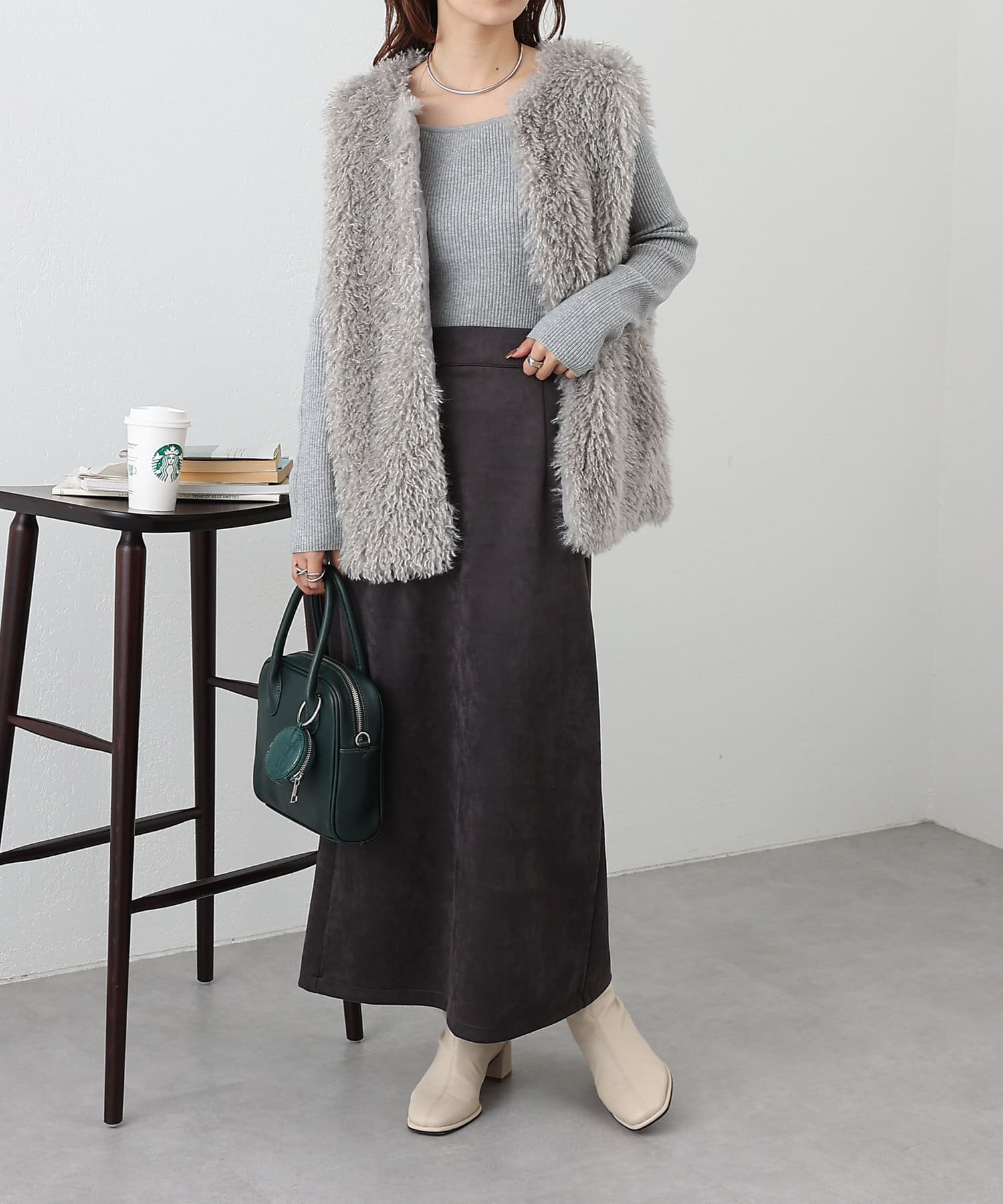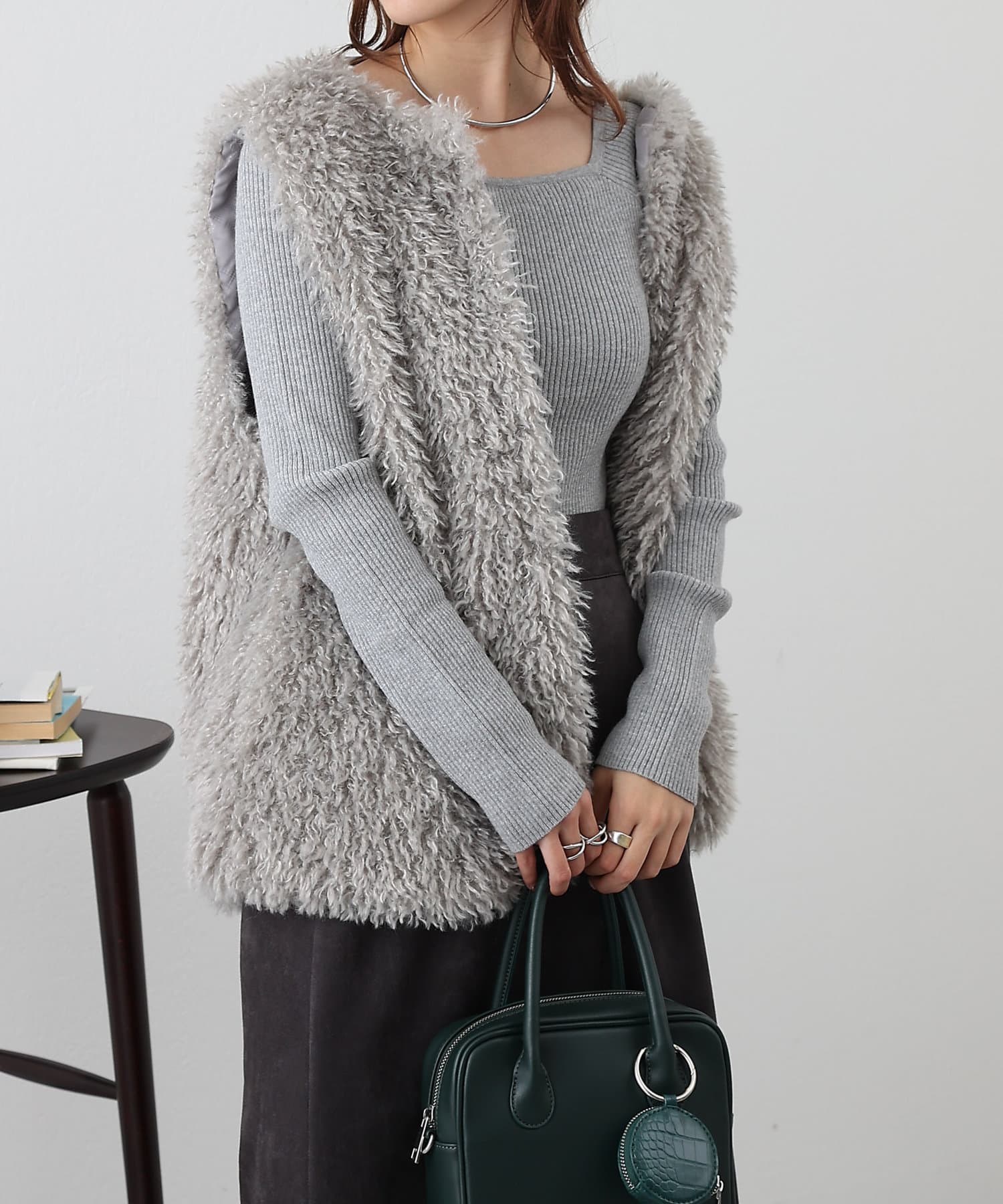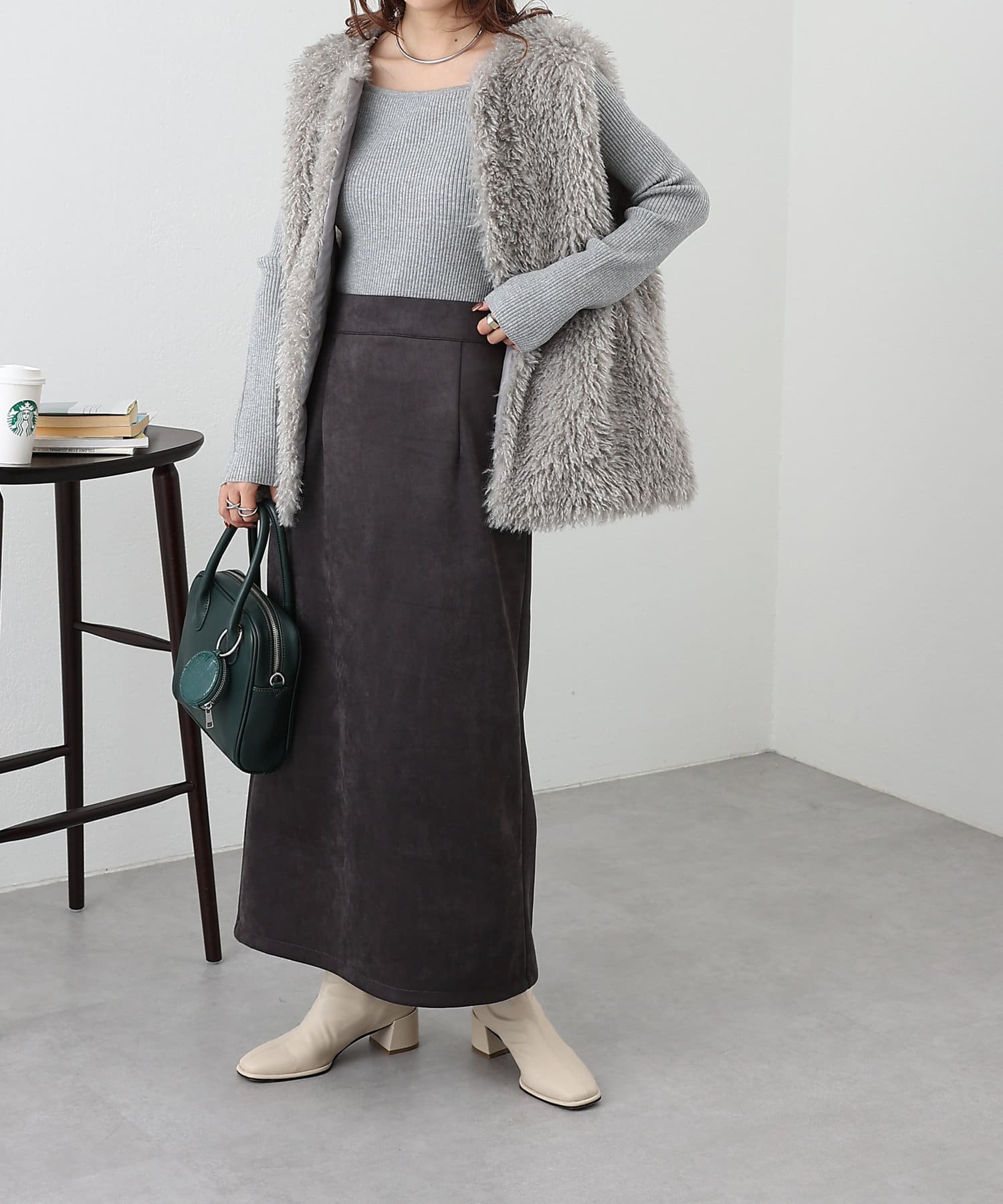 スクエアのネックはデコルテラインを綺麗に見せてくれて、インに着ても抜け感を生み出し、自然とフェミニンな印象をプラスしてくれます。