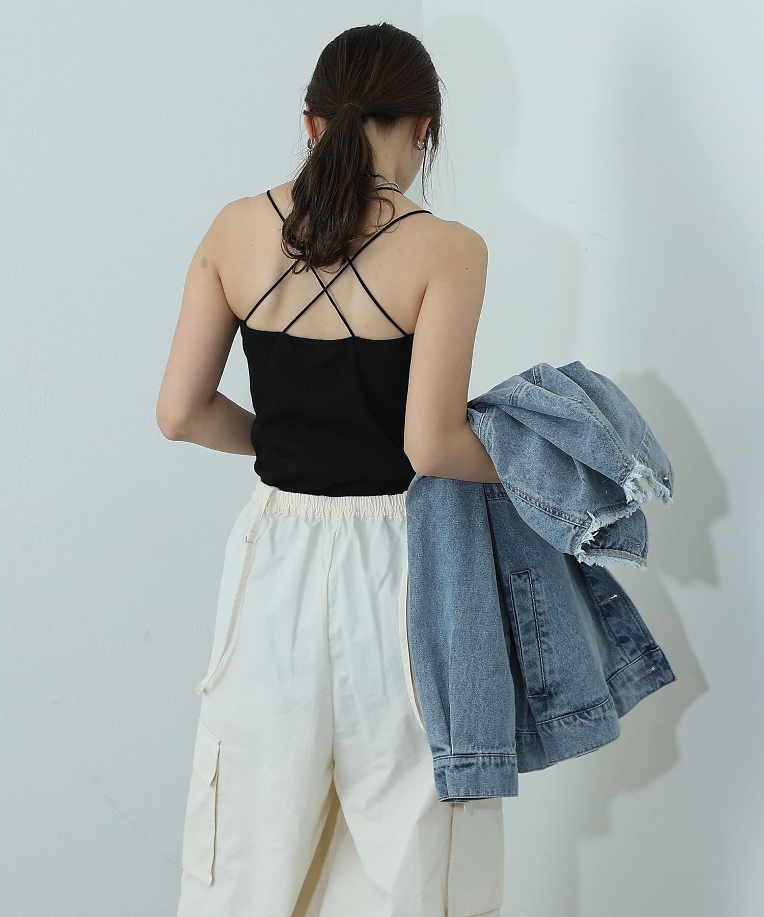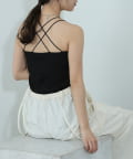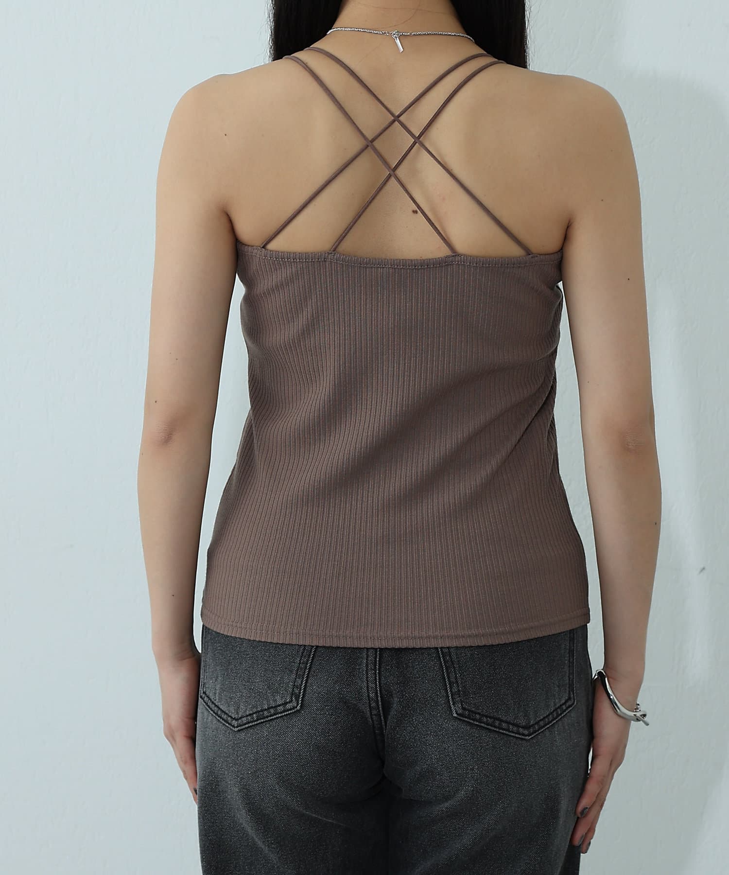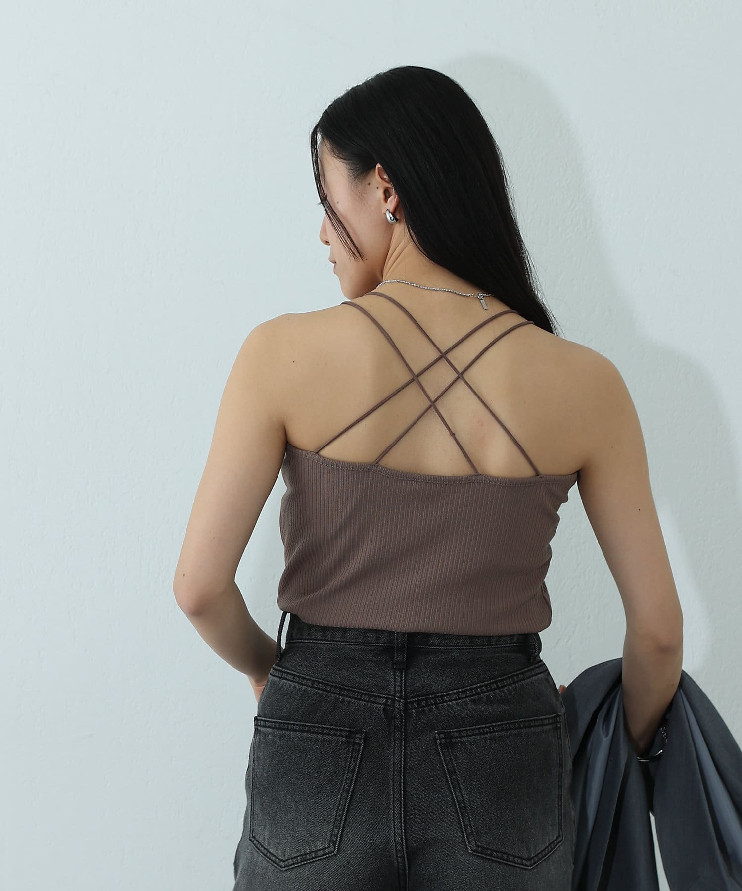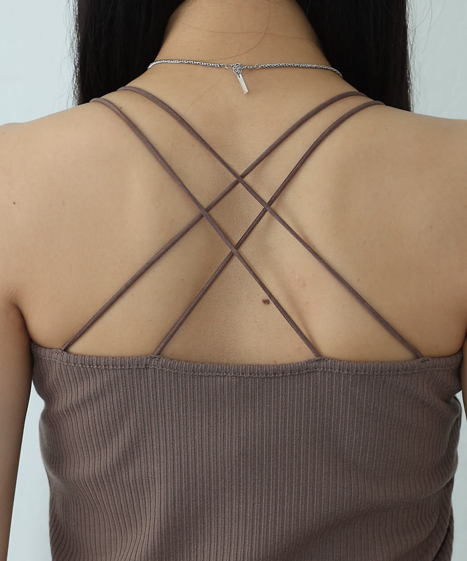 女性らしい後ろ姿を演出してくれるカップ付きバッククロスストラップキャミソール。
