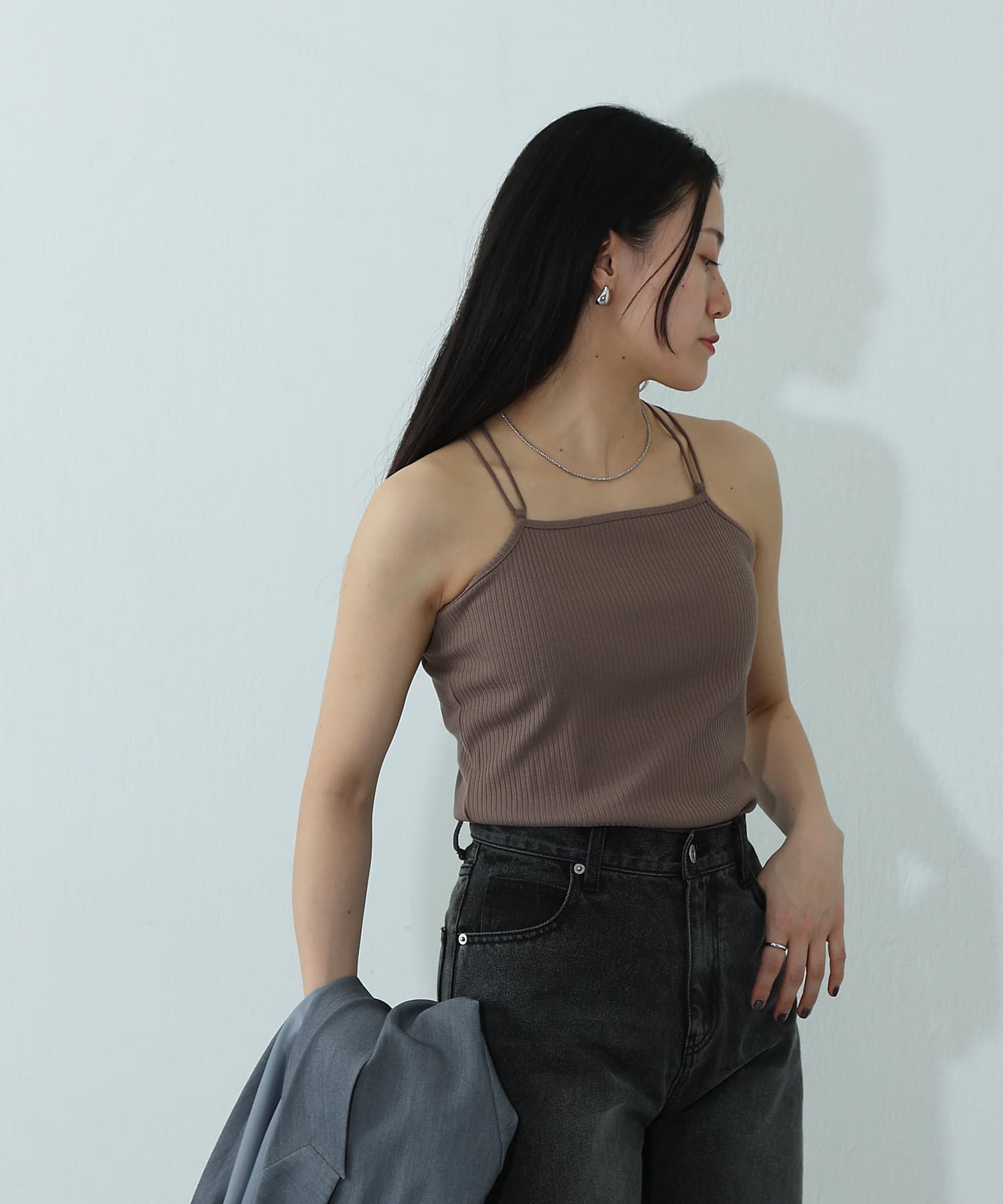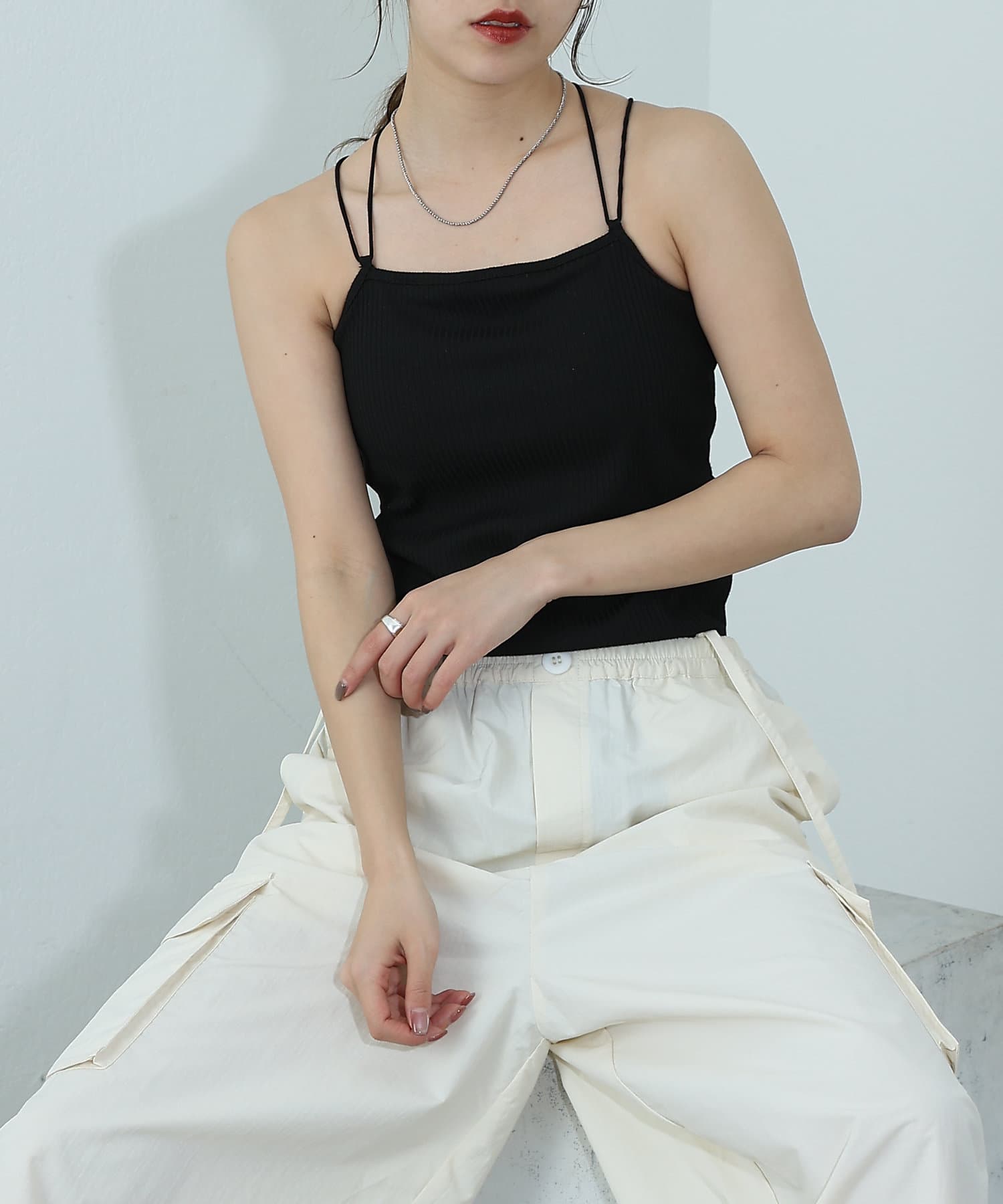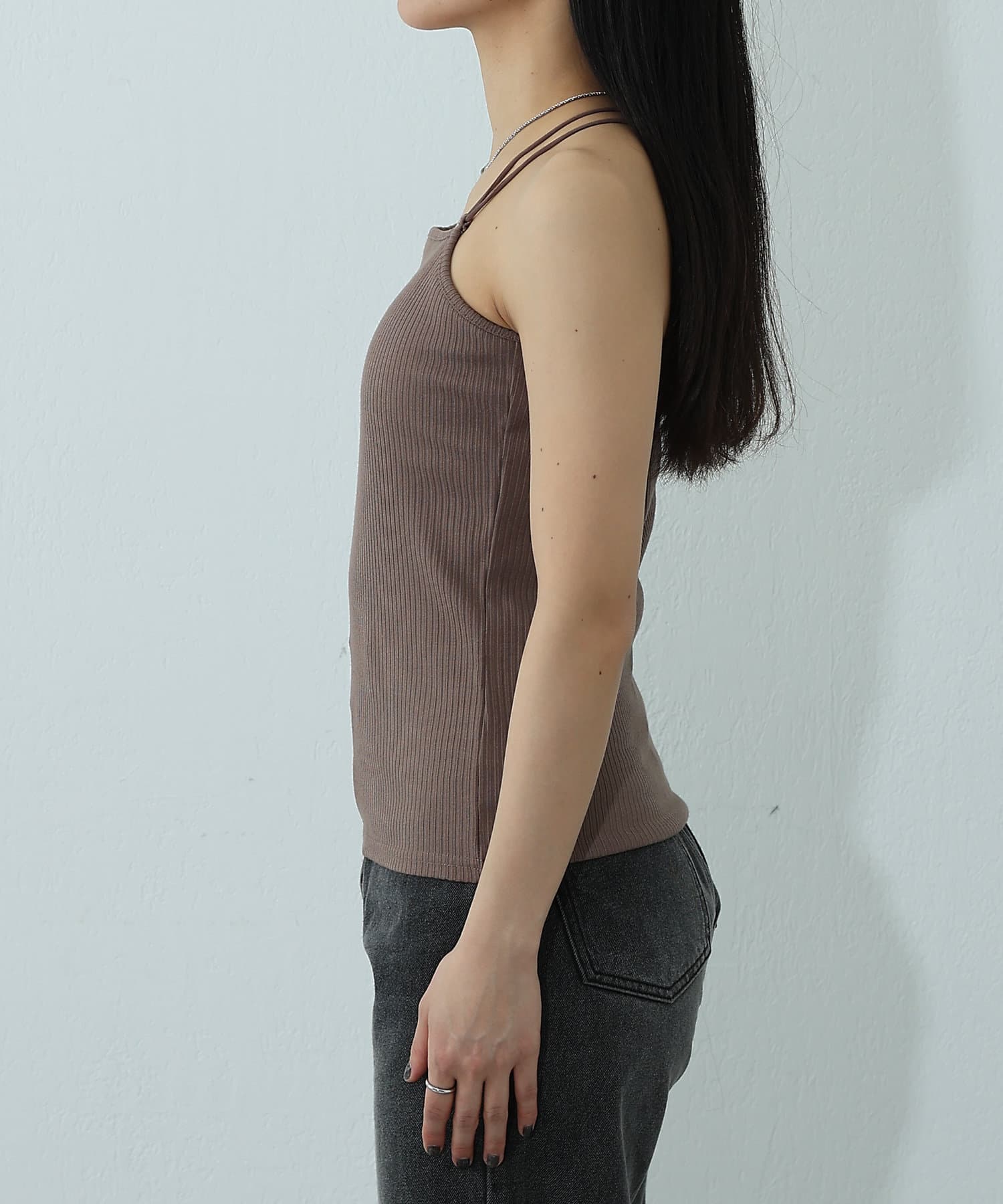 女性らしい後ろ姿を演出してくれるカップ付きバッククロスストラップキャミソール。