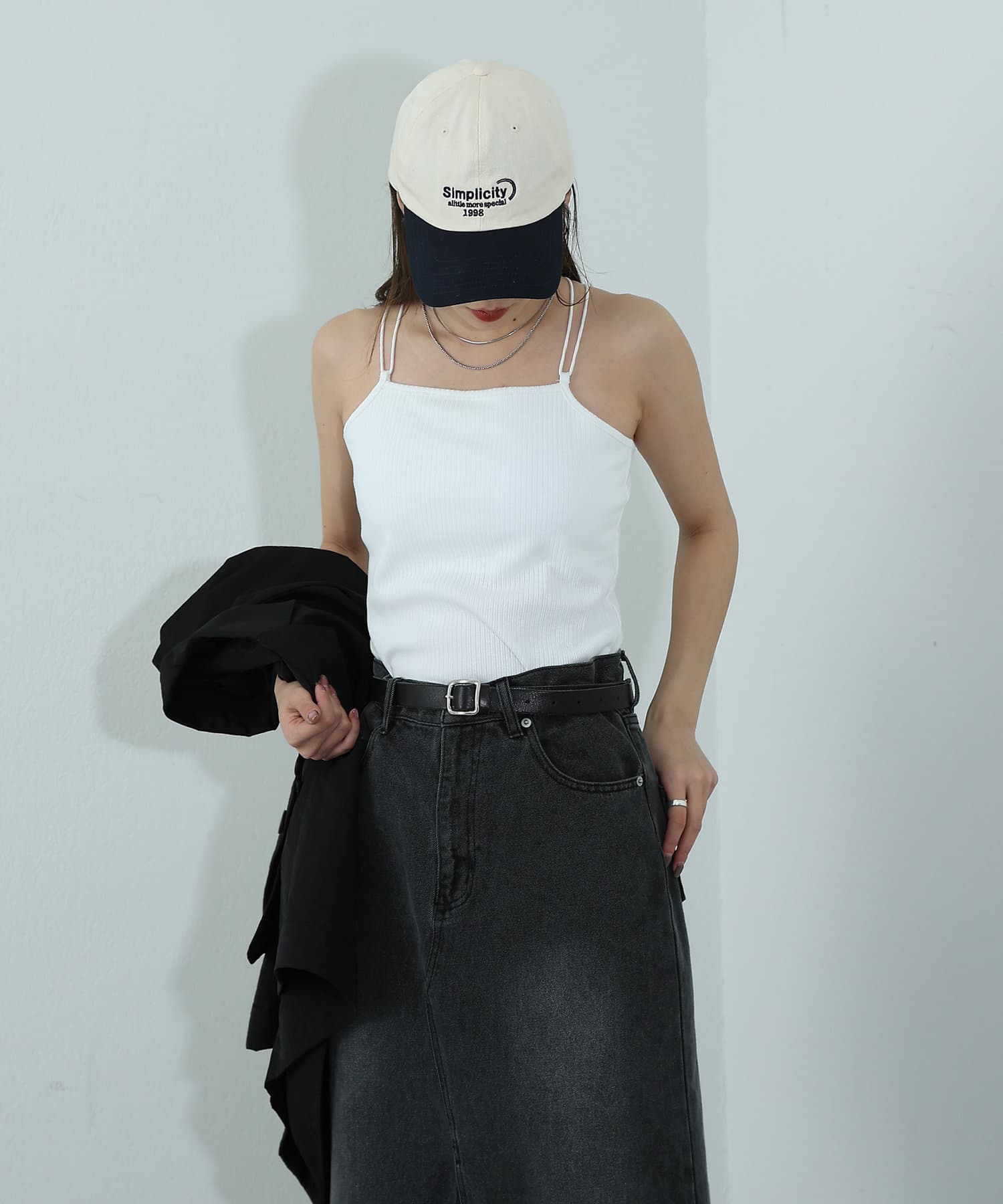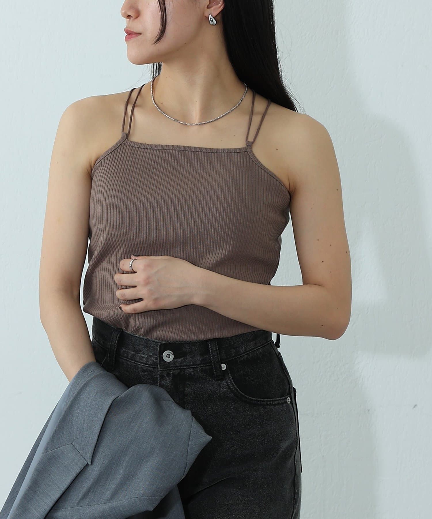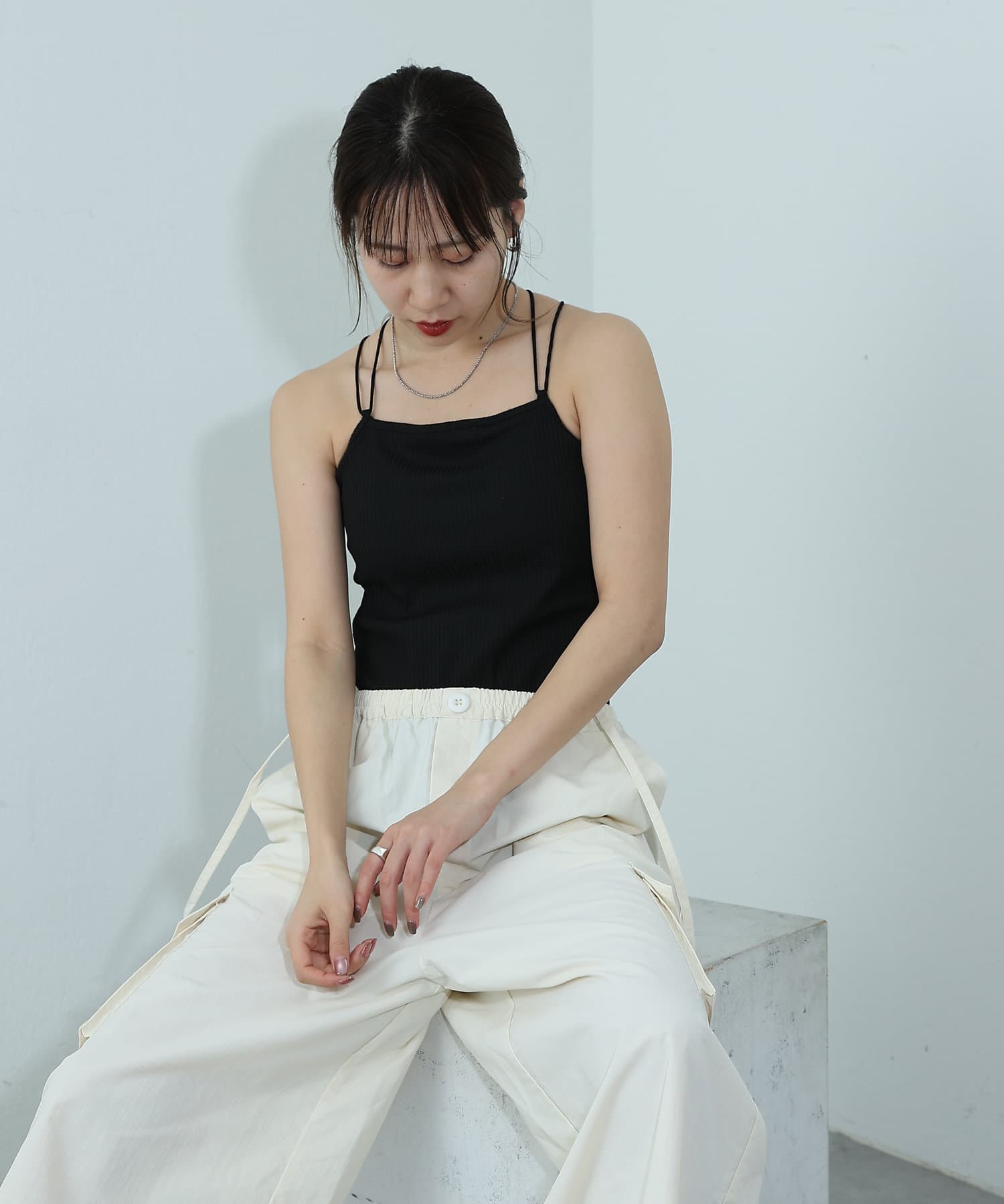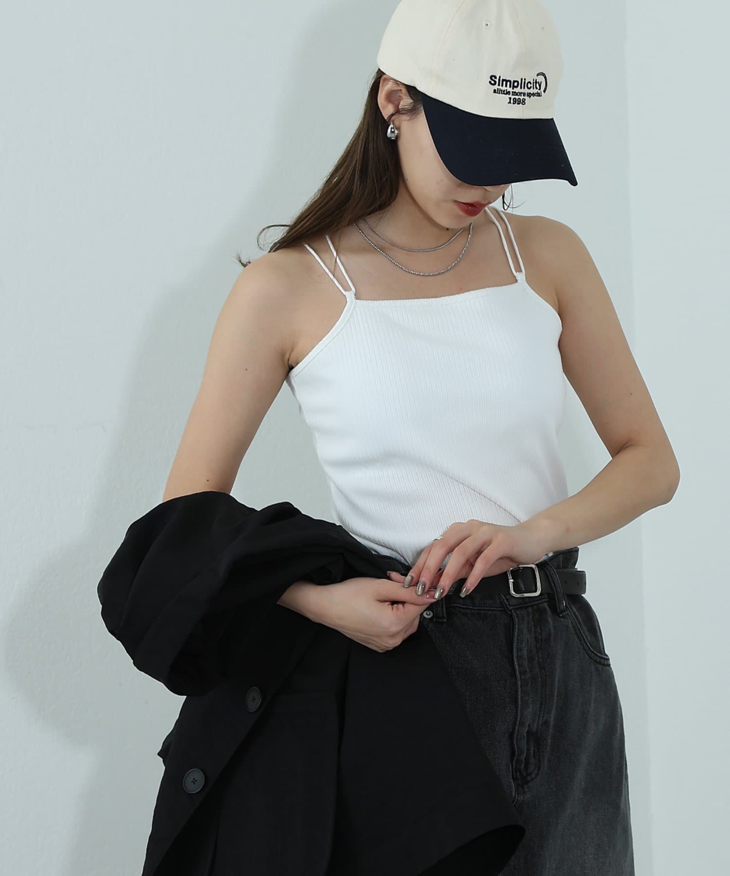 女性らしい後ろ姿を演出してくれるカップ付きバッククロスストラップキャミソール。
