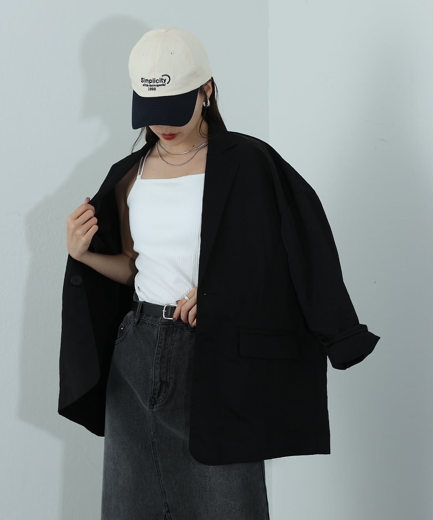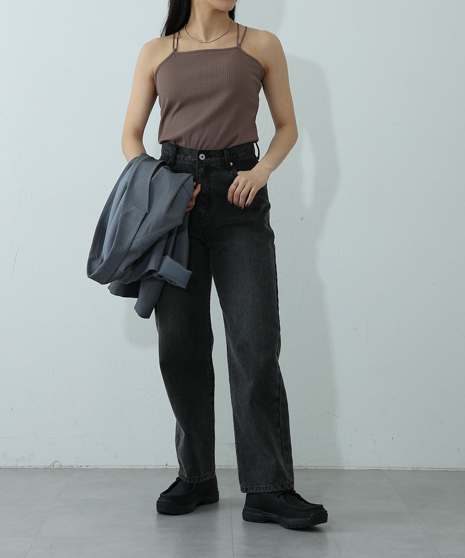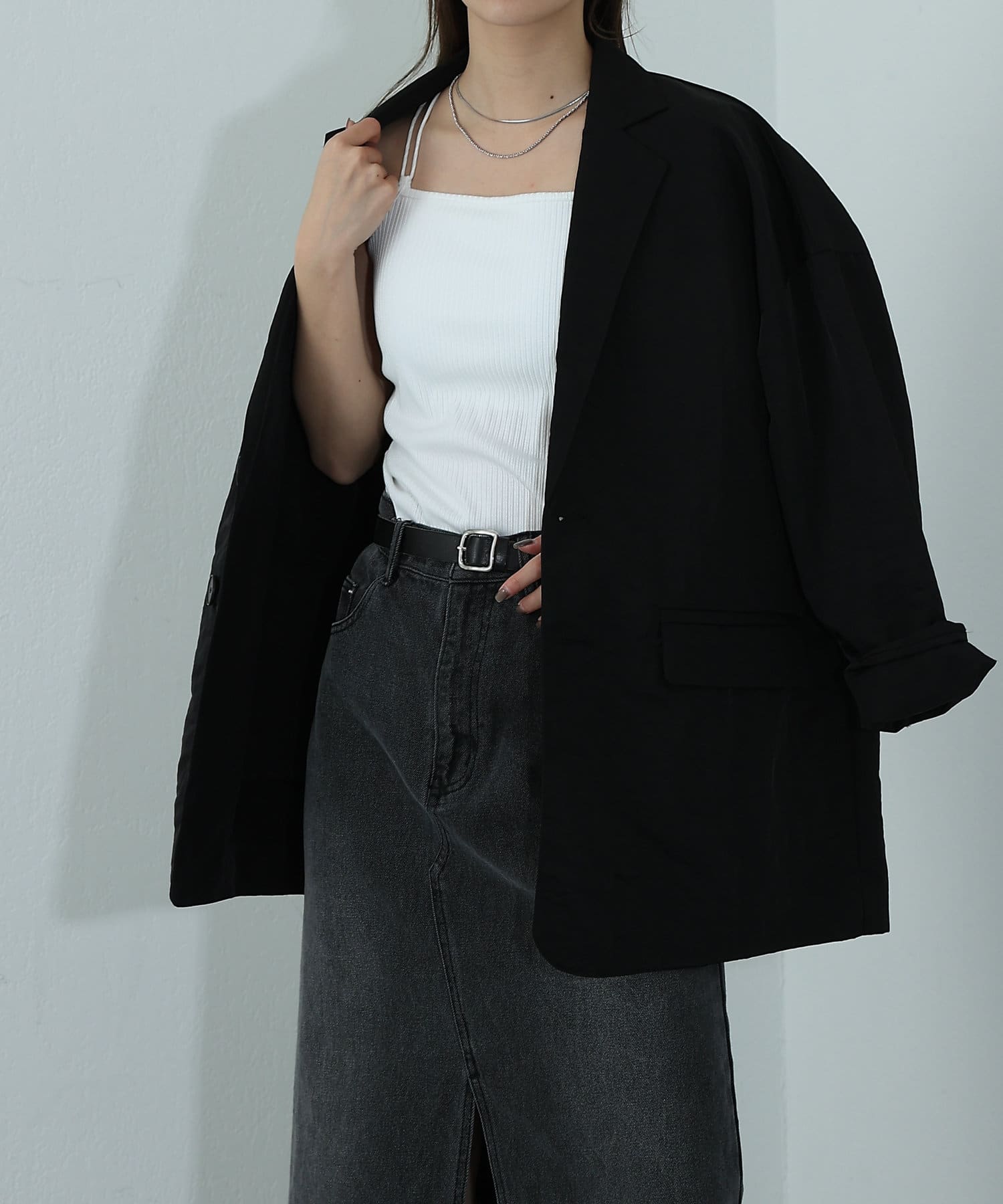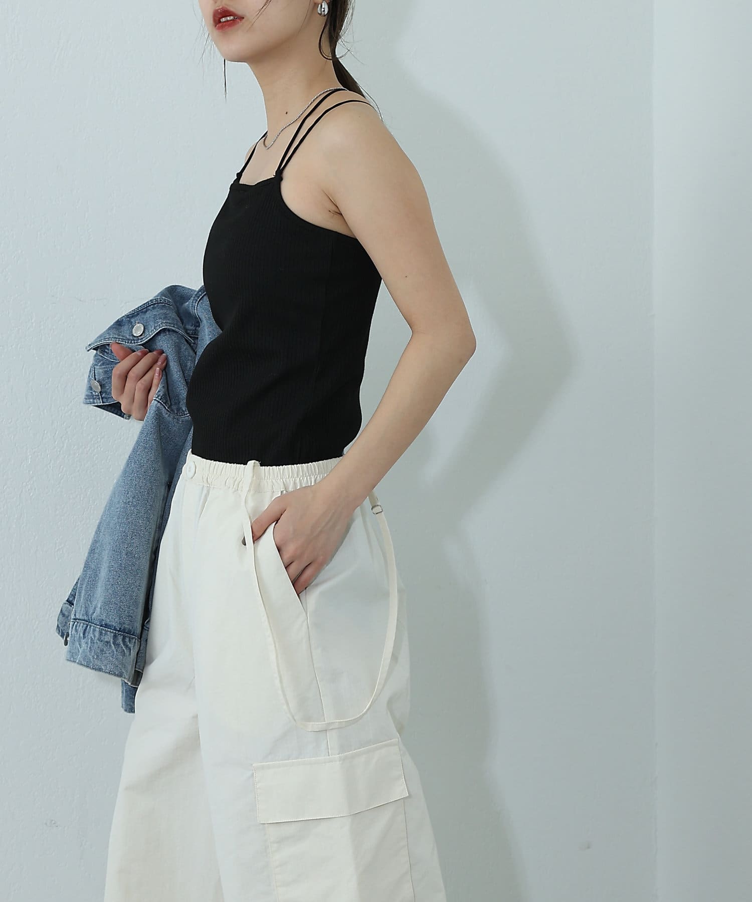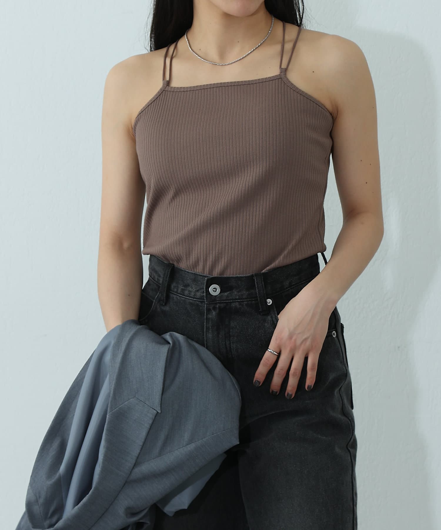 シアートップスの中に着てインナーを透けさせたレイヤードスタイルにも◎