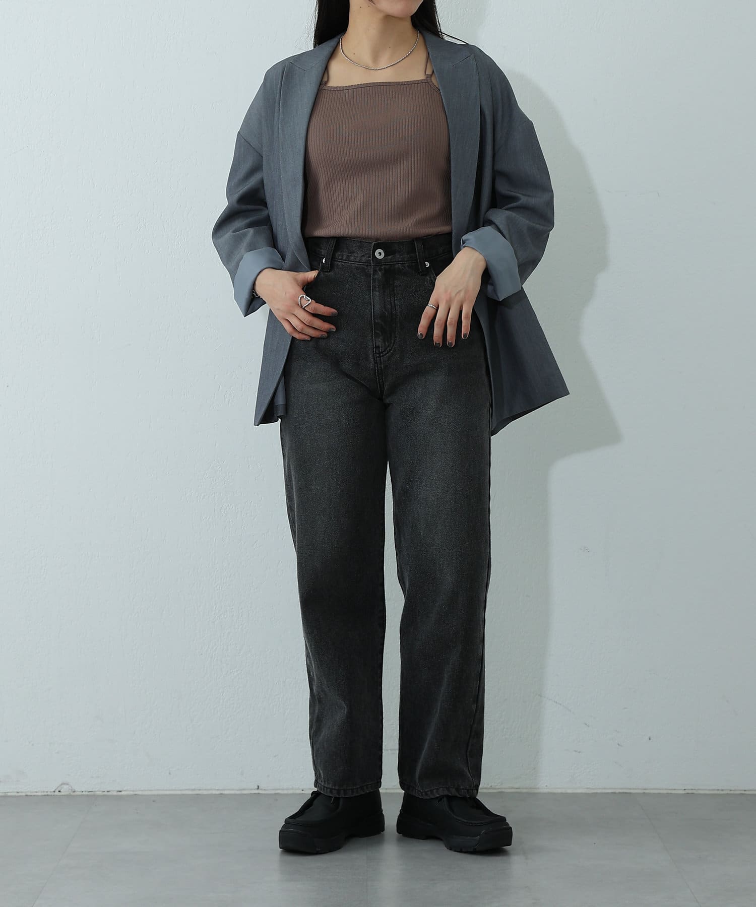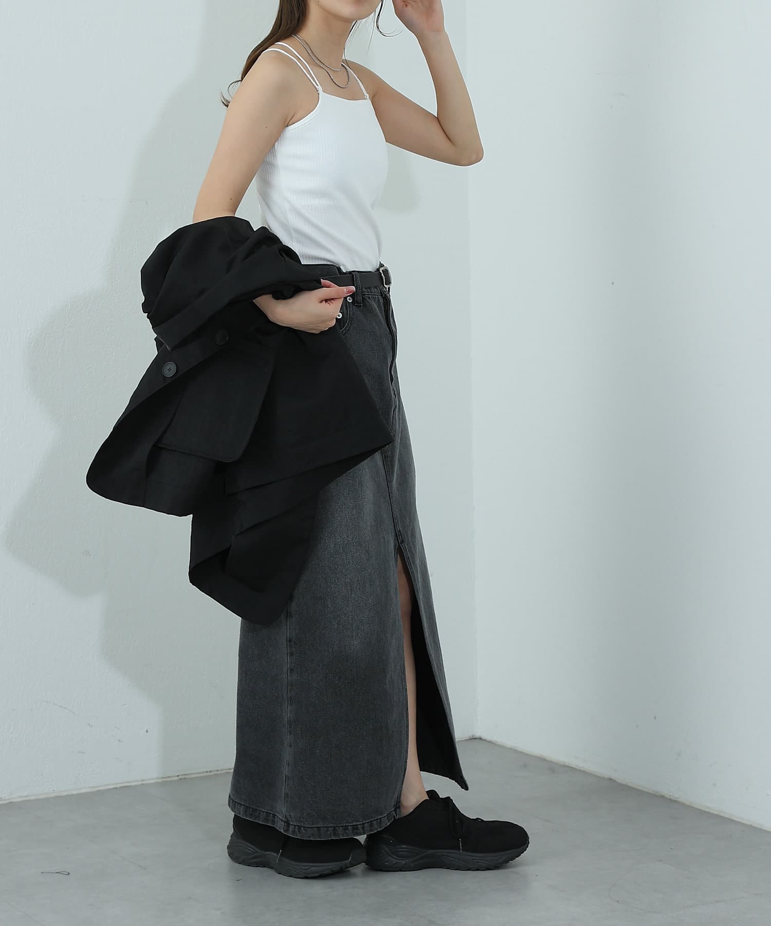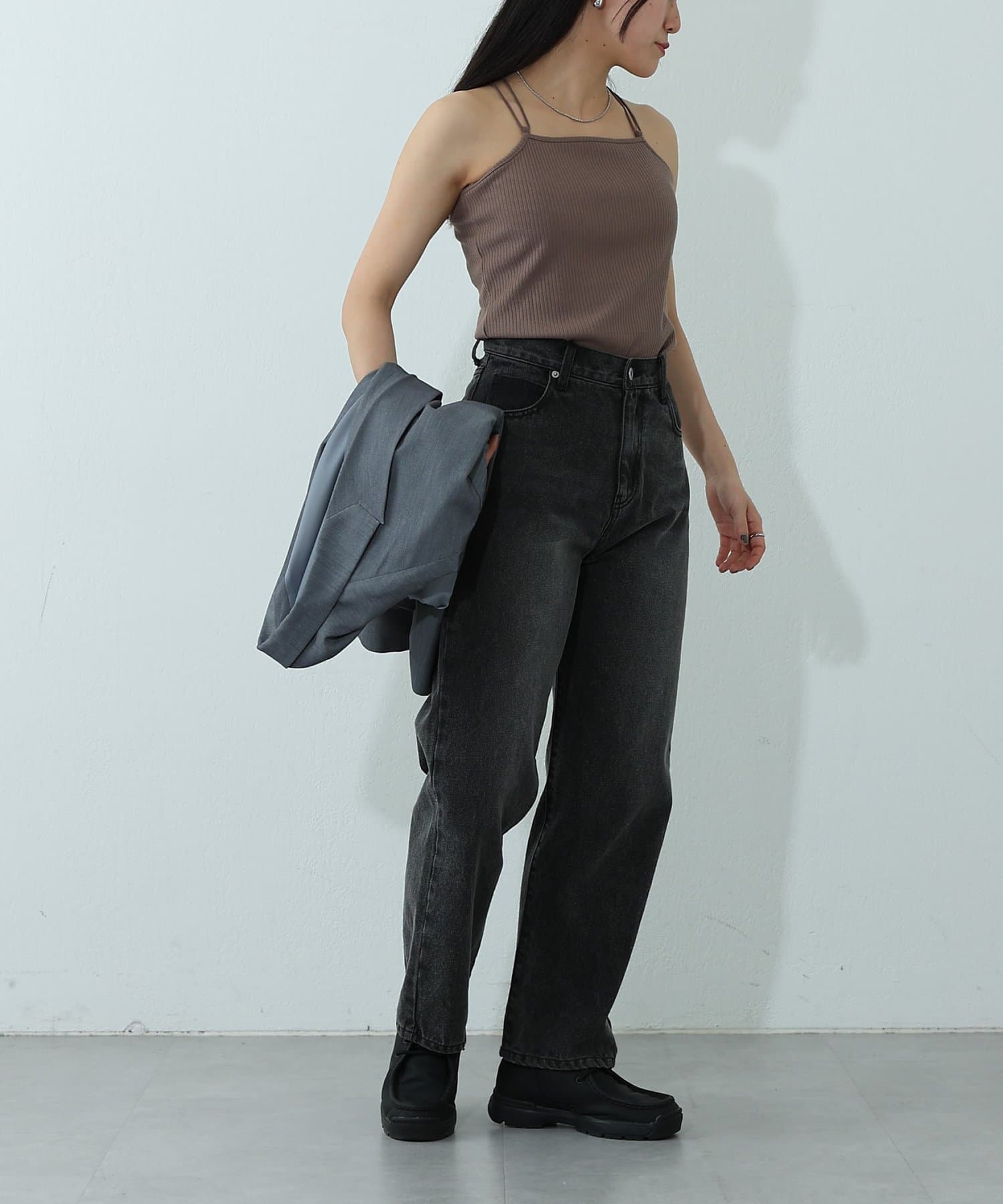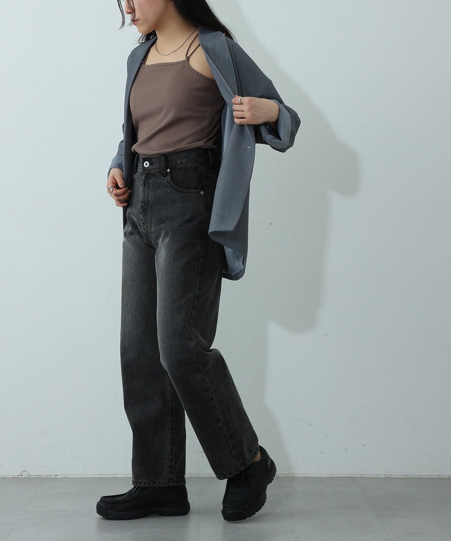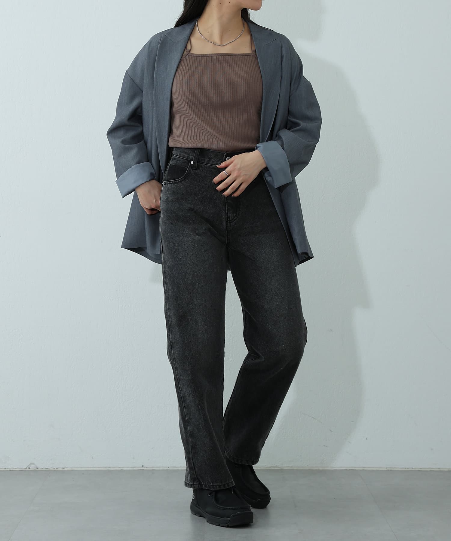 シアートップスの中に着てインナーを透けさせたレイヤードスタイルにも◎