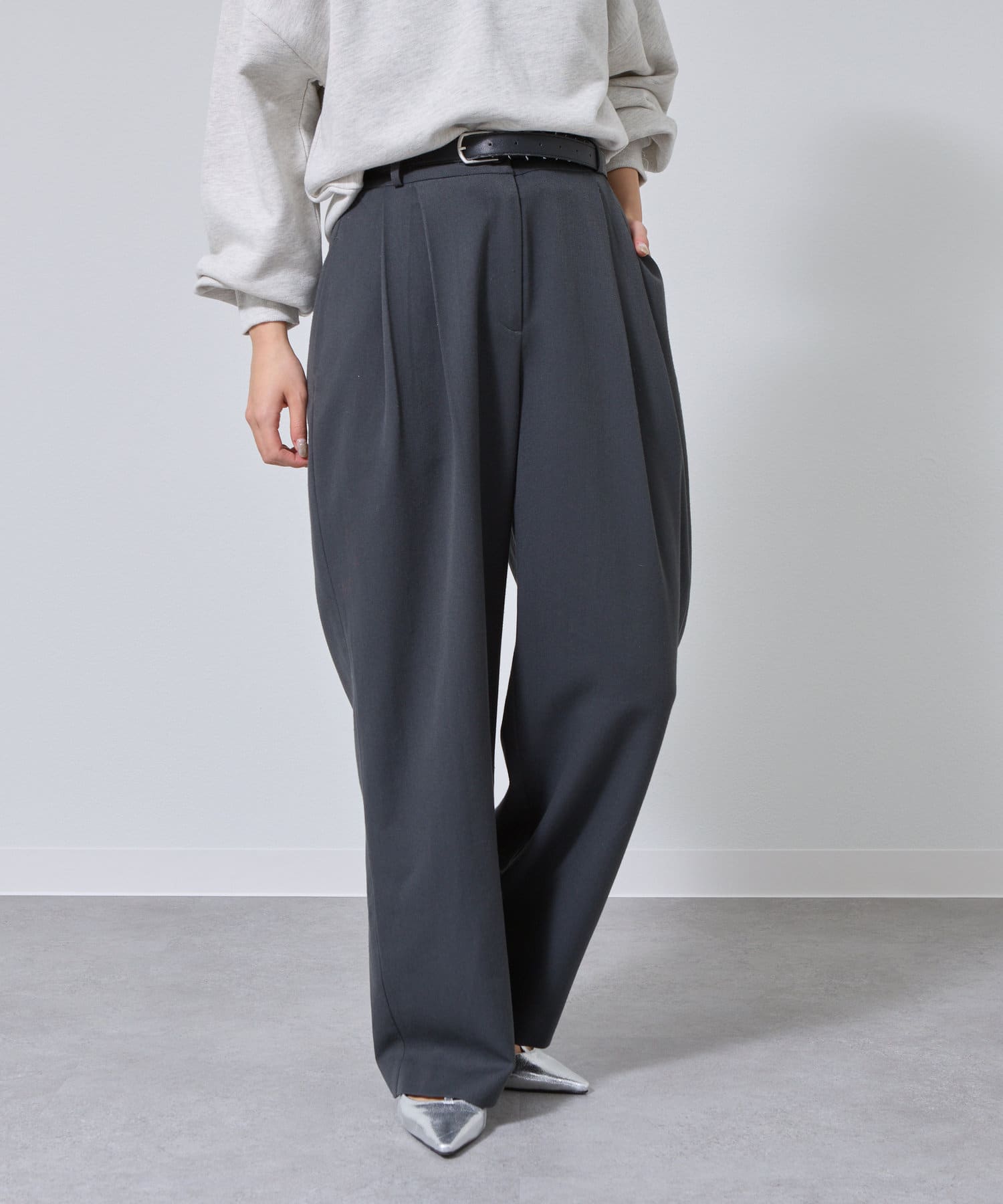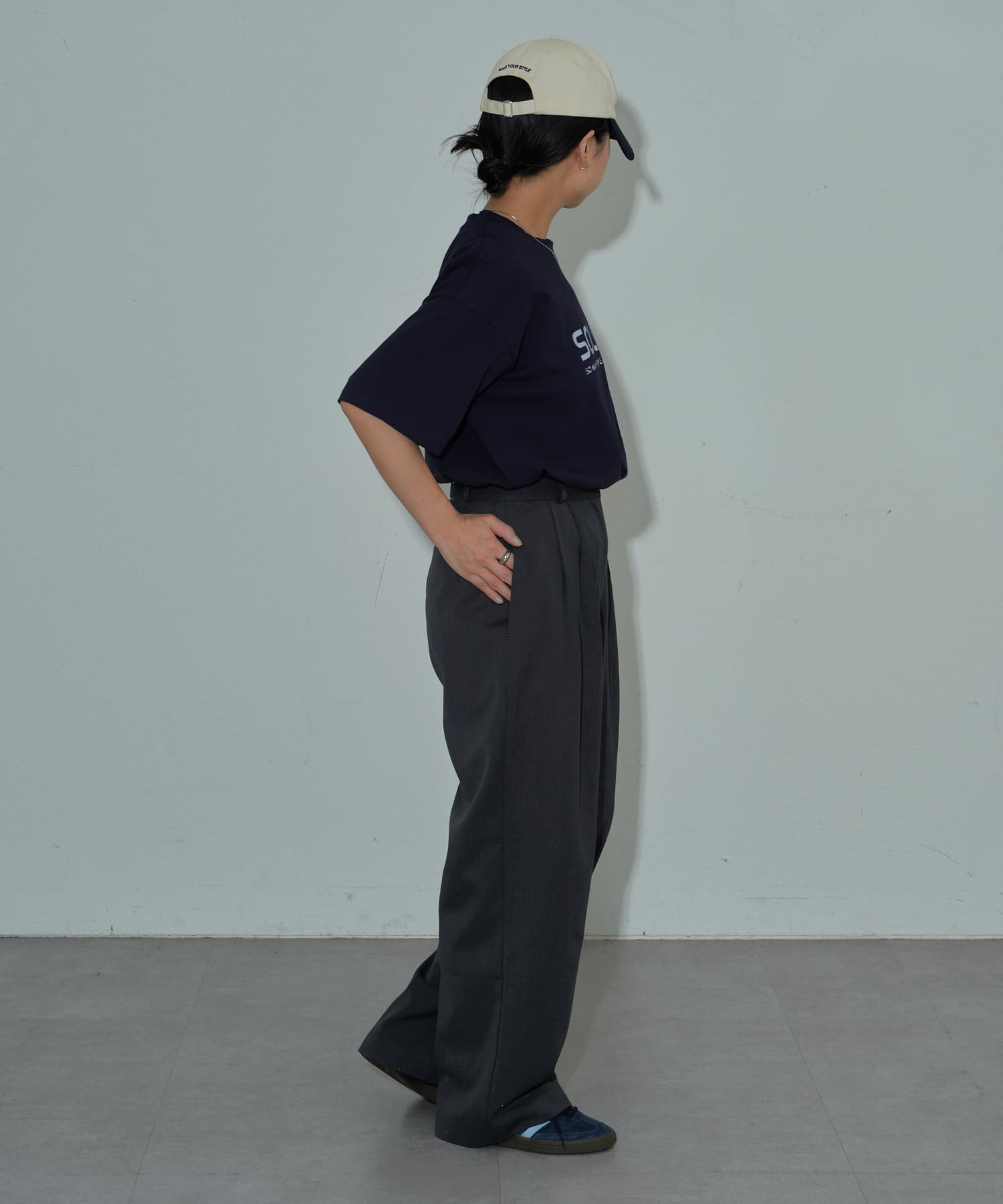 【シルエットにこだわった2タックワイドパンツ】