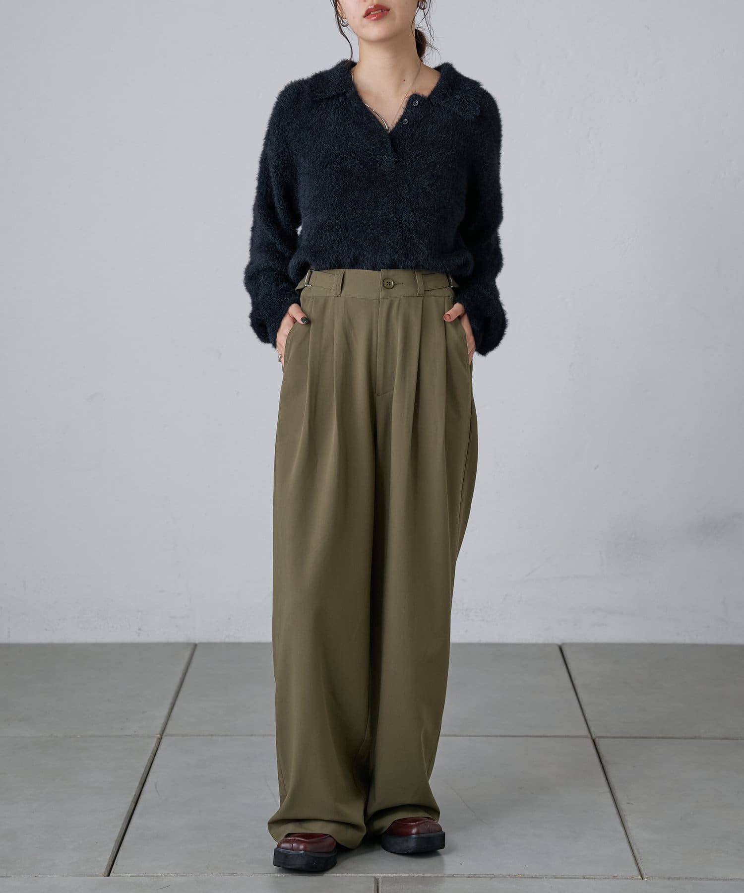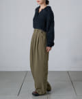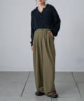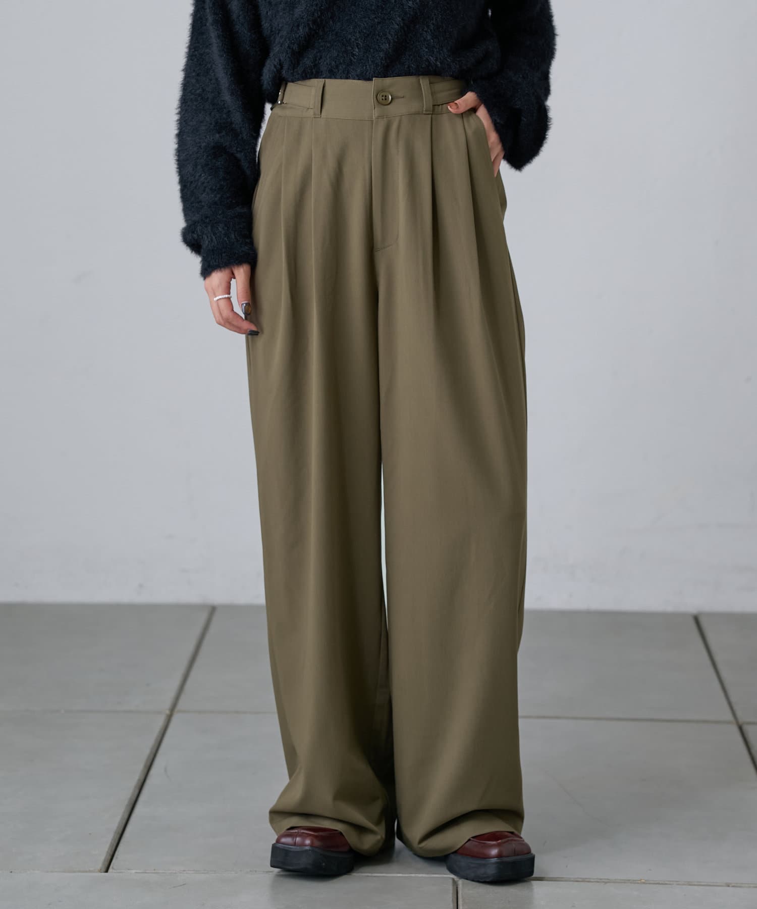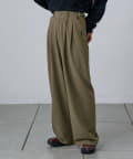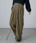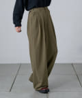 調節できるのが魅力的なタックワイドパンツ。