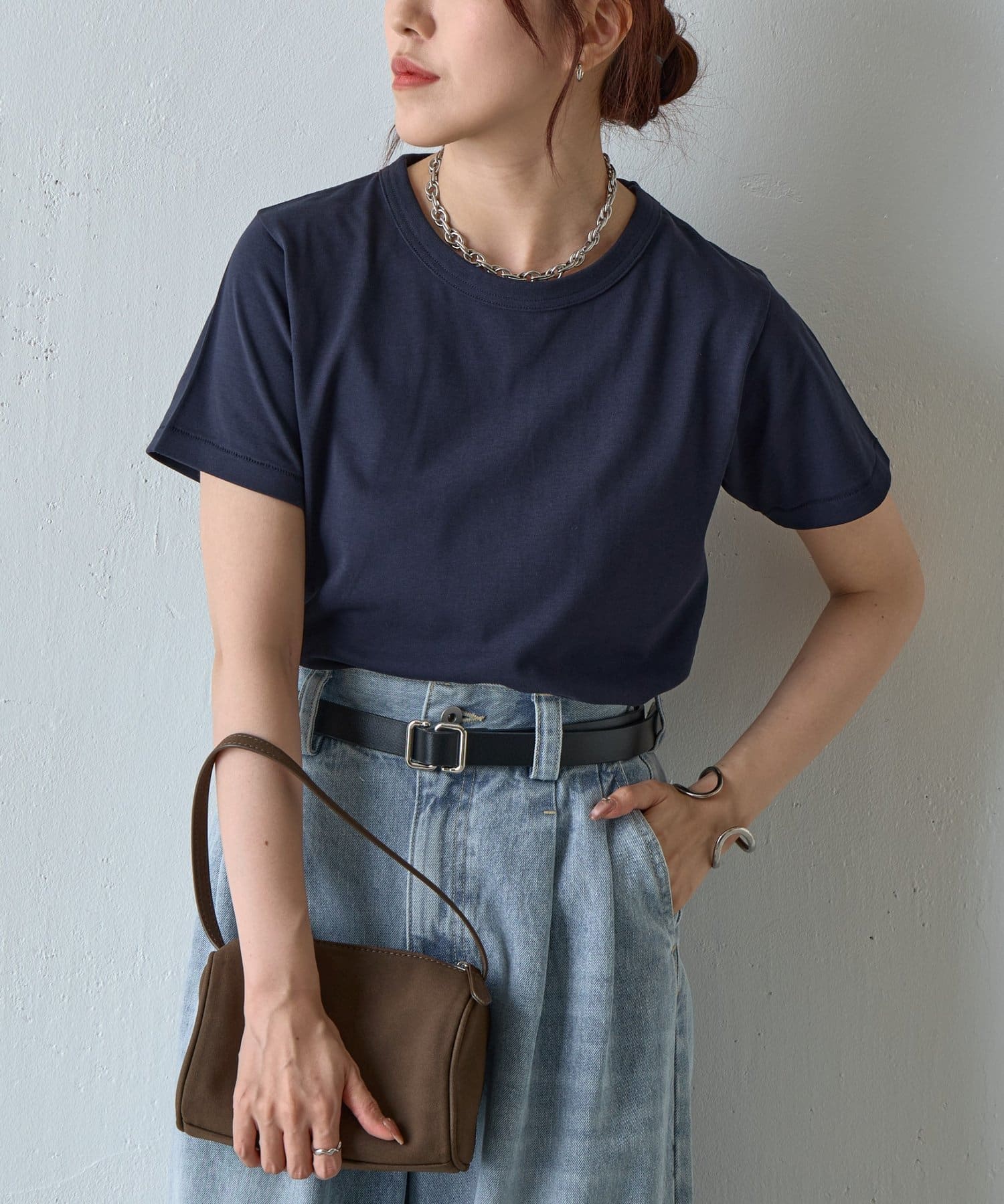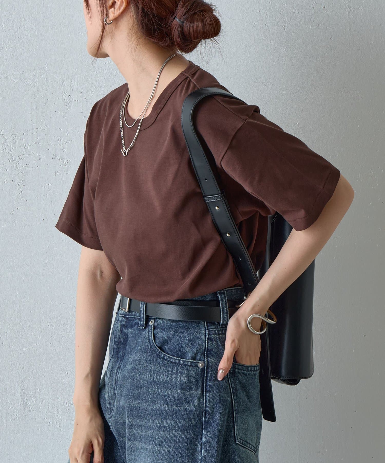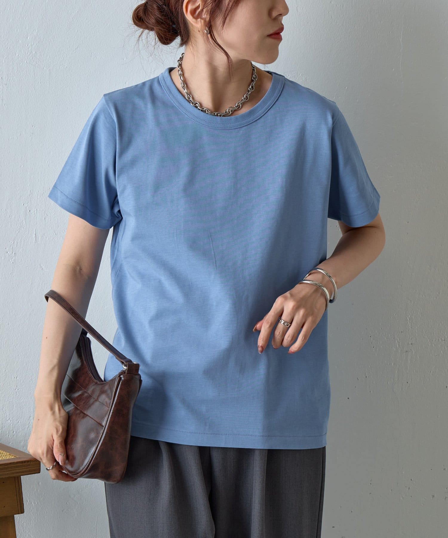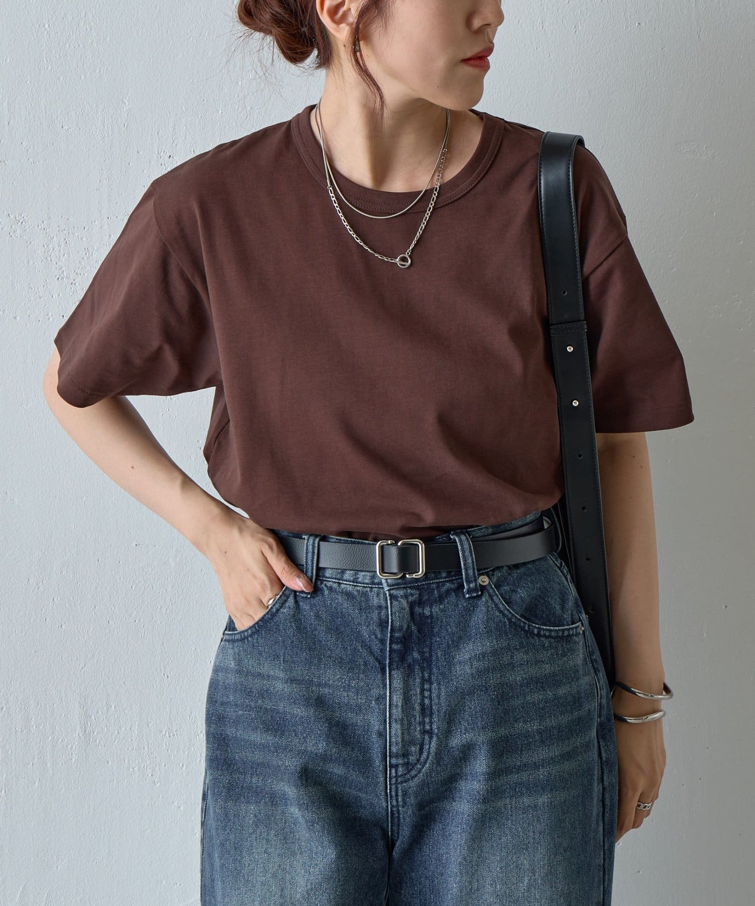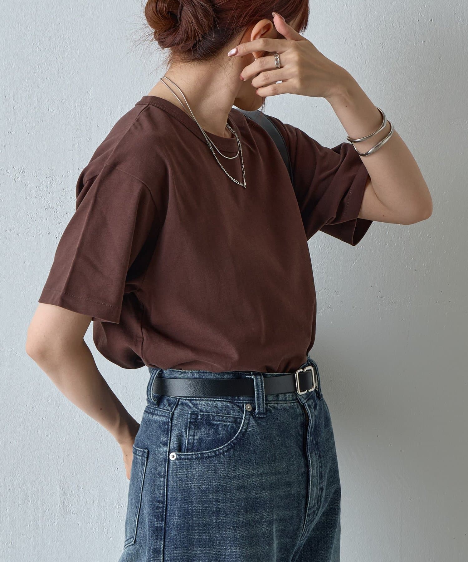 コットン素材の無地のデザインで着こなしやすく、メイントップスとしてはもちろん、