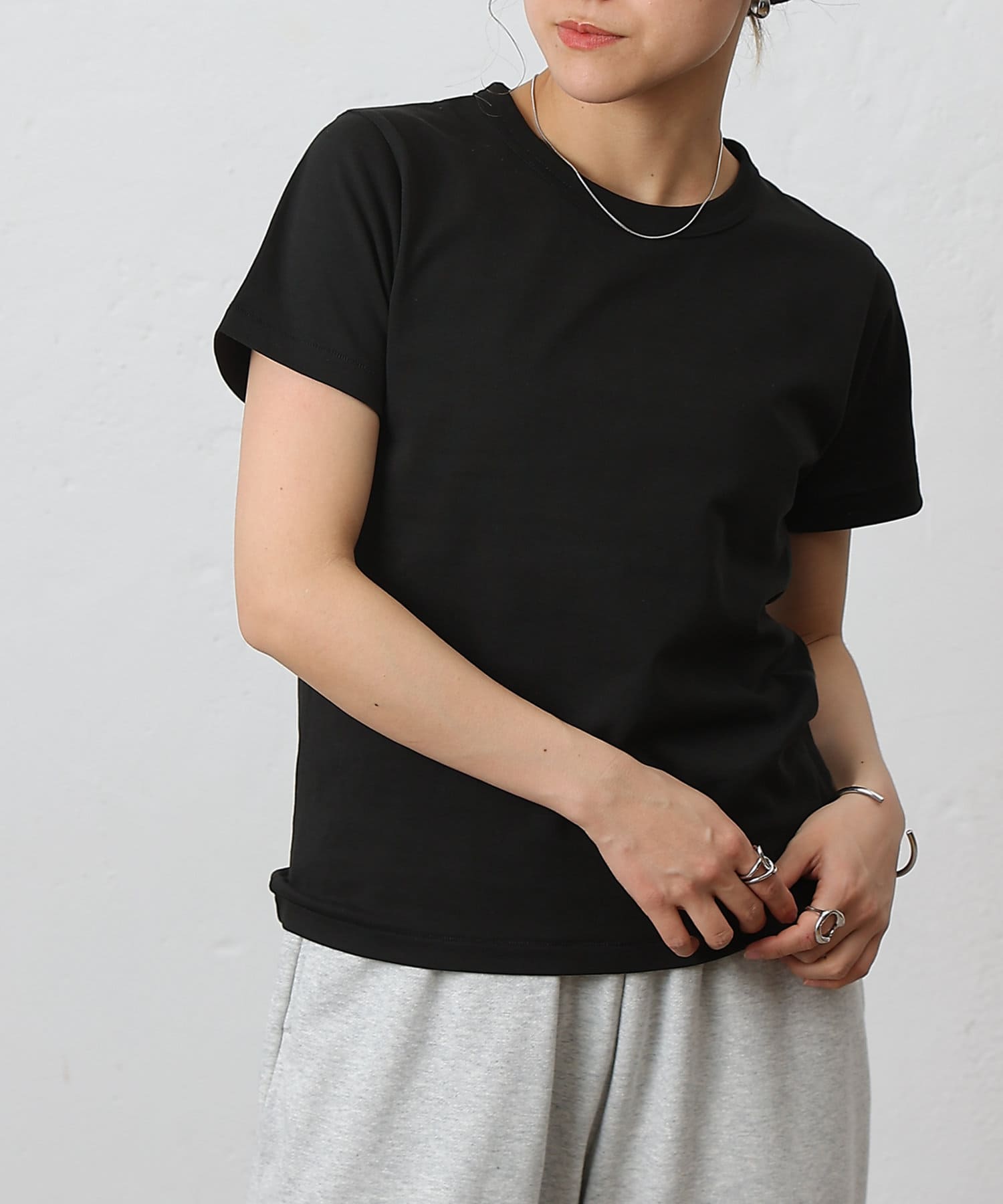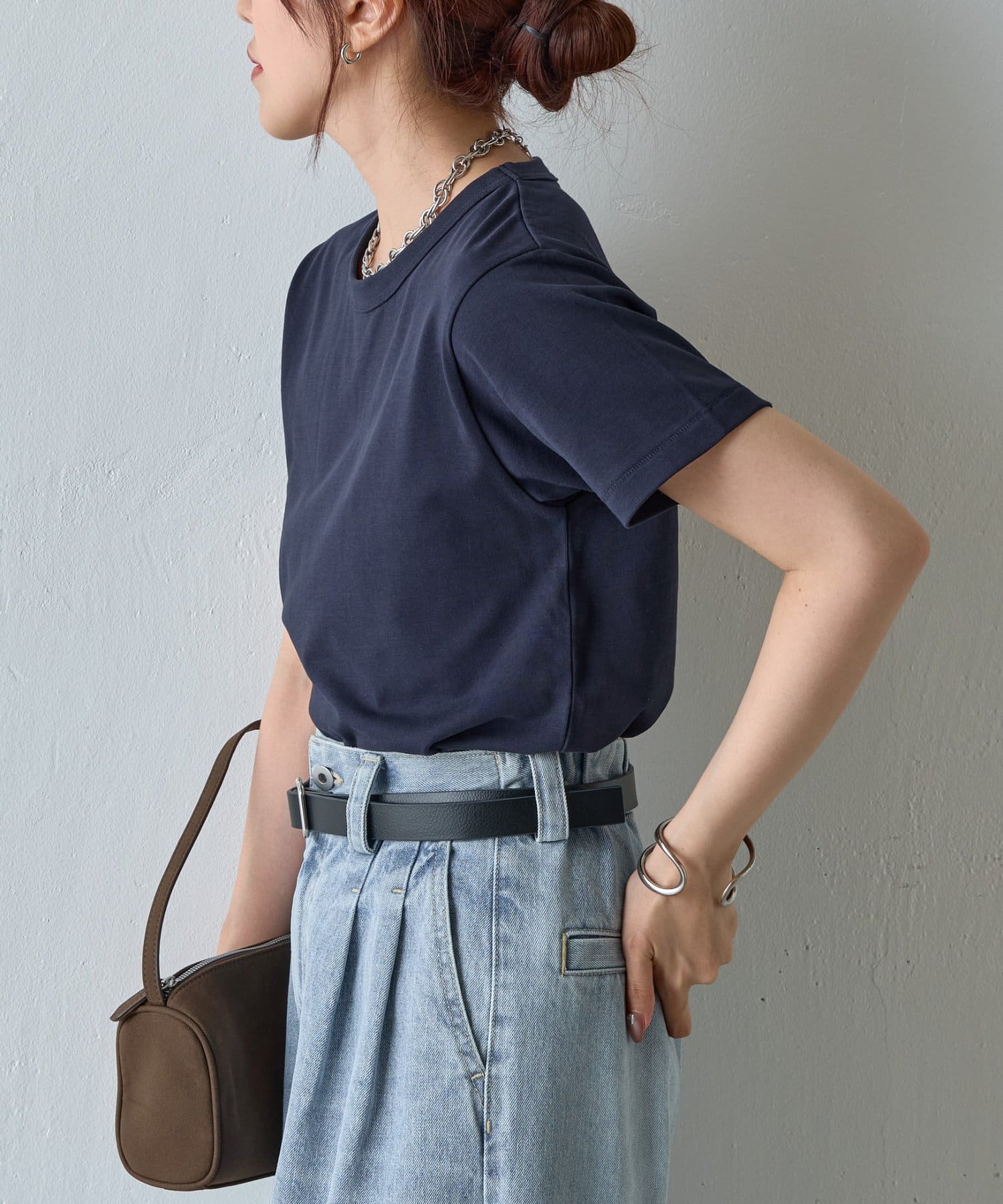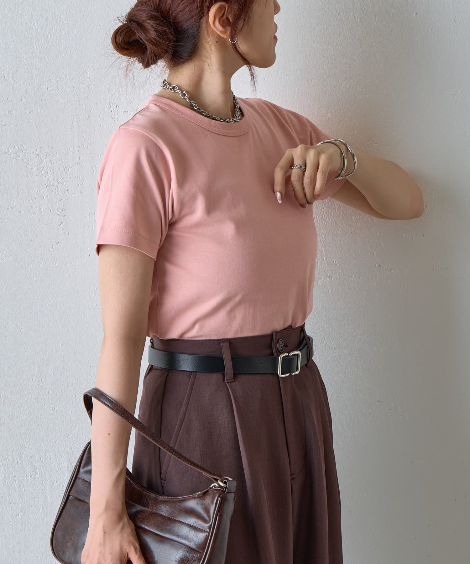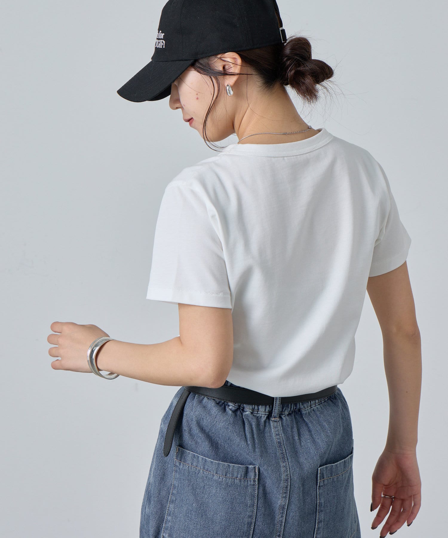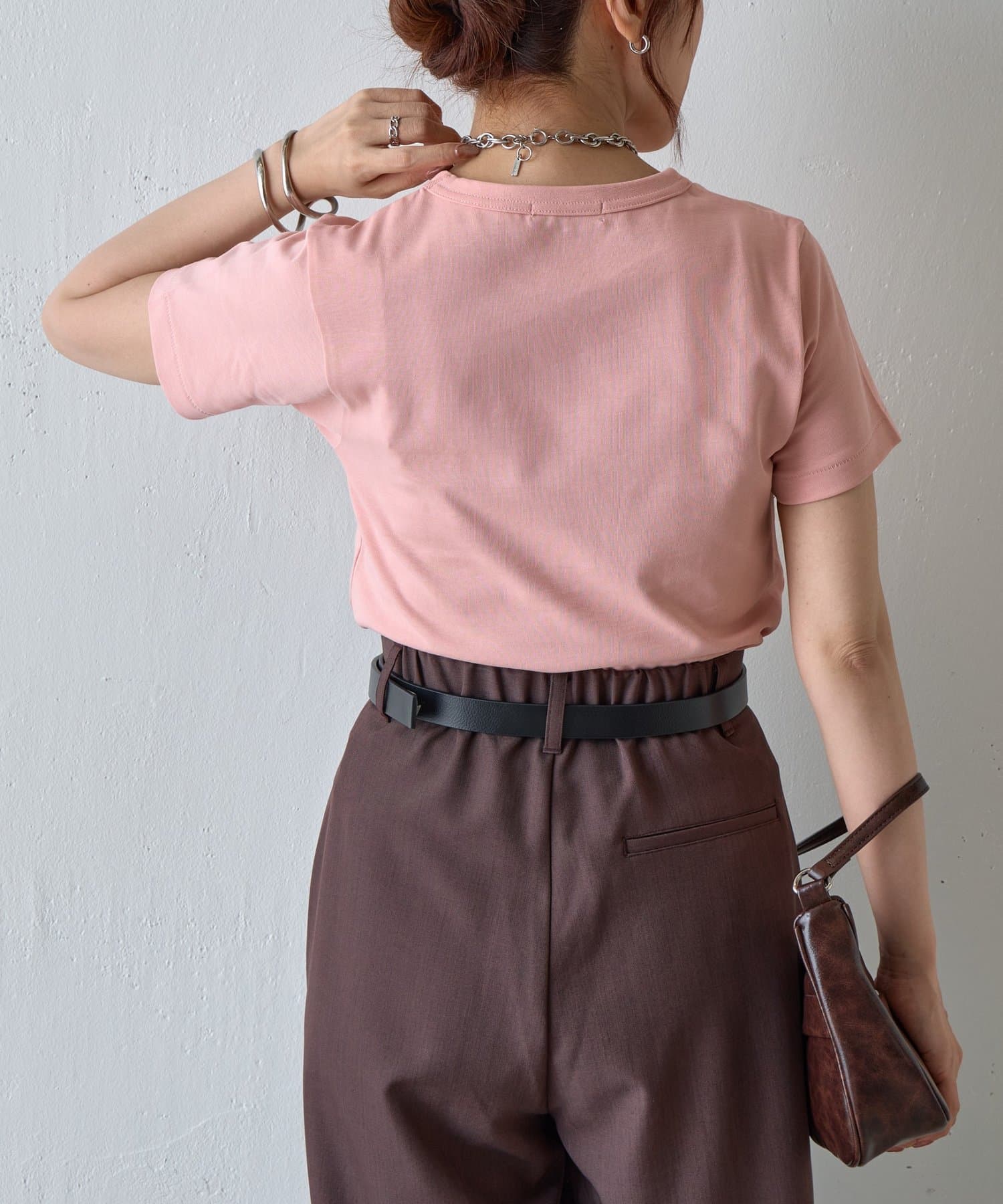 コットン素材の無地のデザインで着こなしやすく、メイントップスとしてはもちろん、