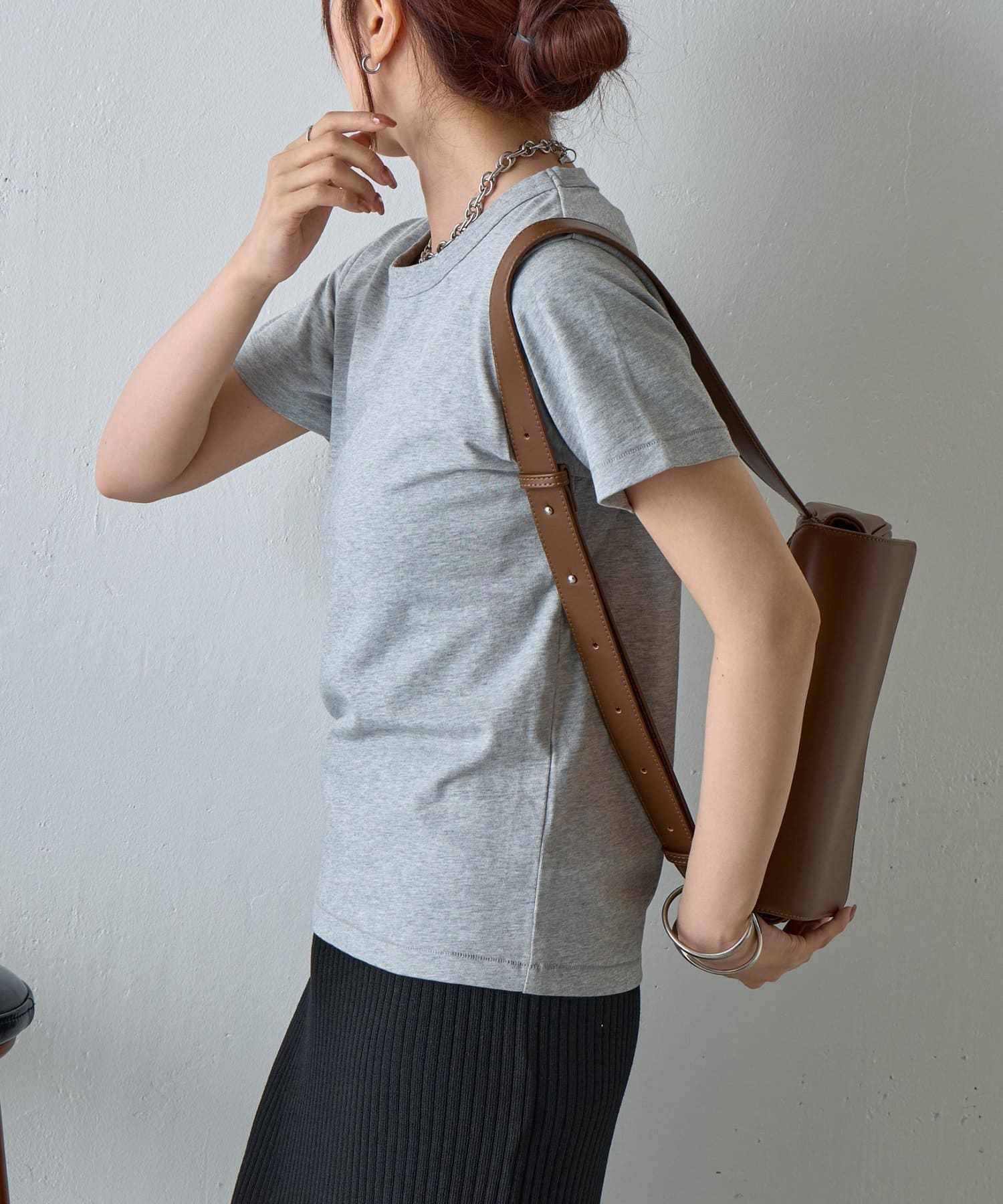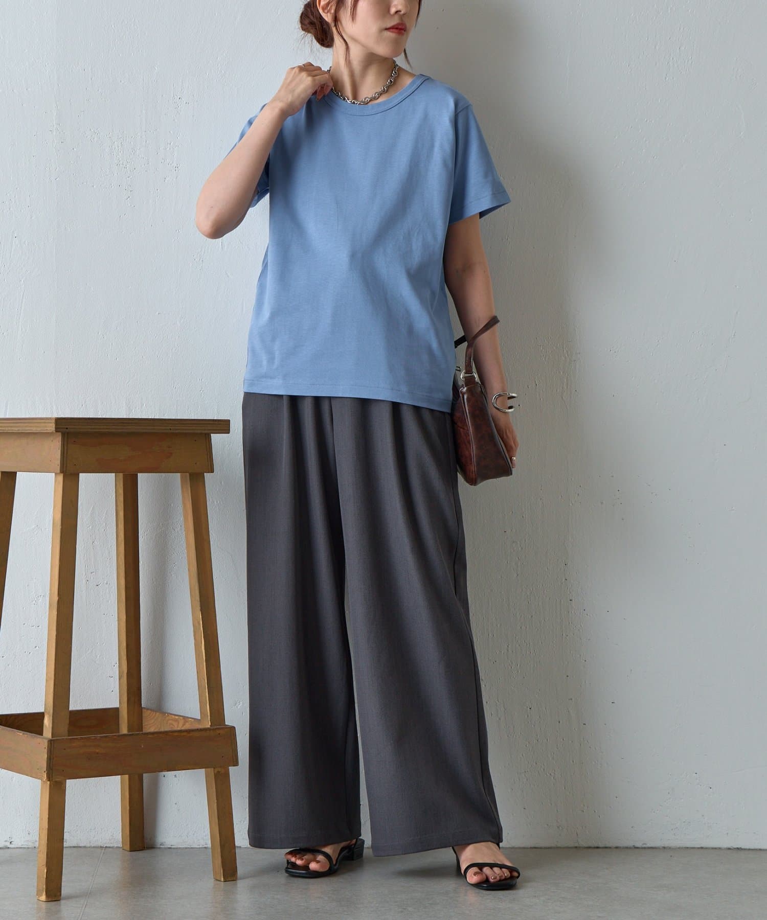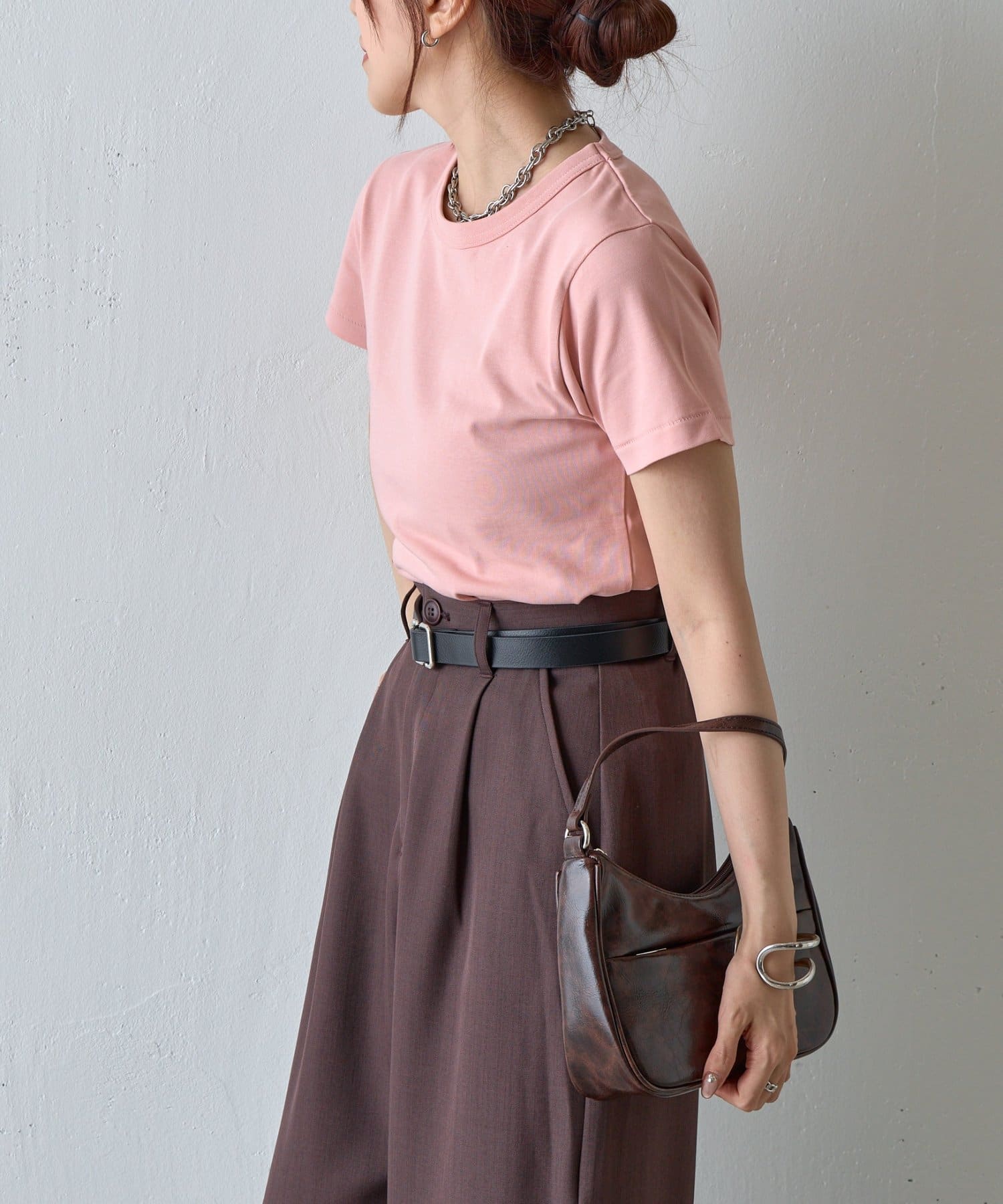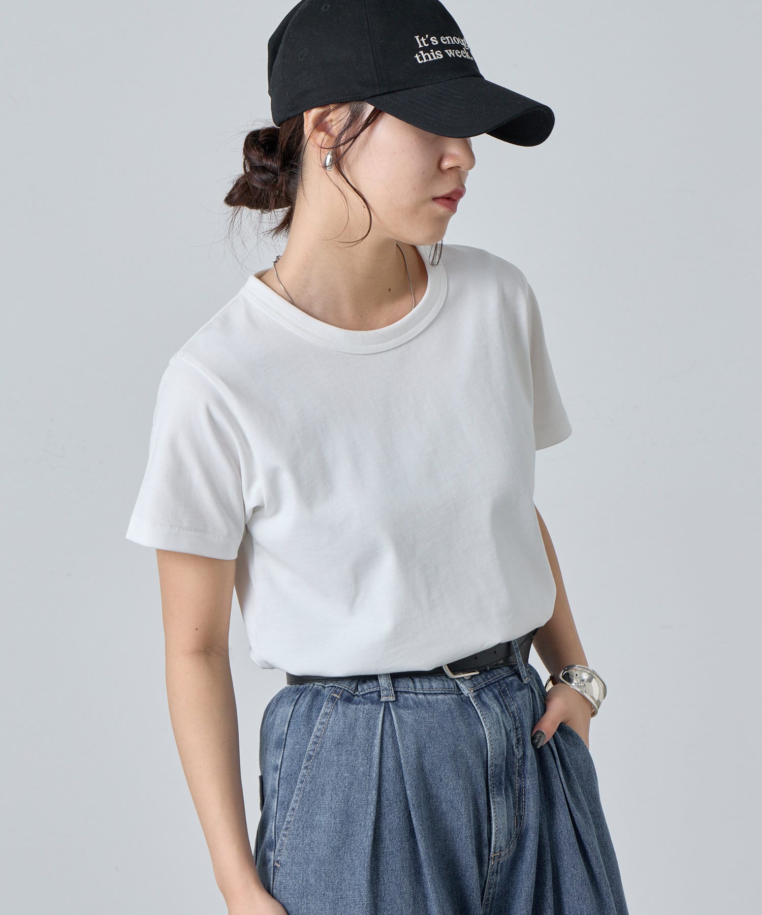 コットン素材の無地のデザインで着こなしやすく、メイントップスとしてはもちろん、