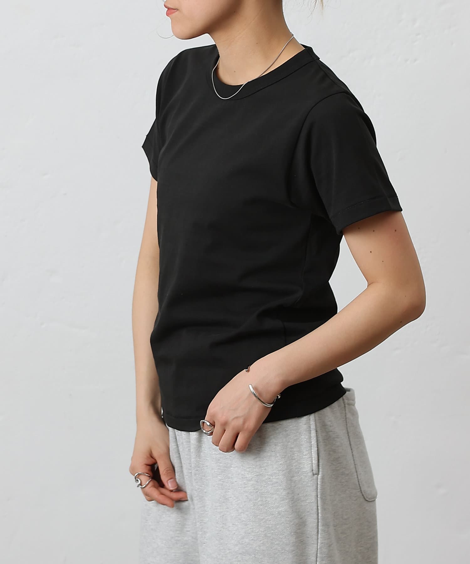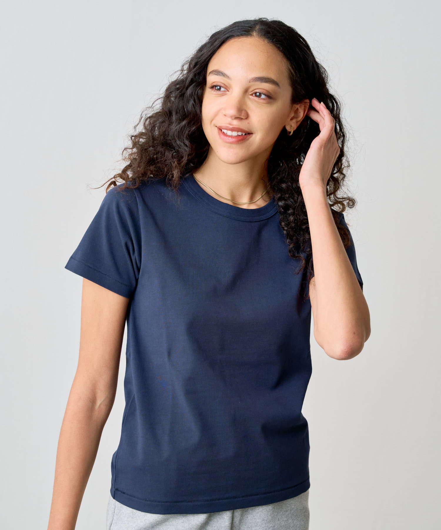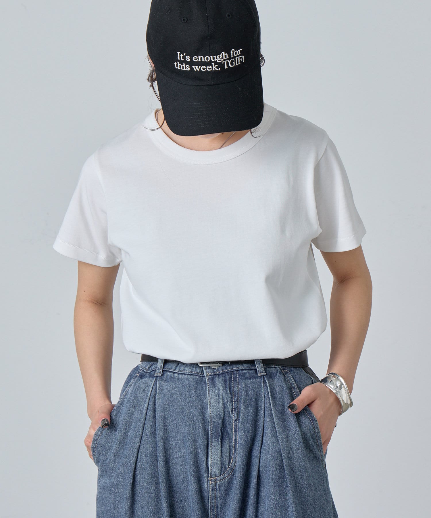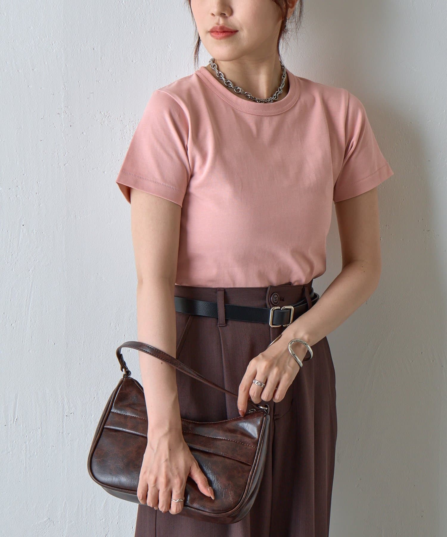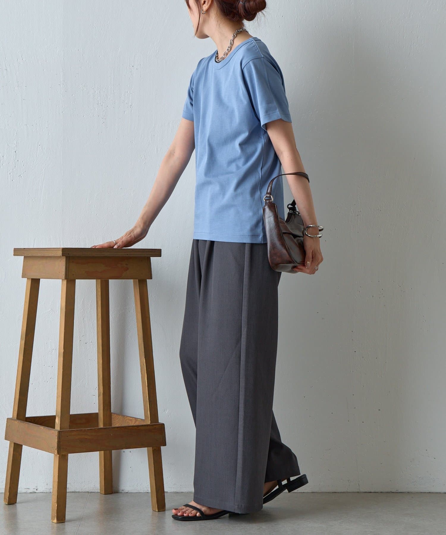 コットン素材の無地のデザインで着こなしやすく、メイントップスとしてはもちろん、