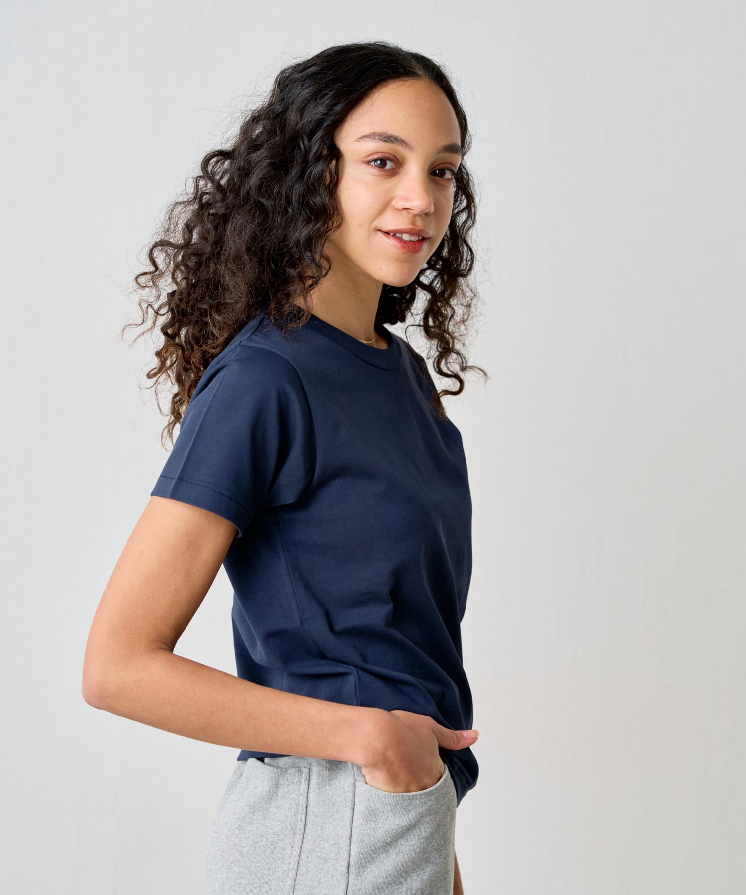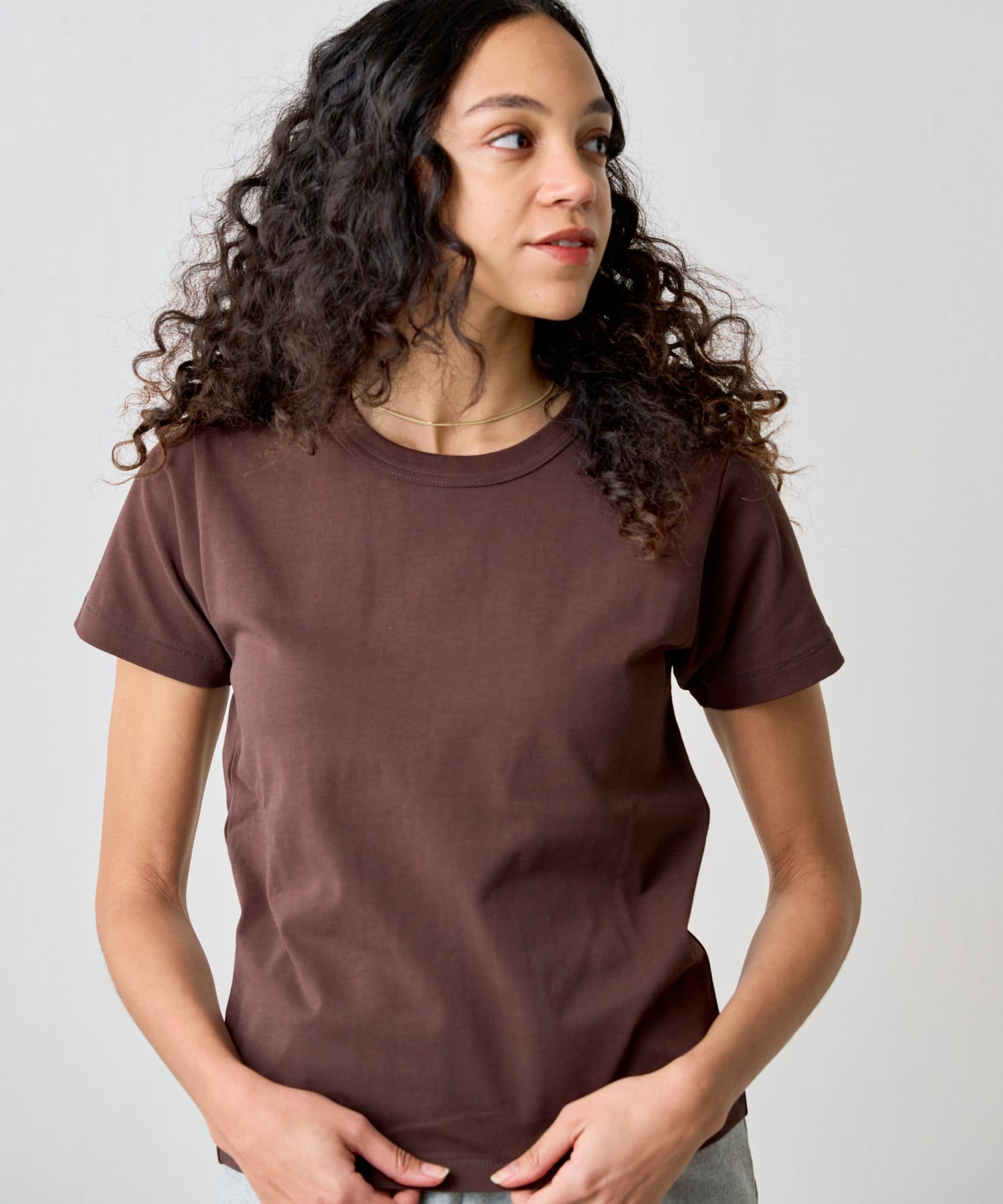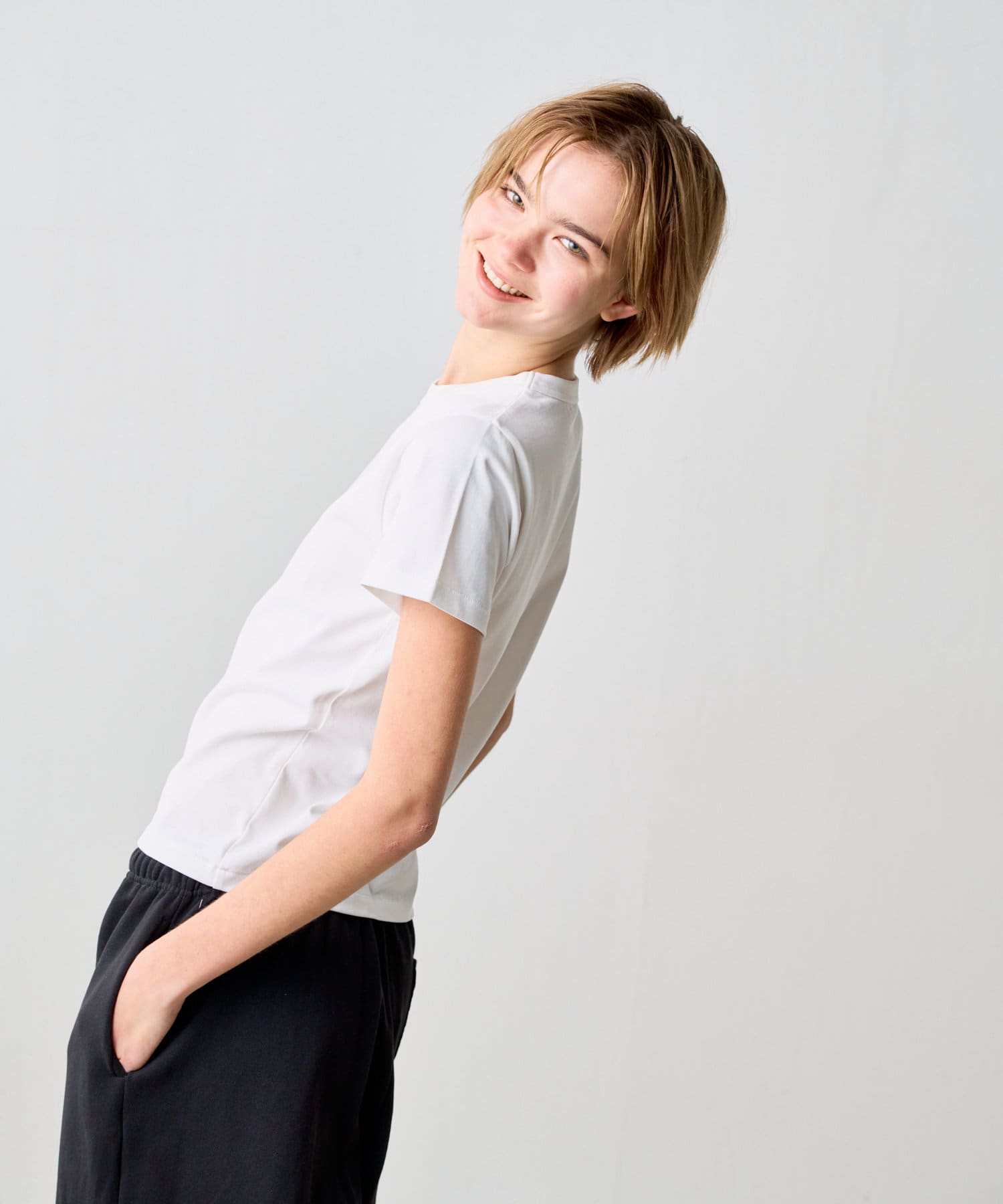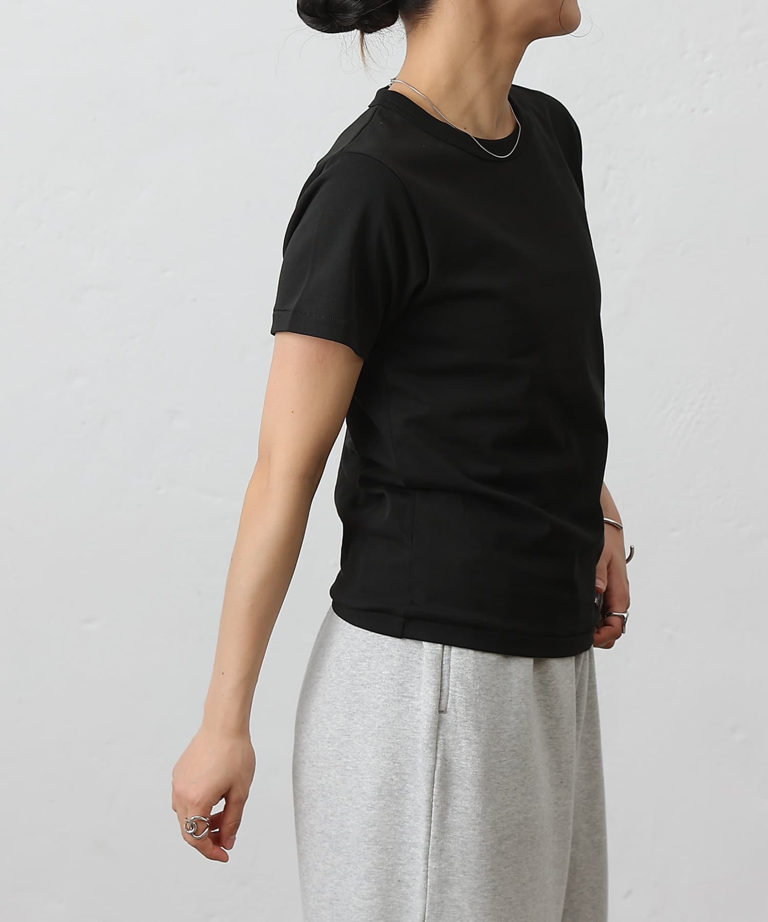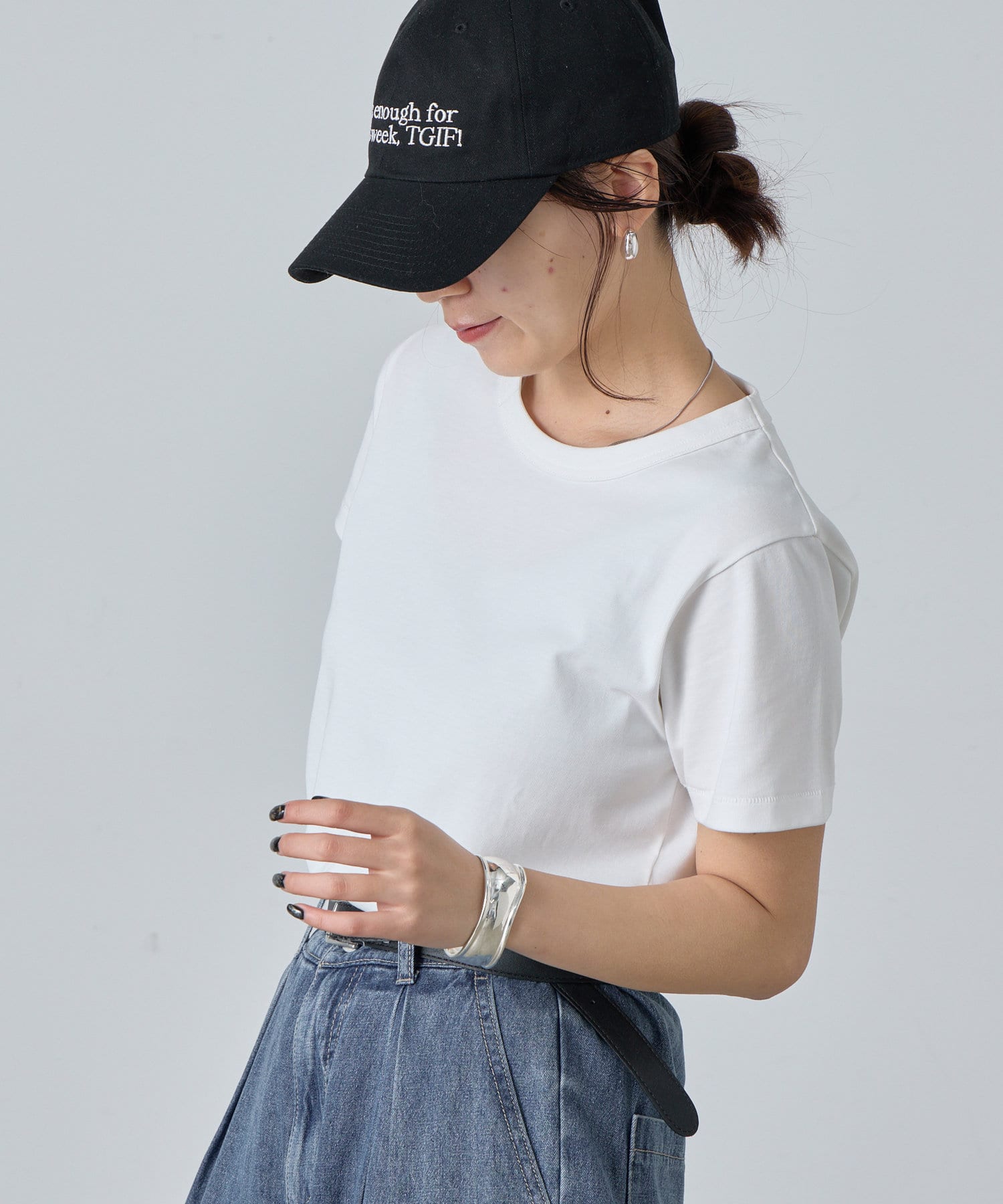 コットン素材の無地のデザインで着こなしやすく、メイントップスとしてはもちろん、